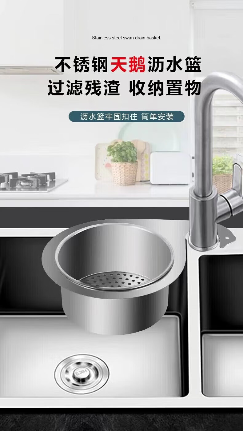 Stainless steel swan drain basket for collecting rice, special hanging drain rack for kitchen sink, dry and wet separation hook, garbage filter basket, stainless steel swan drain basket