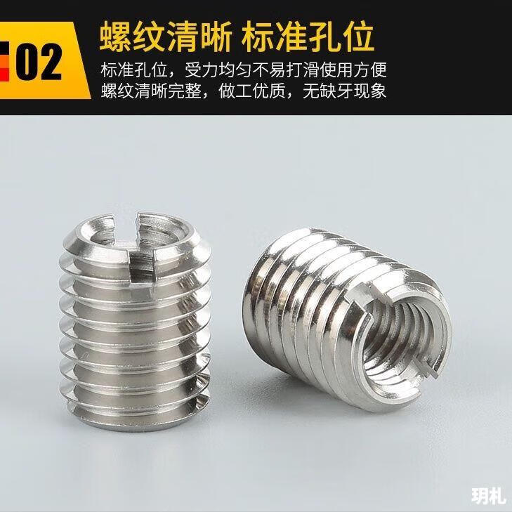 Thread protection sleeve stainless steel braces steel wire screw sleeve 303 self-tapping internal and external thread nut conversion sheath wire sleeve complete set M2m8-M12 inner M2.5 outer M4 length 4 (100 pieces) slotted