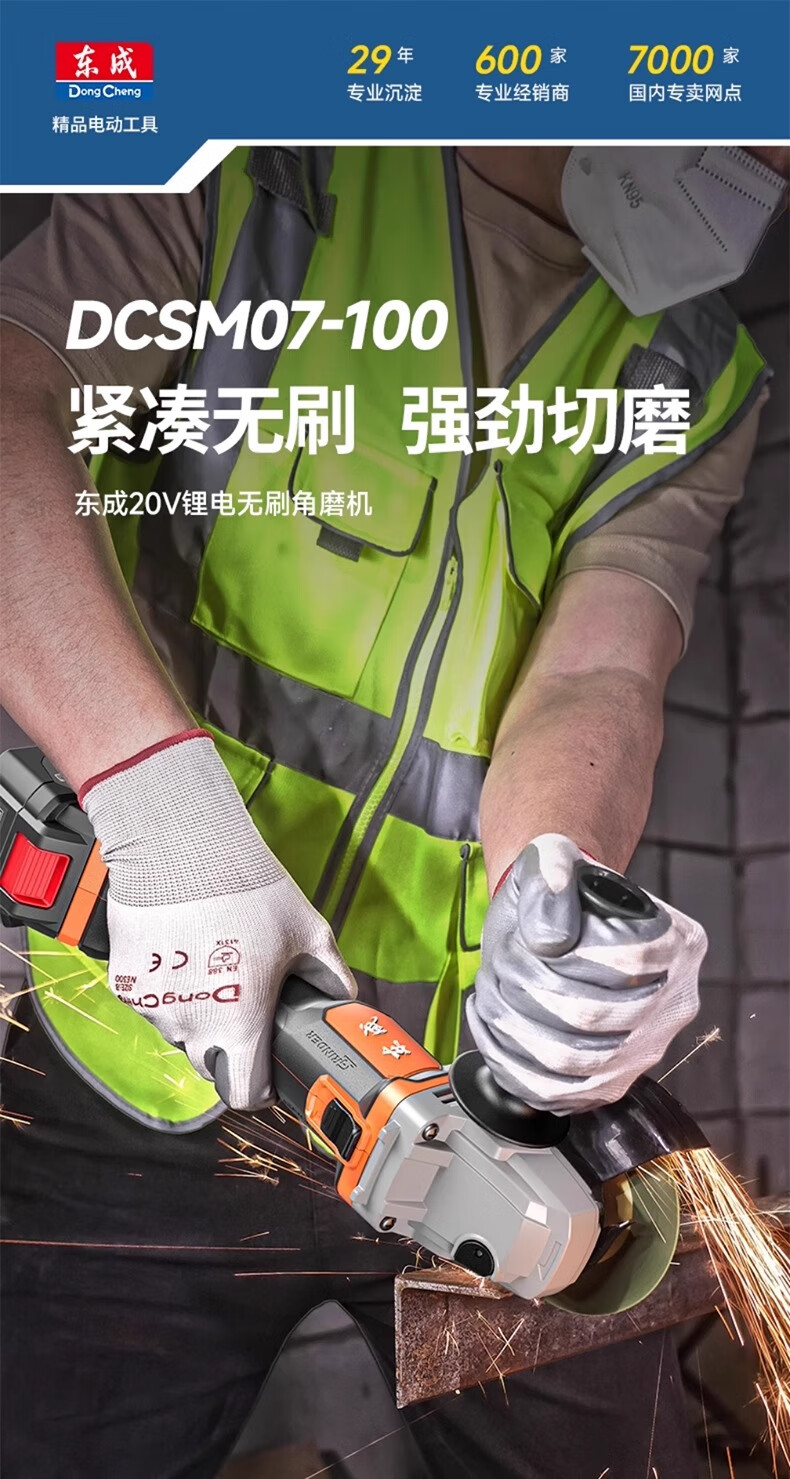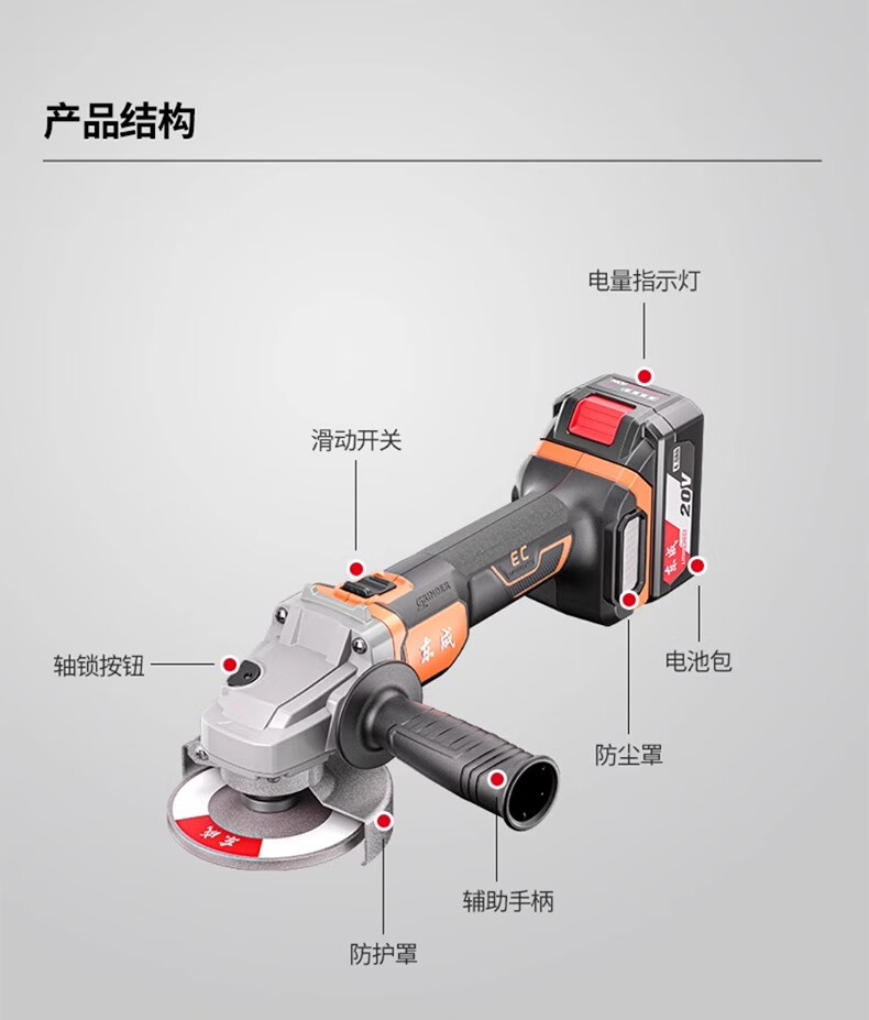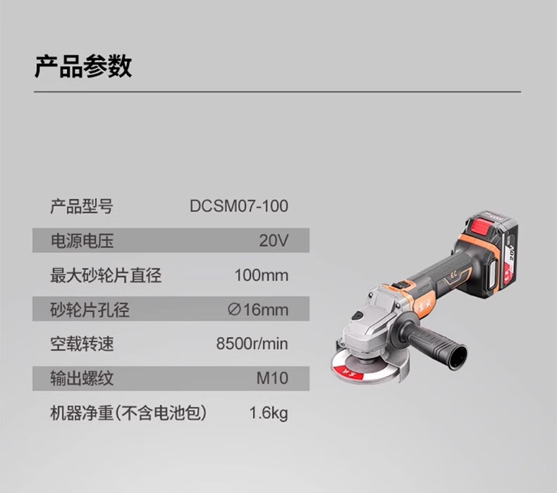 Dongcheng 20v rechargeable angle grinder electric grinder lithium electric polishing rust removal grinder high power cutting machine DCSM07-100 bare metal