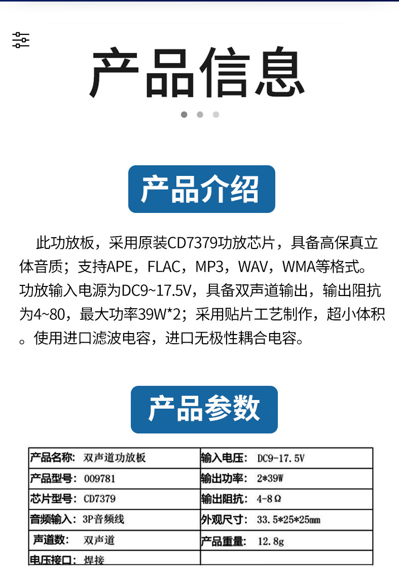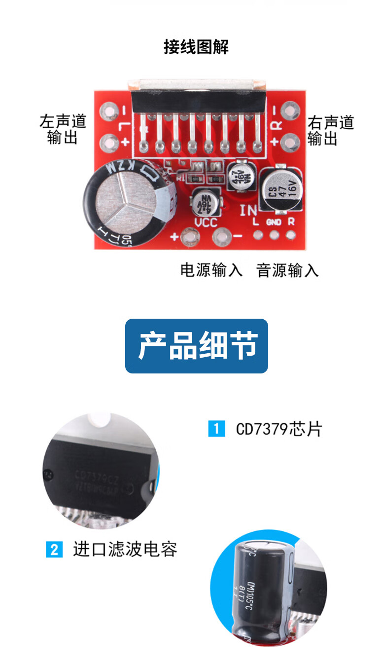 CD7379 power amplifier board 2.0 two-channel stereo 2*39W power exceeds TD7379 DC power supply TD7379/CD7379 power amplifier board no specifications
