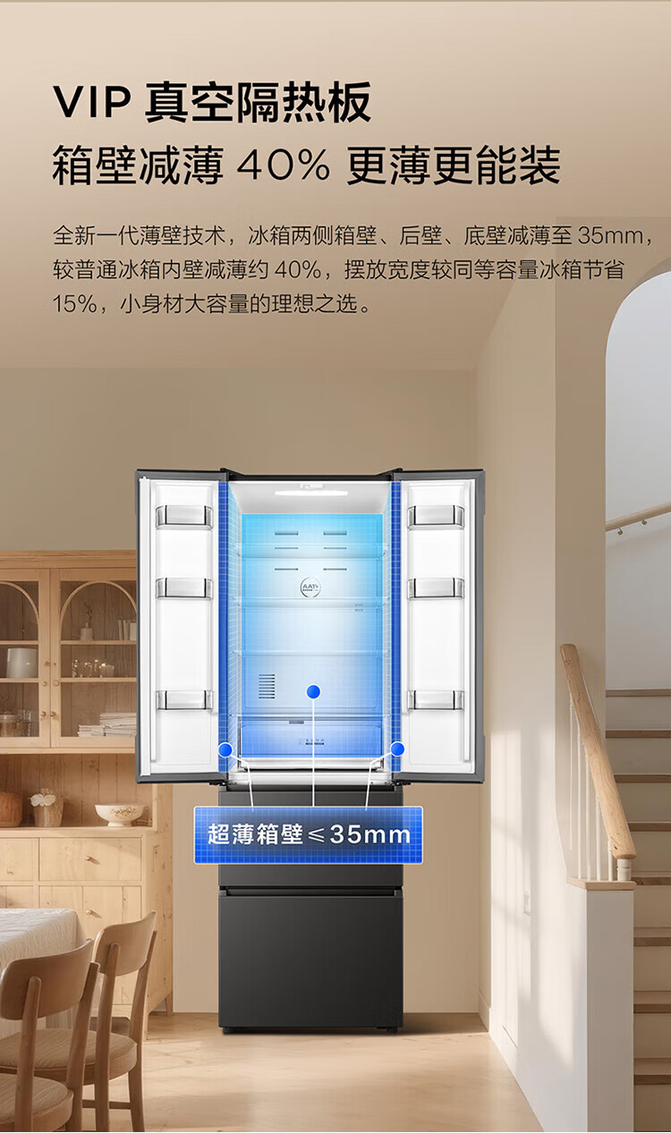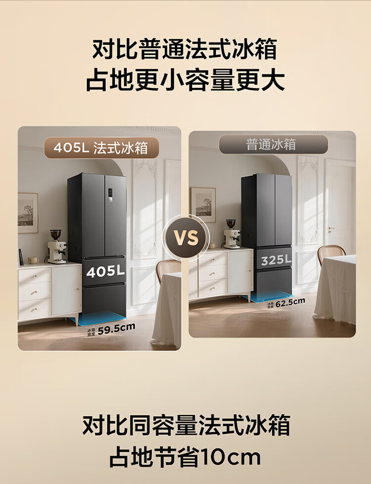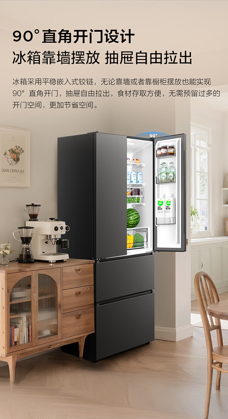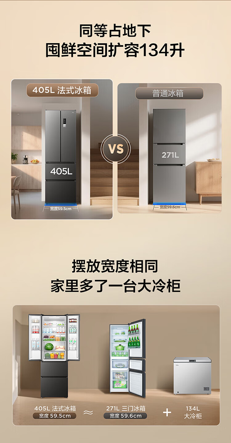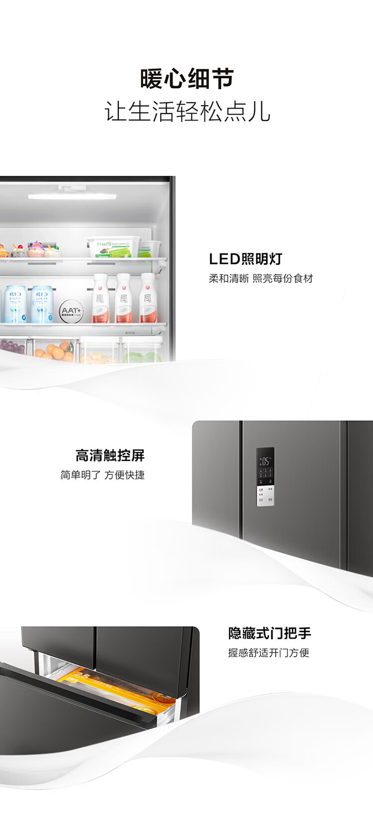 TCL 405 liter French multi-door four-door 59.5cm ultra-narrow large capacity small apartment household refrigerator first-class energy efficiency trade-in R405V5-D crystal ash gray national subsidy