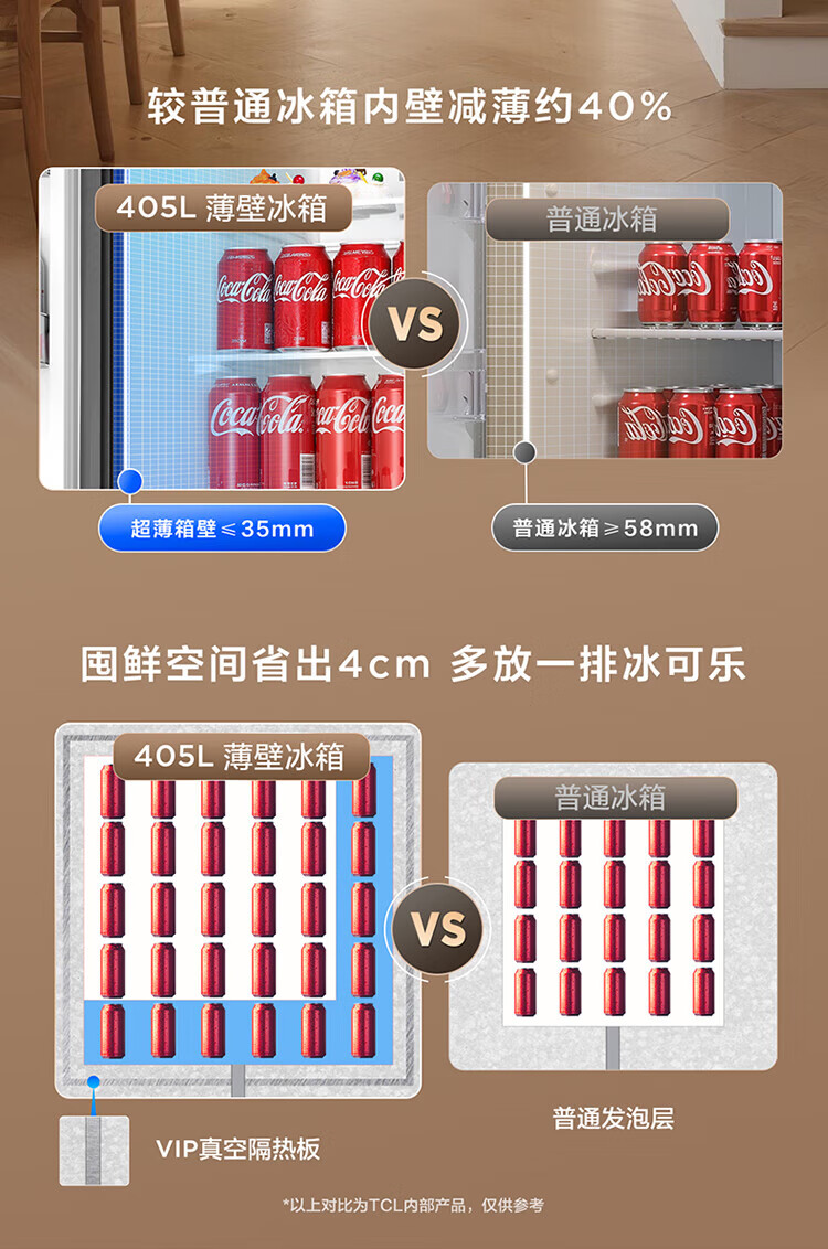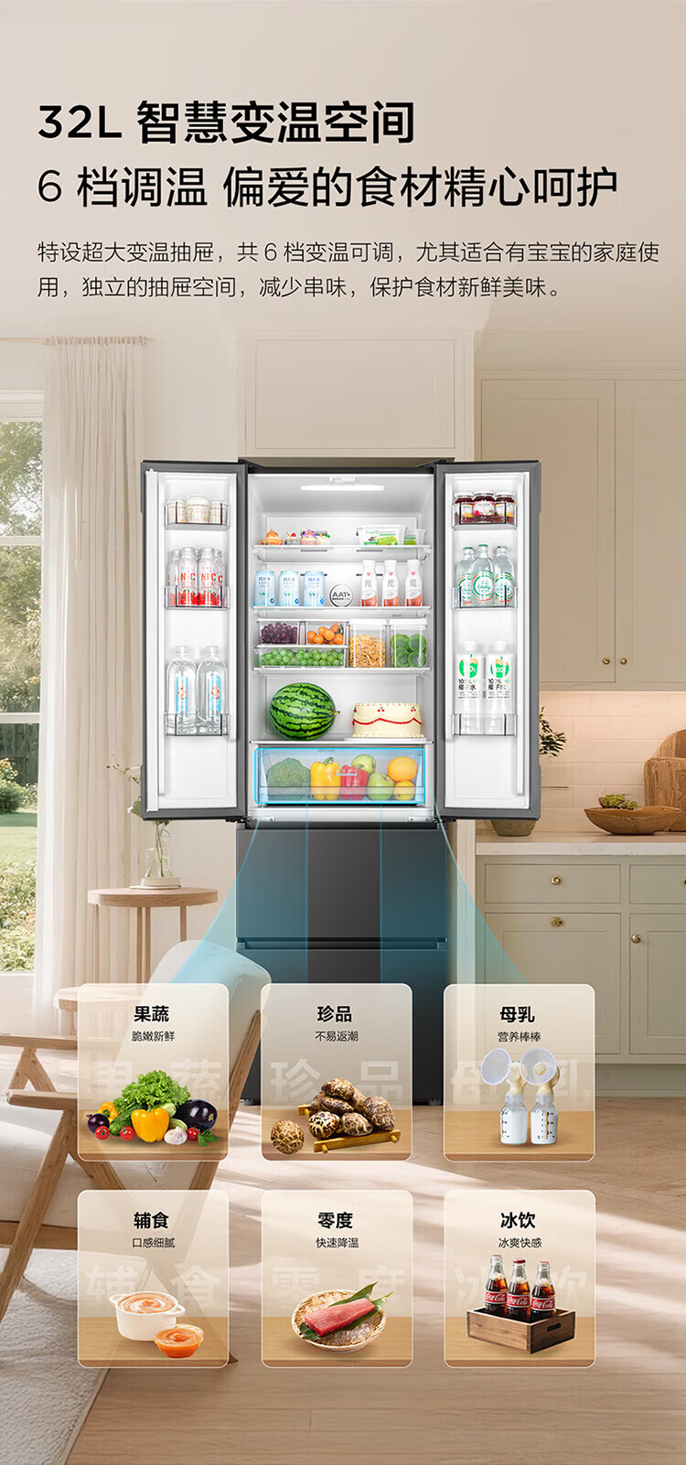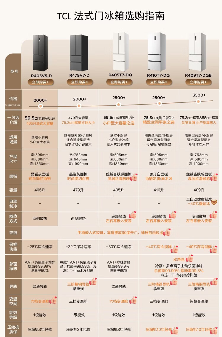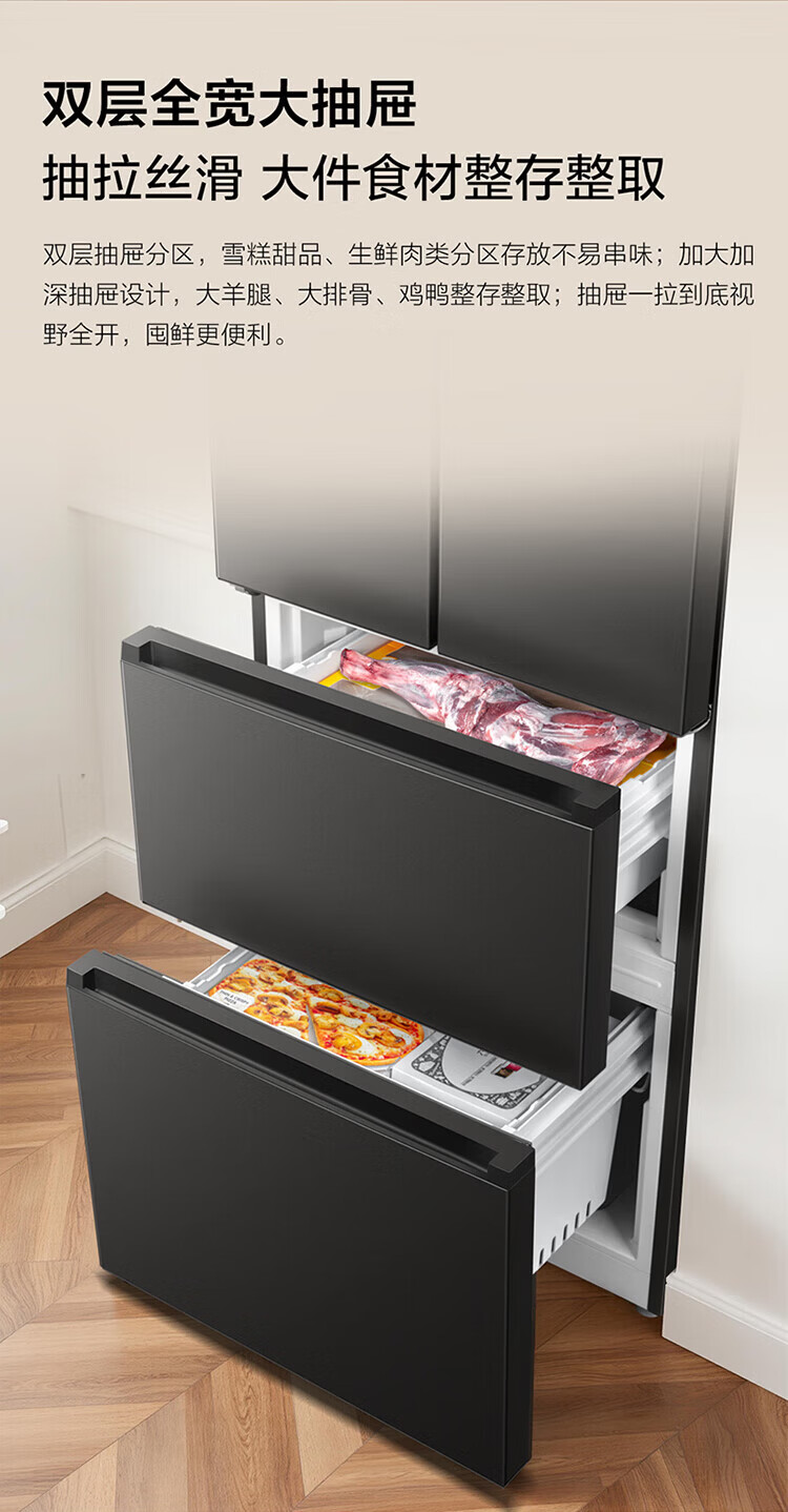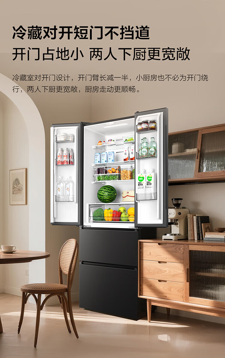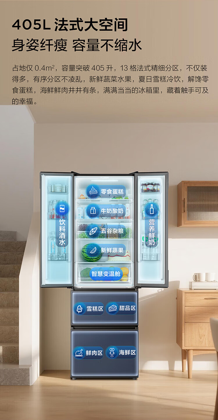 TCL 405 liter French multi-door four-door 59.5cm ultra-narrow large capacity small apartment household refrigerator first-class energy efficiency trade-in R405V5-D crystal ash gray national subsidy