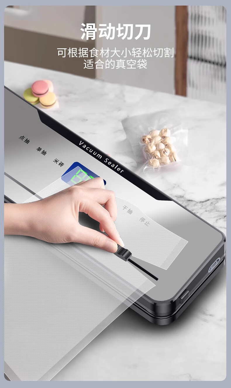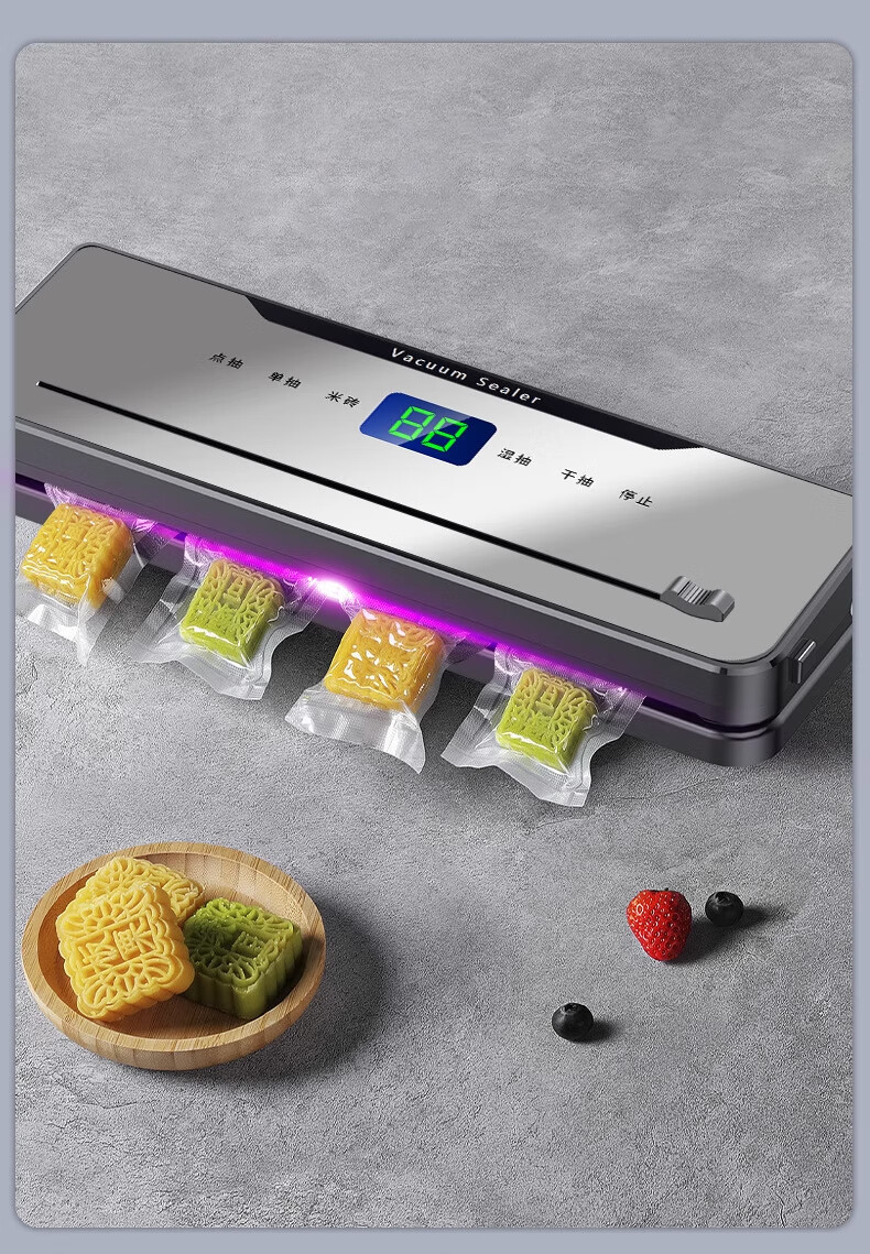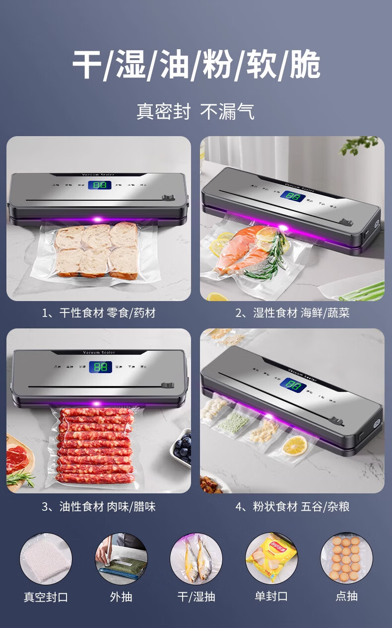 DIKTT German sealing machine, household food vacuum machine, dry and wet, fully automatic vacuum packaging machine, high-power food antibacterial fresh-keeping machine, plastic sealing machine, bag-free bacon, deep space gray, ultraviolet sterilization, double freshness + 100 vacuum bags