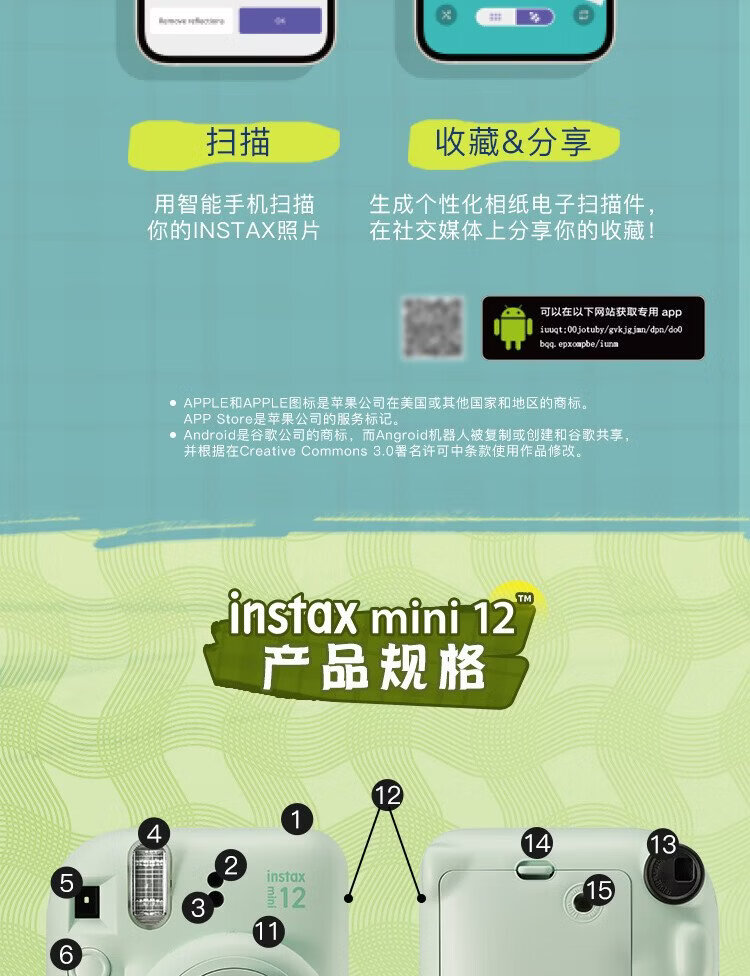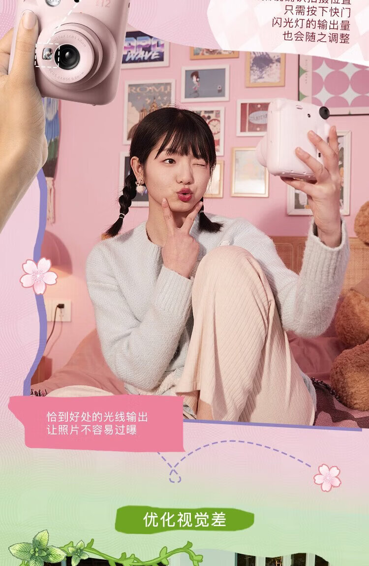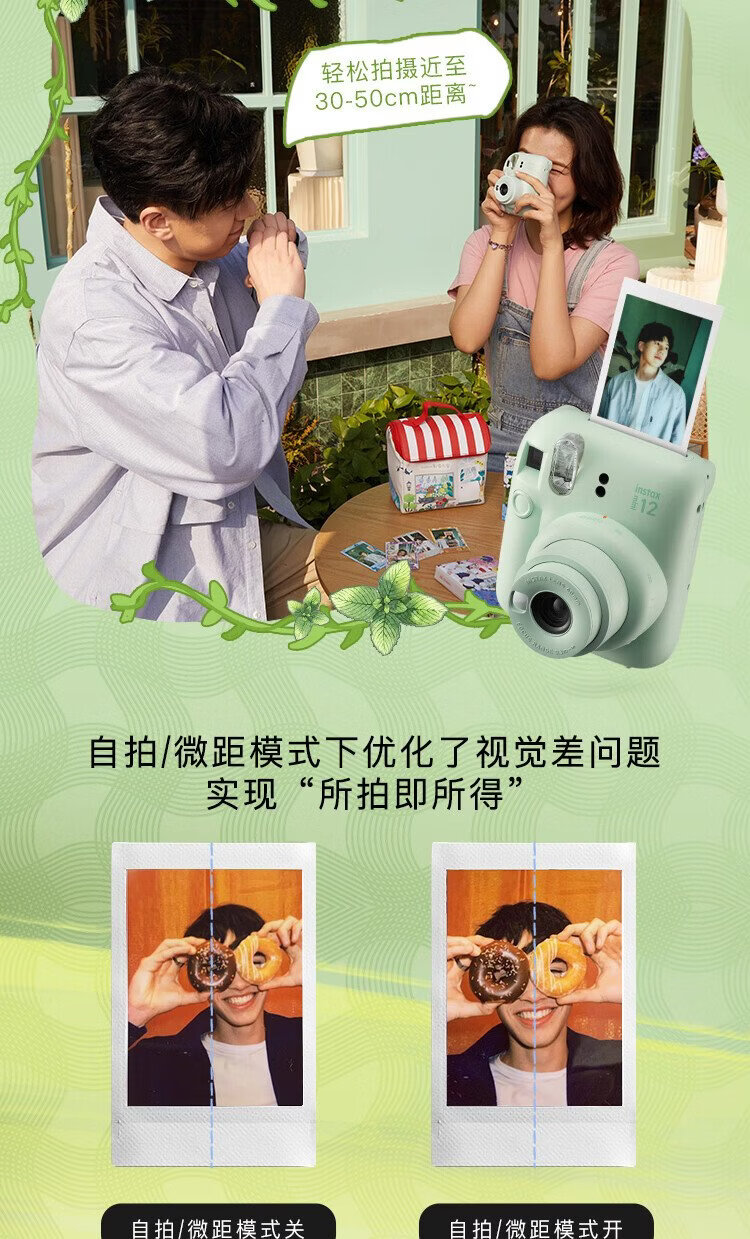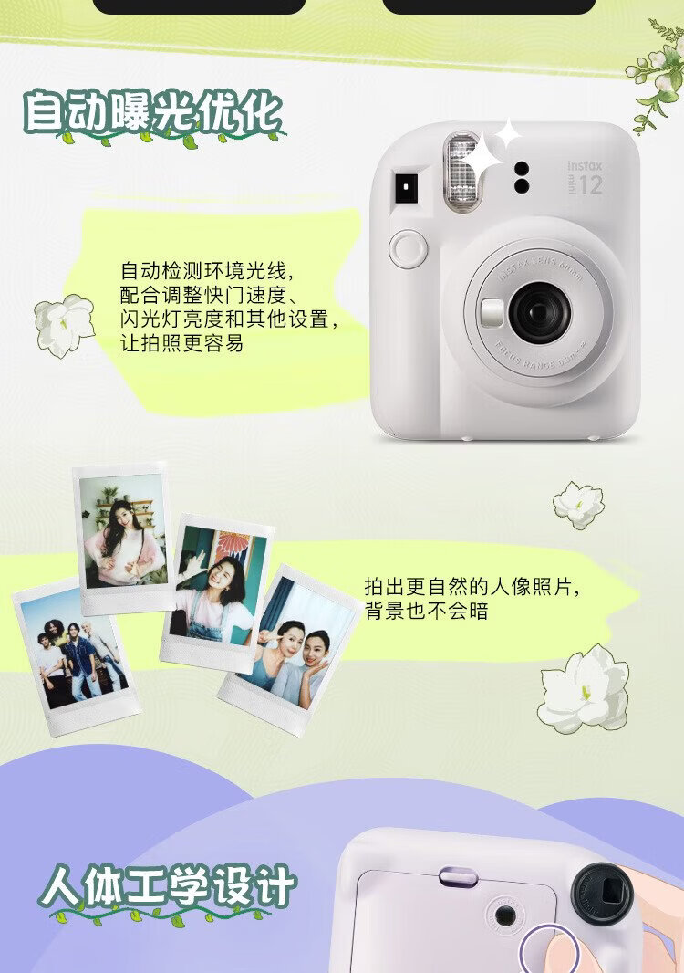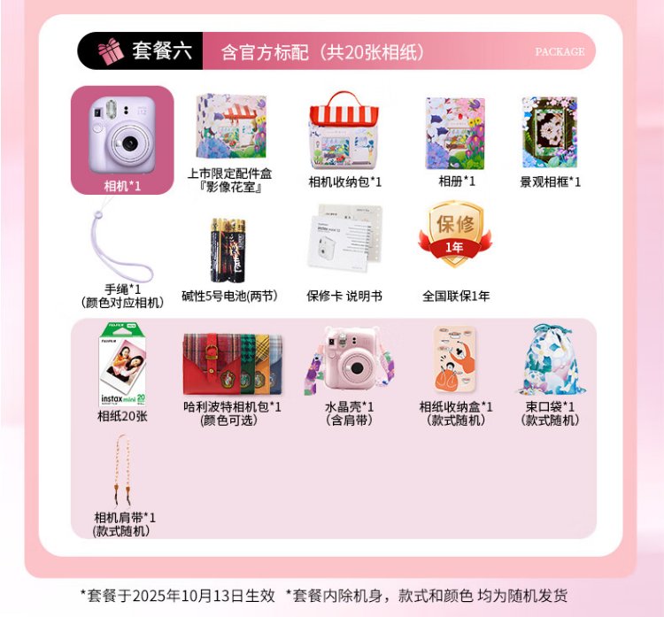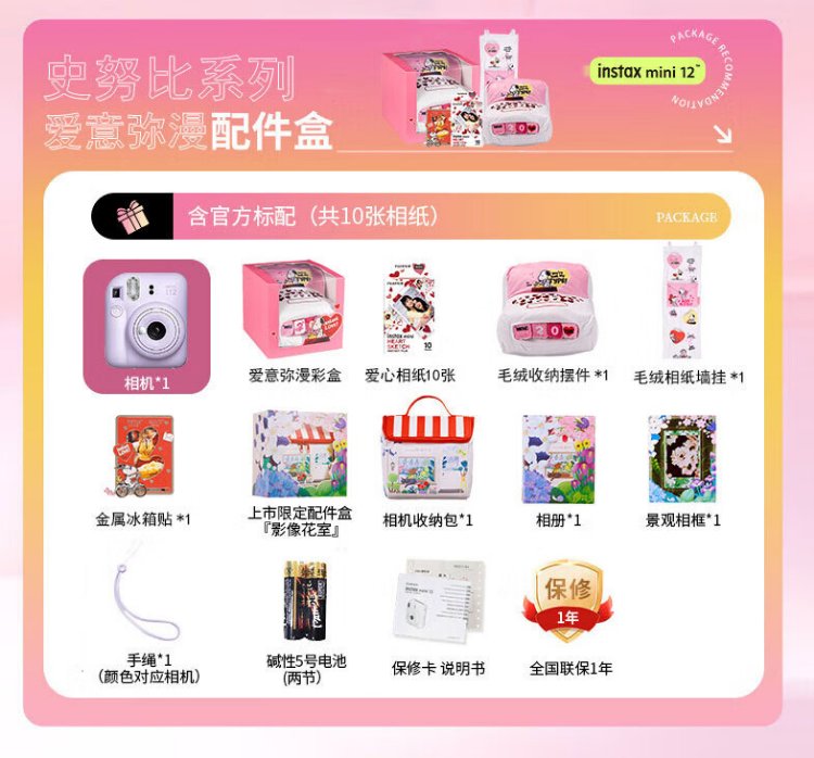 Fuji (FUJIFILM) mini 12 comes with a beauty instant camera package including photo paper, mini 7+/se/9/11/25/90/99 film camera upgraded version, Chinese Valentine's Day gift, hydrangea blue, image flower room set, package 1, standard + 10 pieces of photo paper + crystal case + basic version gift pack