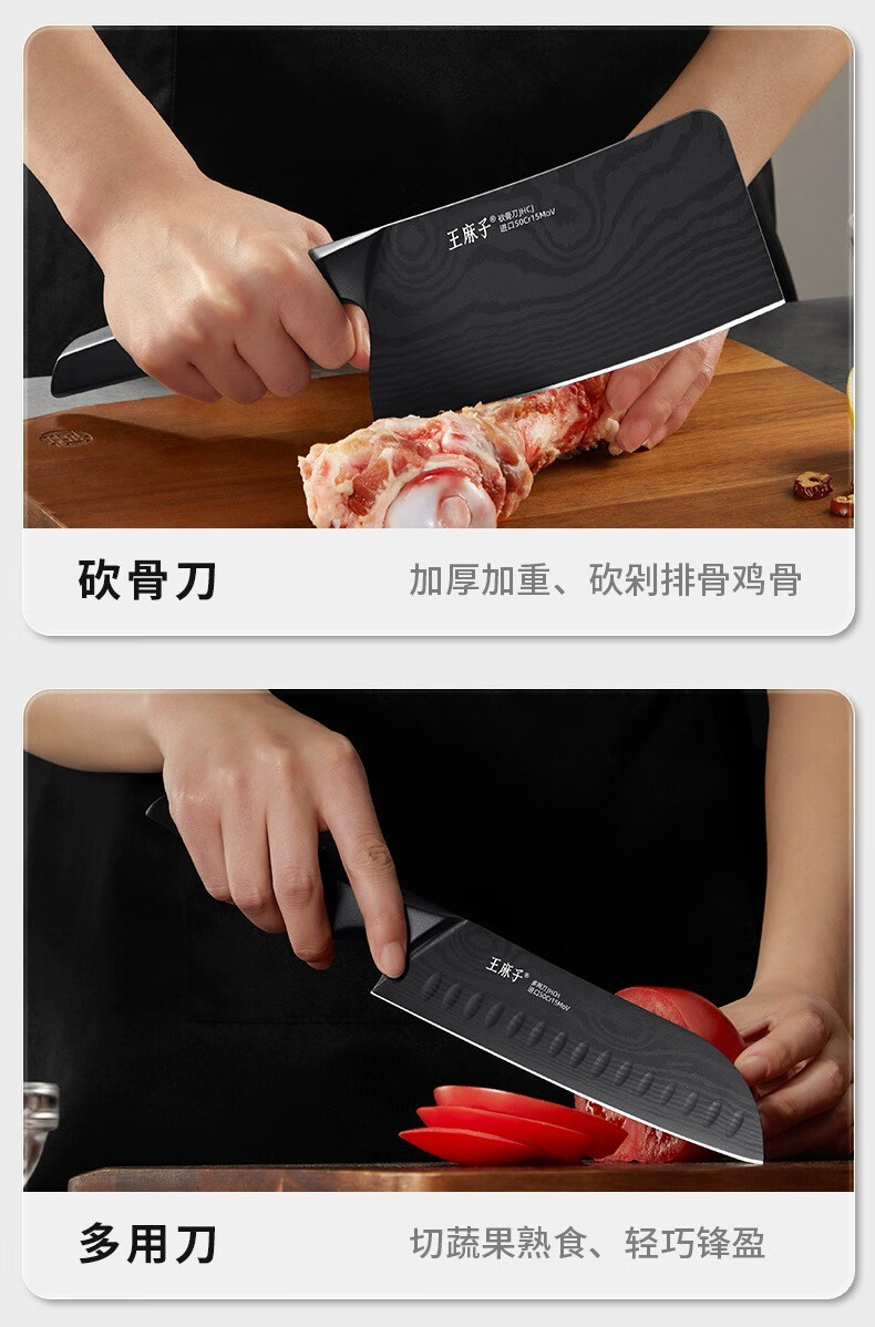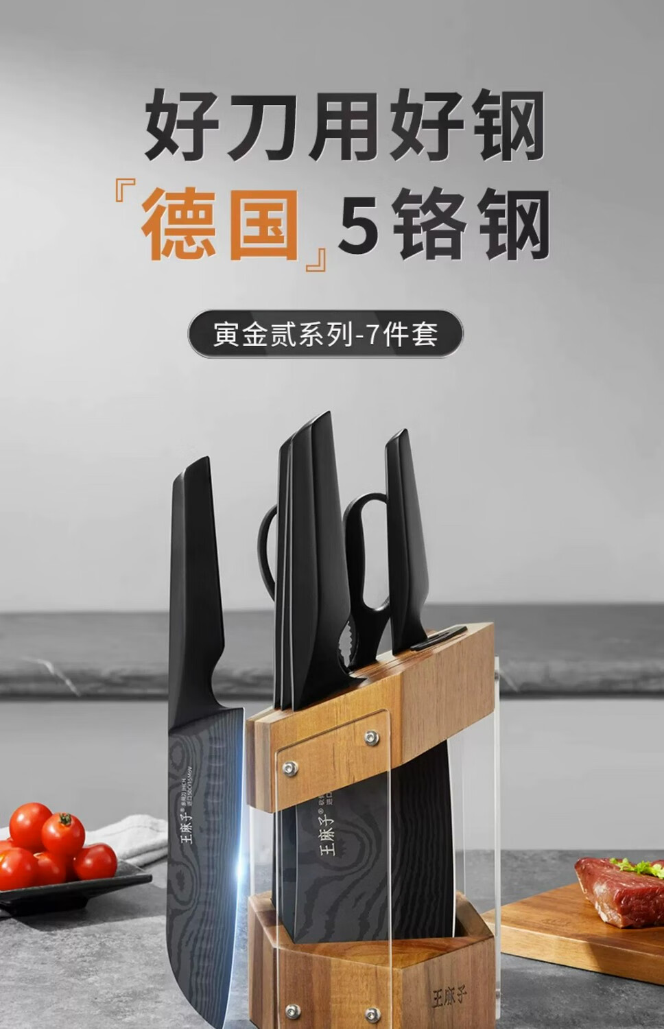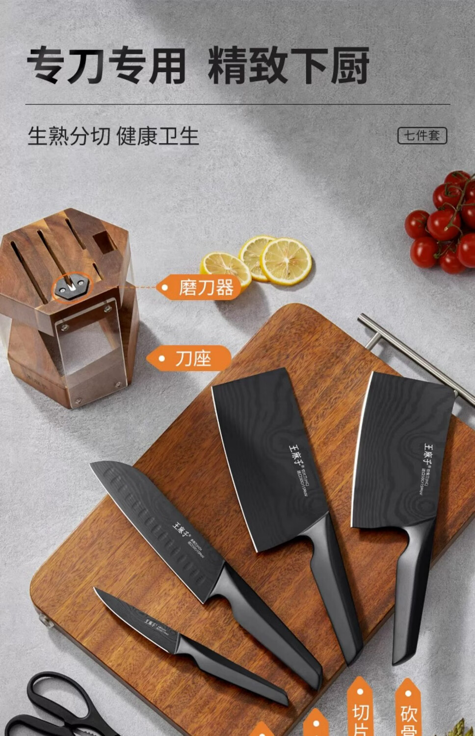 Wang Mazi Xinjiang Kefa Kitchen Knife Set Household Kitchen Knife Sharp Slicing Knife German Imported Steel 50Cr15 Bone Chopping Knife Damascus Pattern-7-piece Knife Set