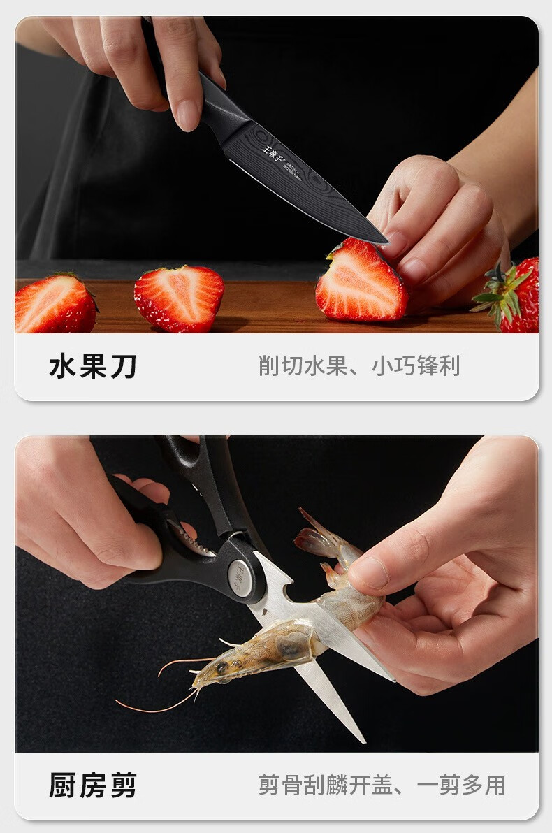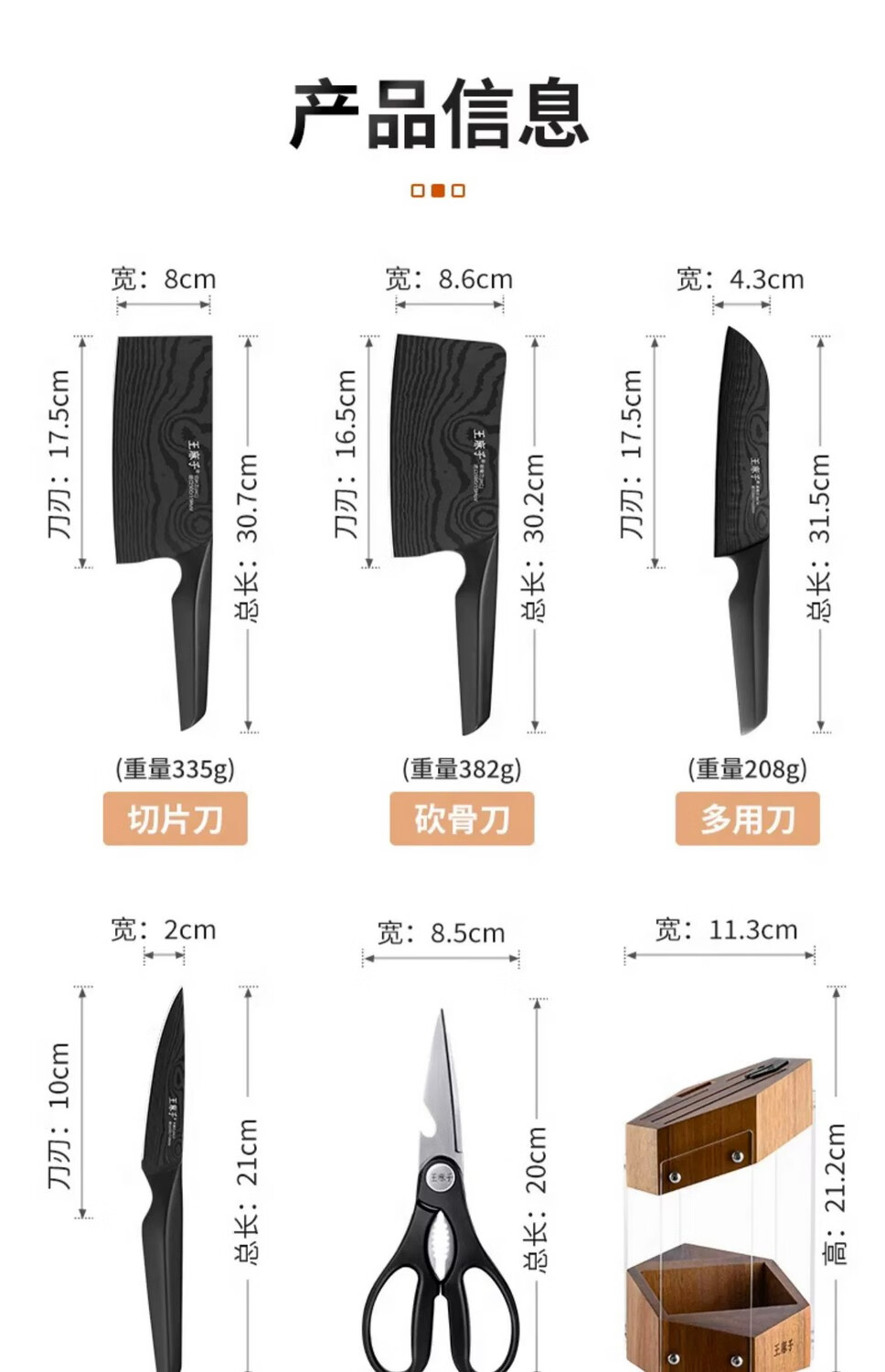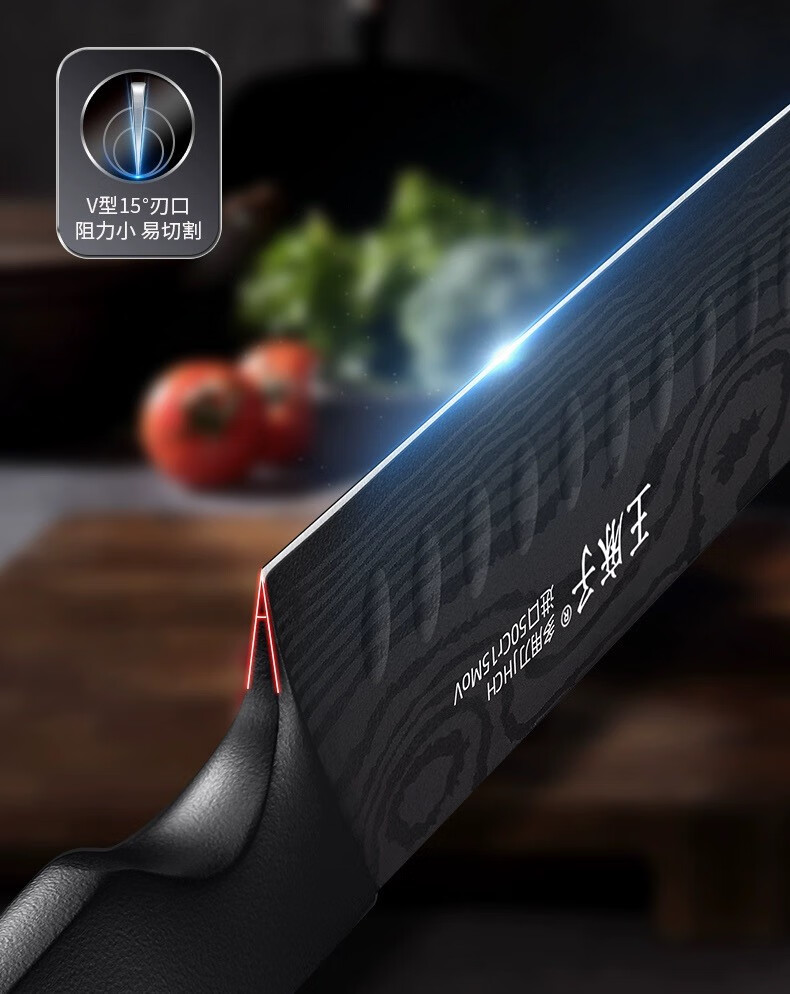 Wang Mazi Xinjiang Kefa Kitchen Knife Set Household Kitchen Knife Sharp Slicing Knife German Imported Steel 50Cr15 Bone Chopping Knife Damascus Pattern-7-piece Knife Set