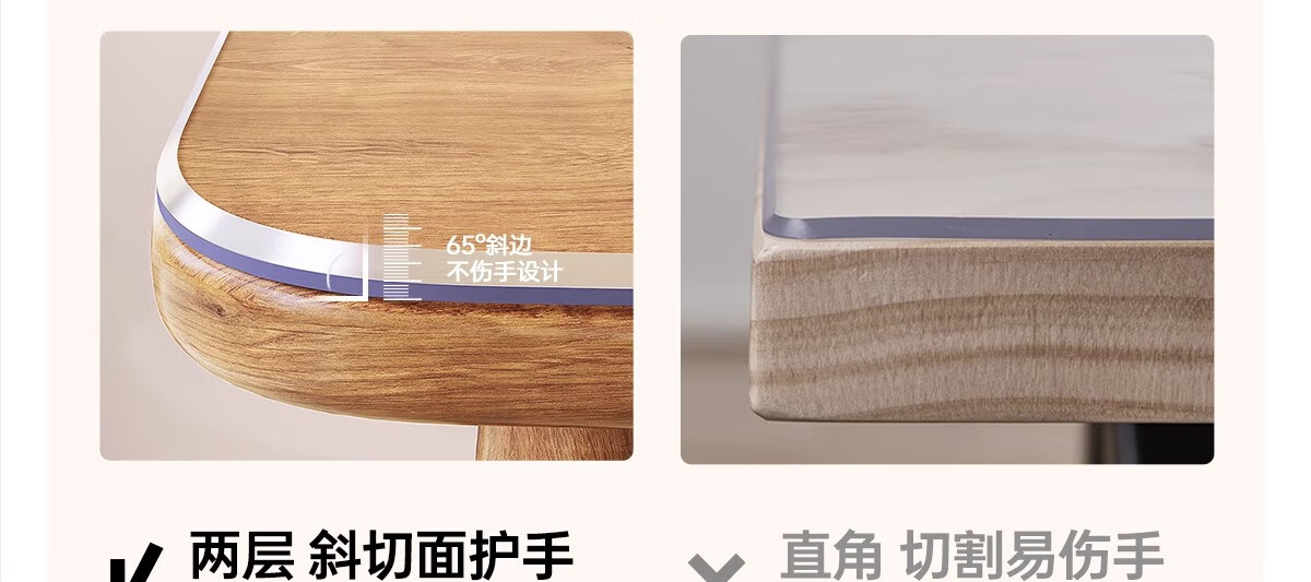 Yunshi Food Grade Transparent Table Mat PVC Soft Glass Table Mat Waterproof, Oilproof, Anti-scalding, Rounded Corners and Grinding Edges Will Not Hurt Your Hands (Matte 2.7mm) Thickened and Anti-scalding Recommended for Dining Table 80*130cm (Rounded Corners and Beveled Edges)