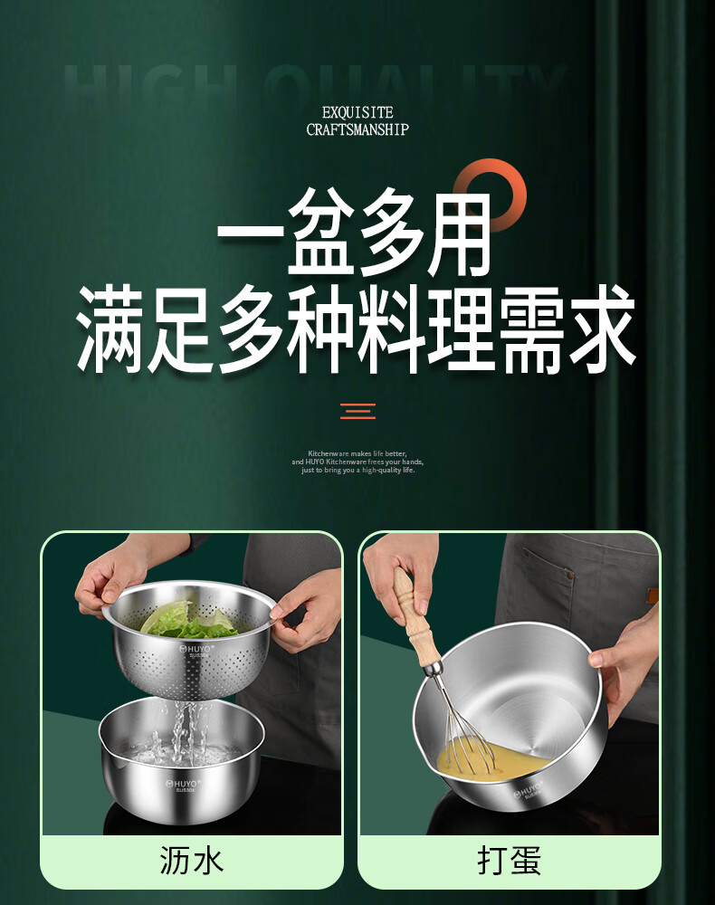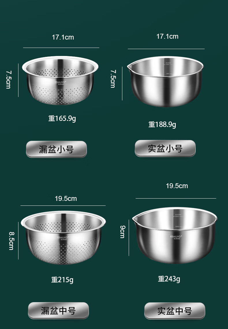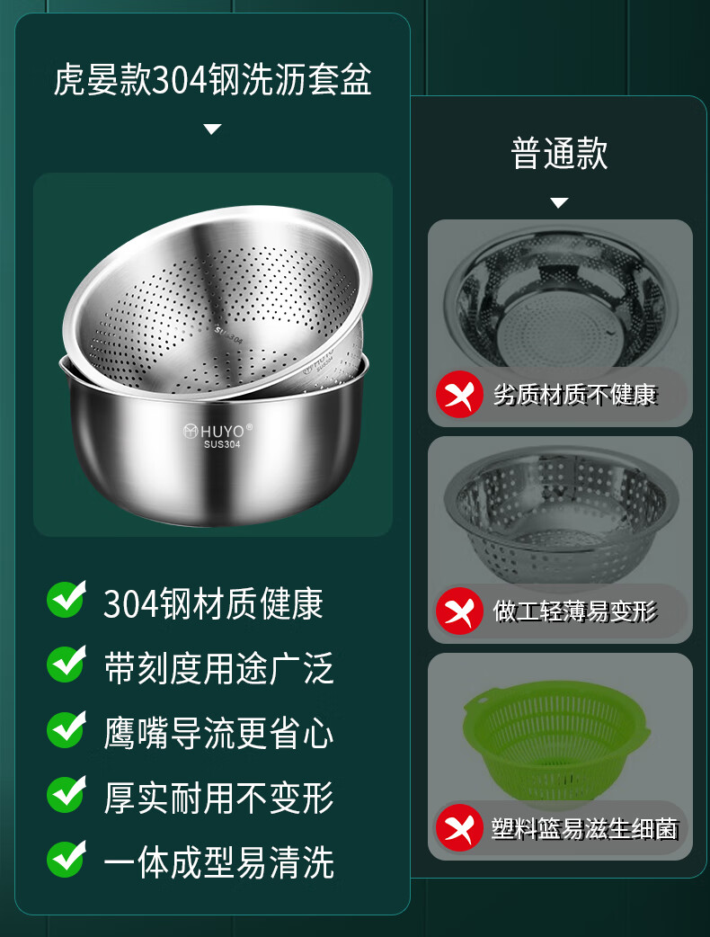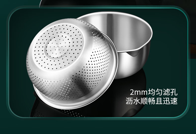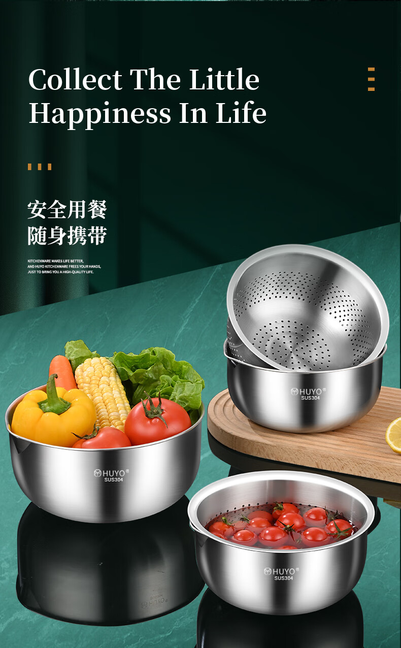 HUYO304 stainless steel sink drain basket household rice washing sieve drain basin set kitchen salad egg beater and basin set 21cm sink + water filter basin
