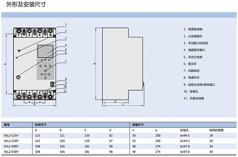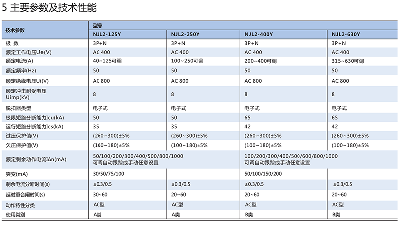 Chint leakage circuit breaker NJL2-125/250/400/630Y automatic reclosing three-phase intelligent protector 125A