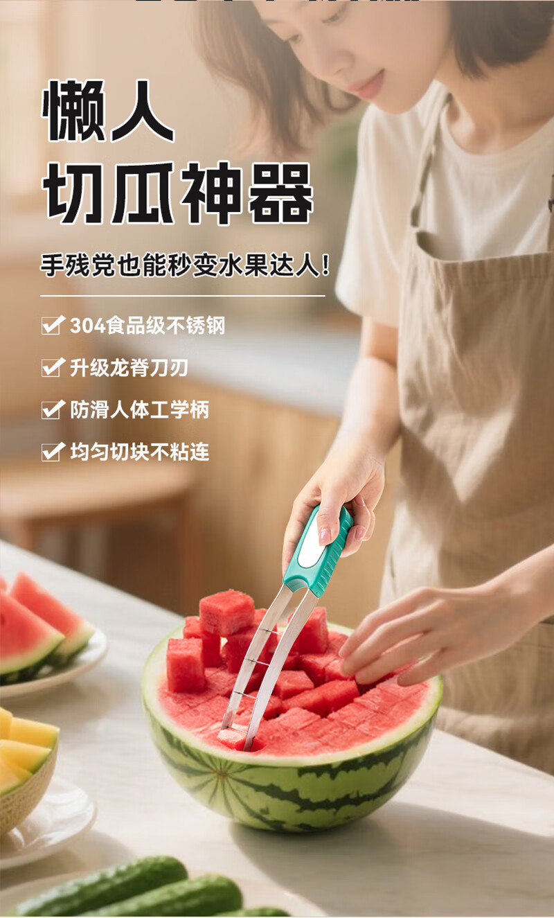 OIMG Watermelon Cutting Artifact 304 Stainless Steel Watermelon Cutting Special Knife Fruit Divider New Cutting Artifact Upgraded 304 Stainless Steel Watermelon Dicer + No