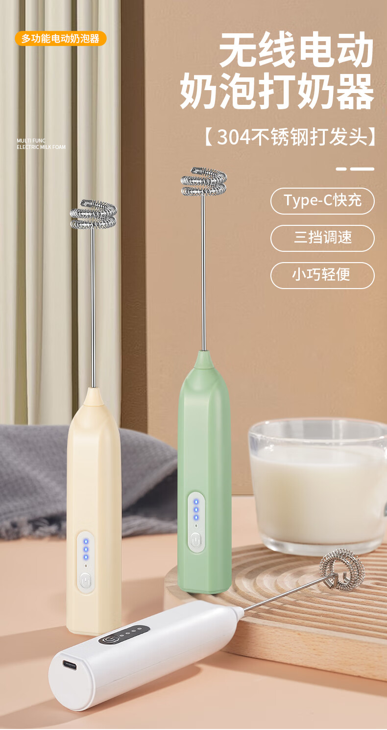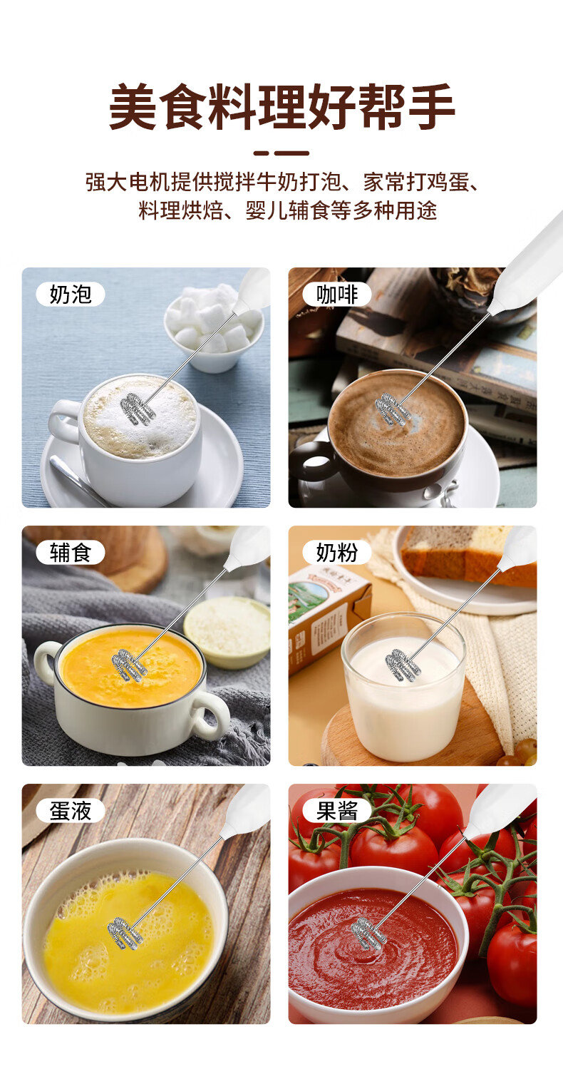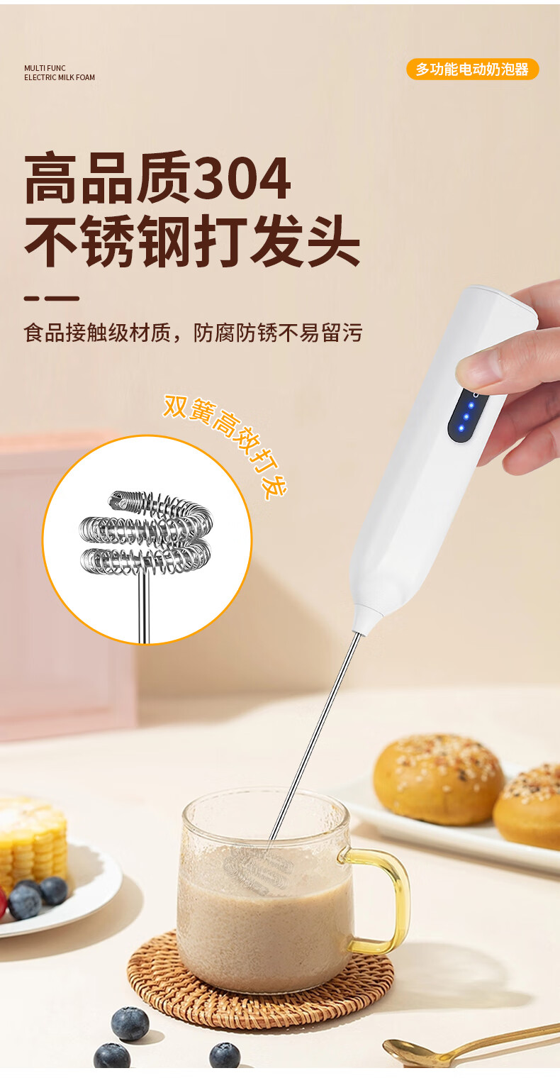 Frother Coffee/Egg Beater Electric/Dynamic Milk Frother Household Stirrer Milk Stirring White Three-speed Speed + Powerful Big Motor + Long Continuation