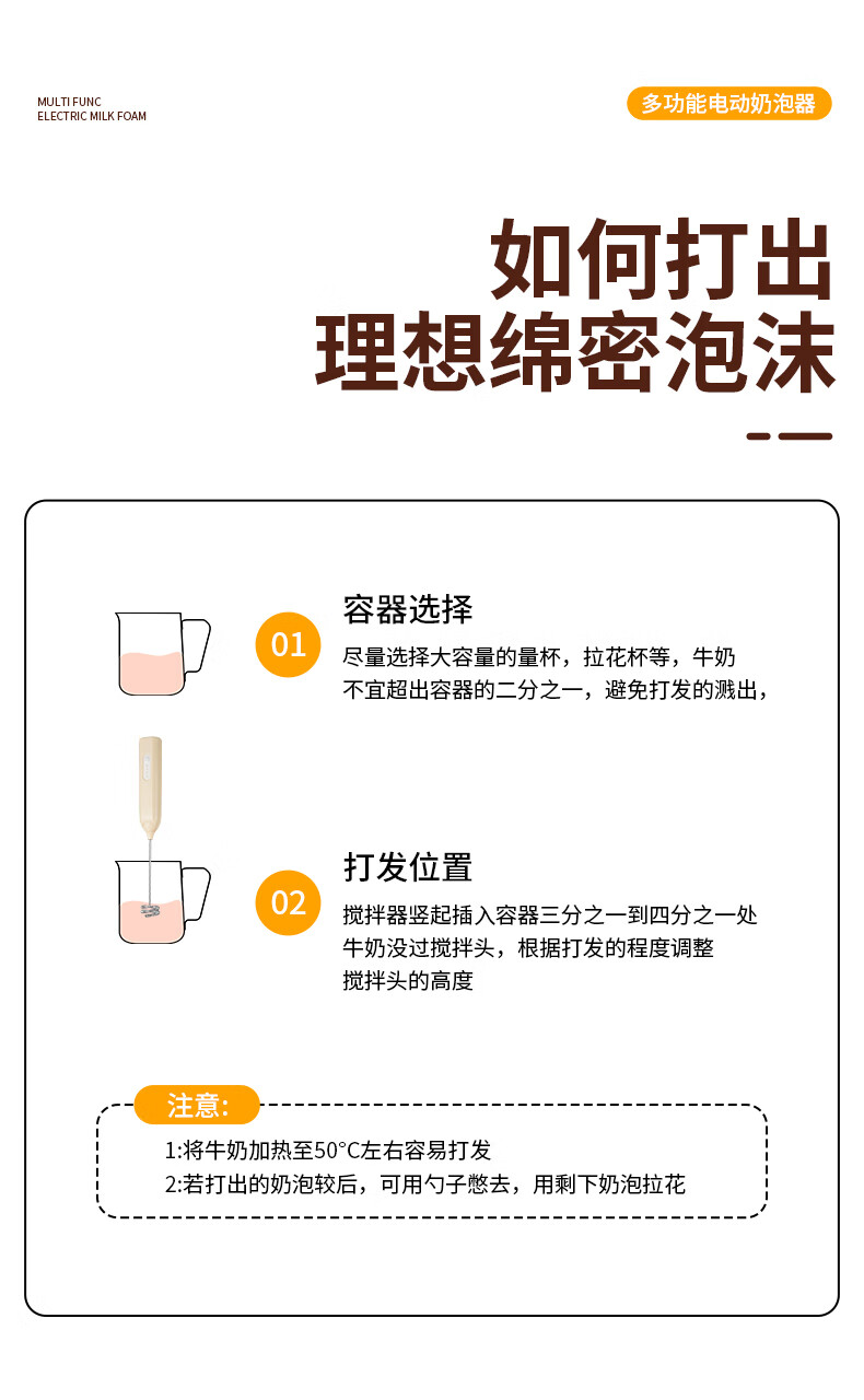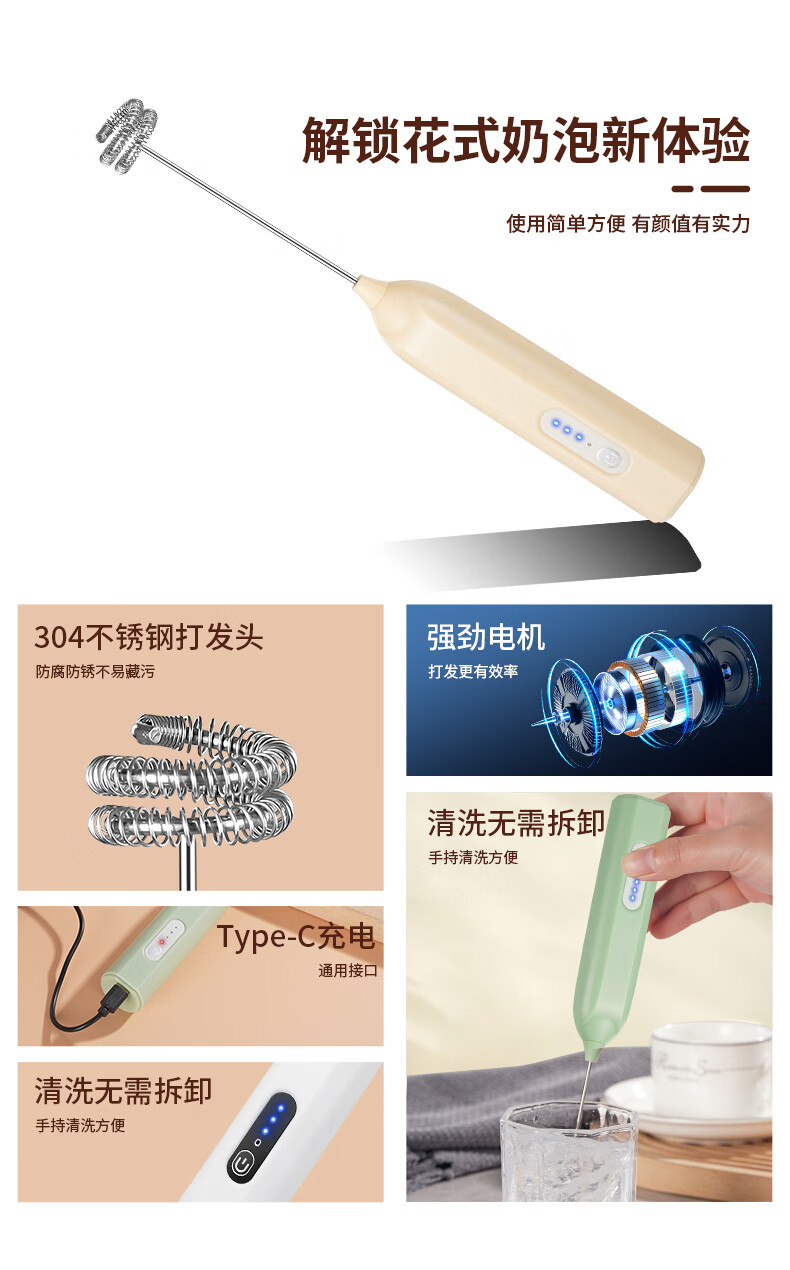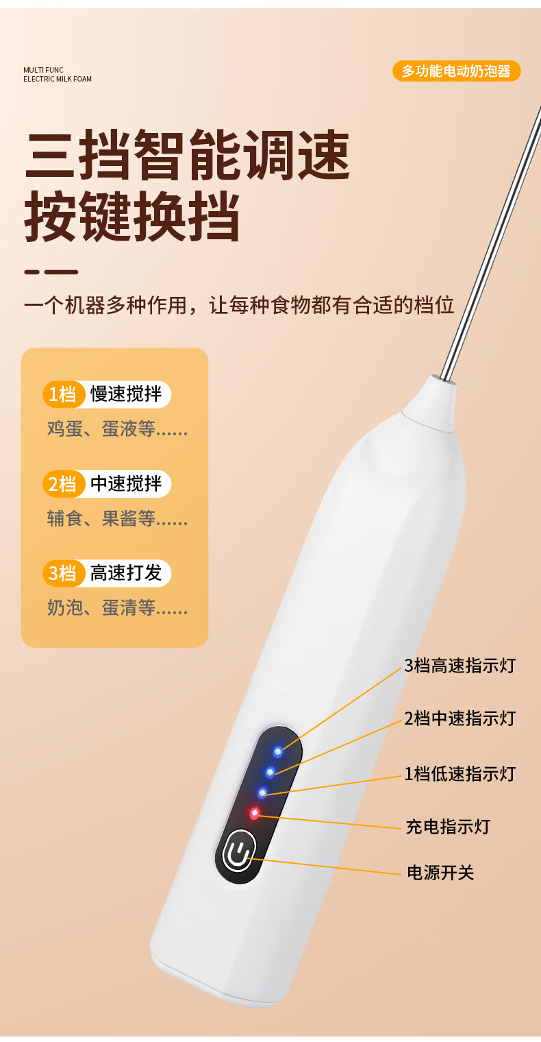Frother Coffee/Egg Beater Electric/Dynamic Milk Frother Household Stirrer Milk Stirring White Three-speed Speed + Powerful Big Motor + Long Continuation