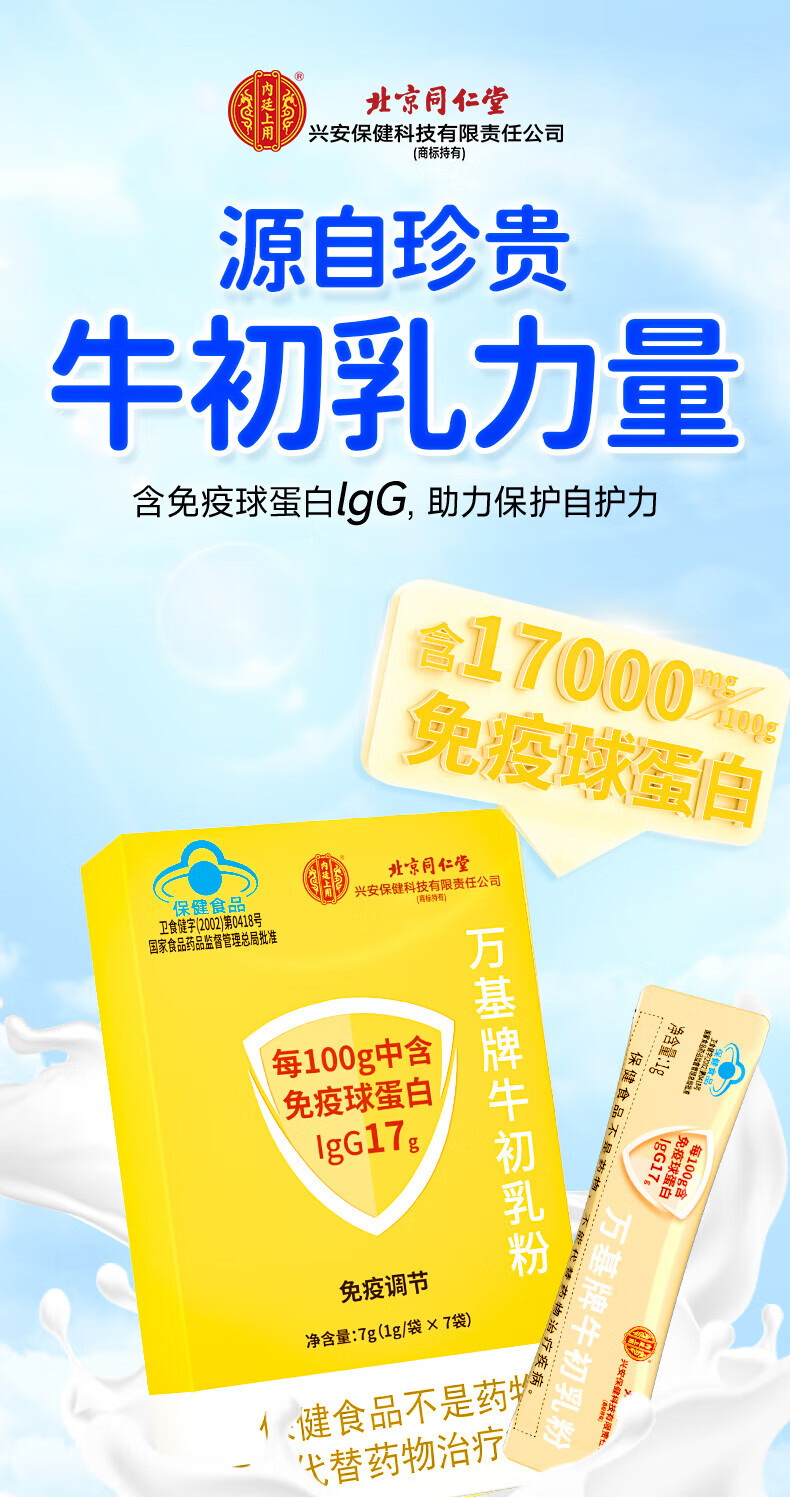 Beijing Tong Ren Tang Bovine Colostrum Powder Immune Globulin Powder Human Ball Oral Oral Improvement Enhances Resistance and Poor Constitution Hemorrhoids and Anesthesia Clinic Blue Hat Eight Boxes Treatment Pack for People with Low Immunity