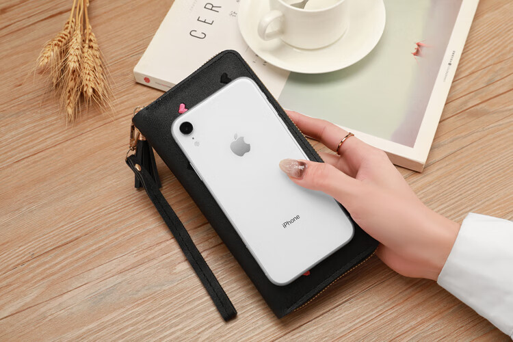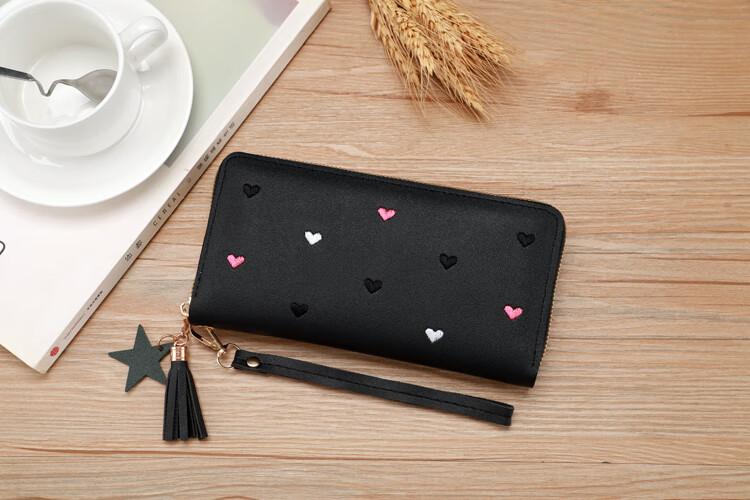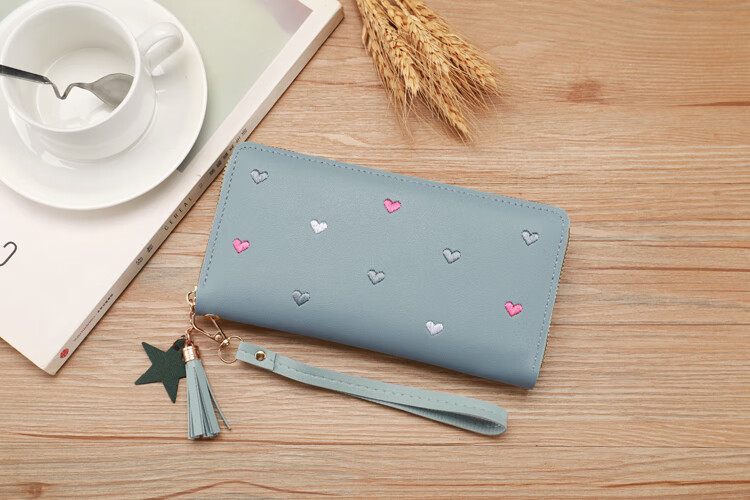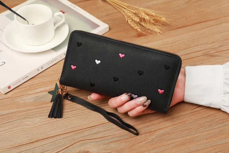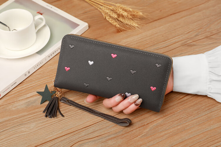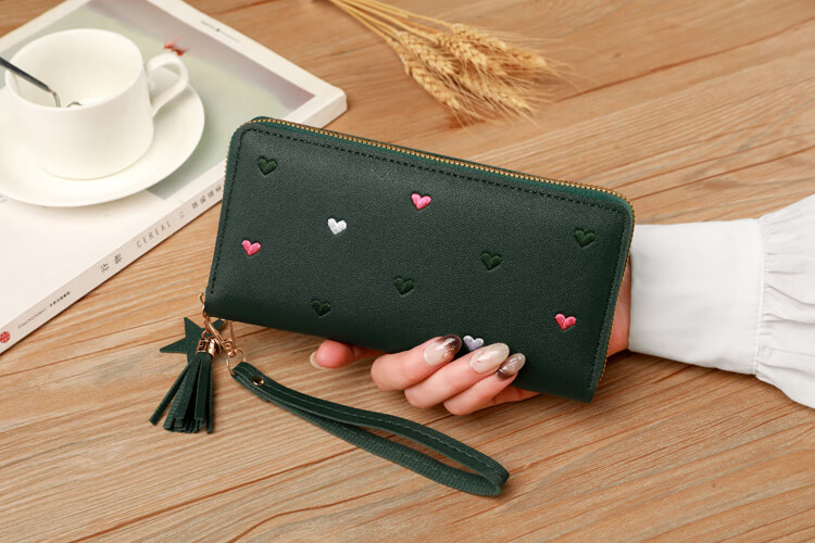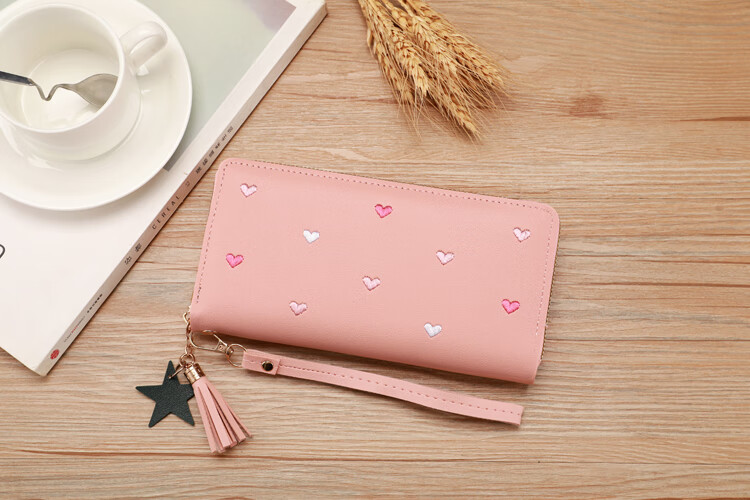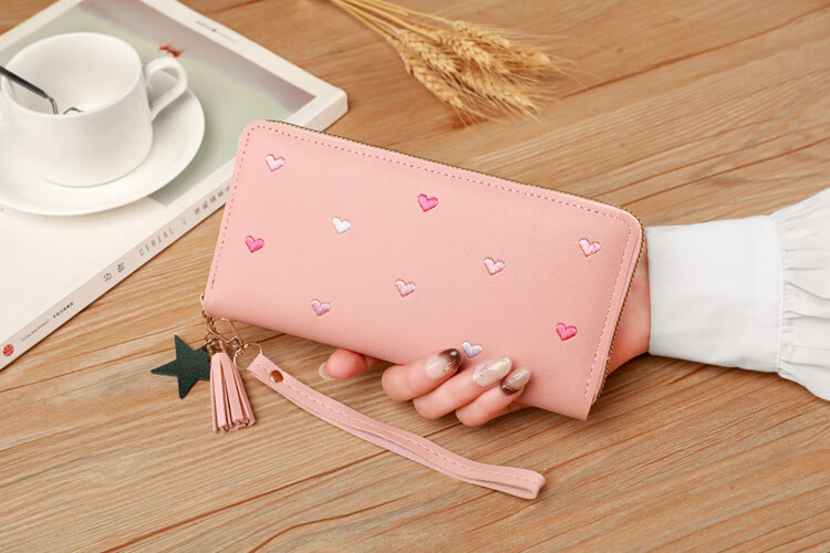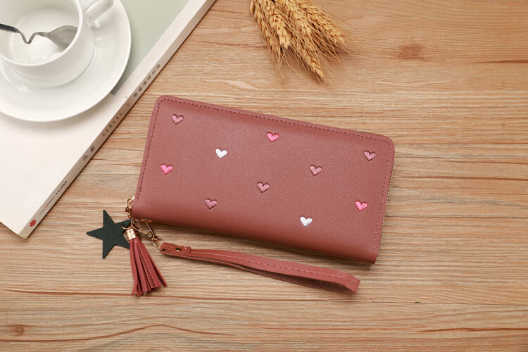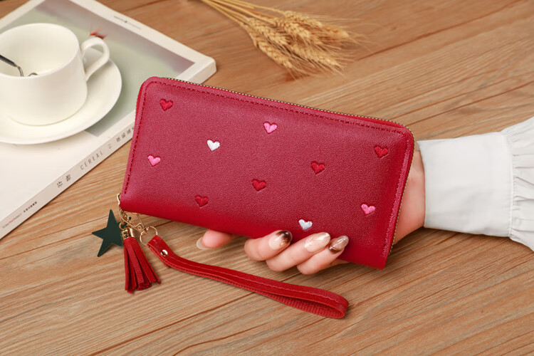 New Wallet Women's Multifunctional Embroidered Solid Color Mobile Phone Bag Casual Fashion Shopping Convenient Long Clutch Bag Dark Pink
