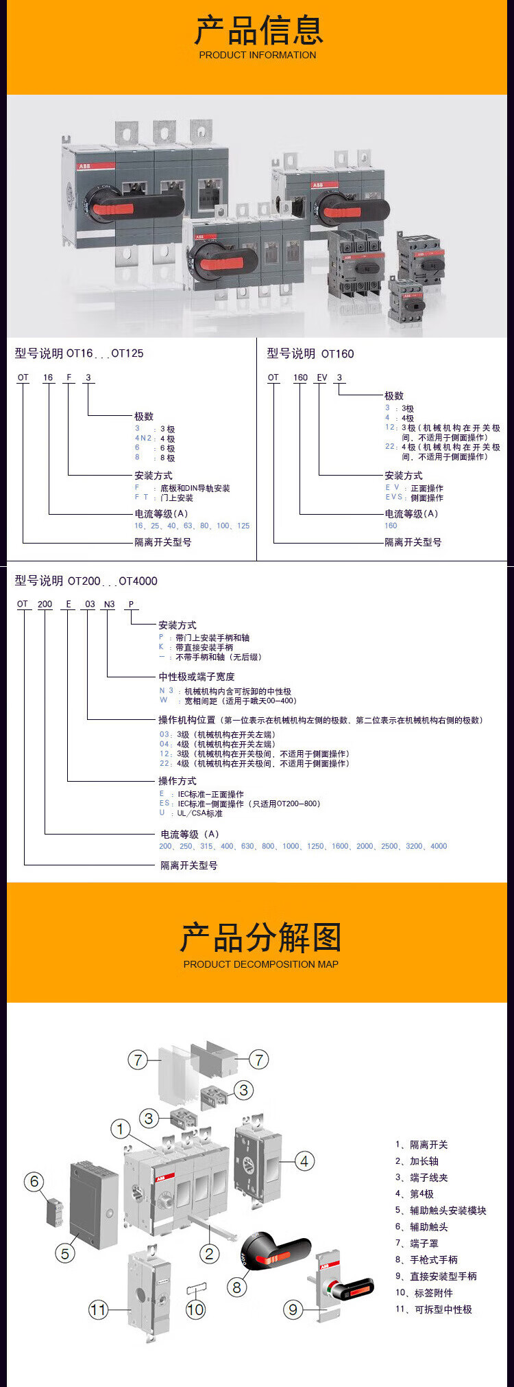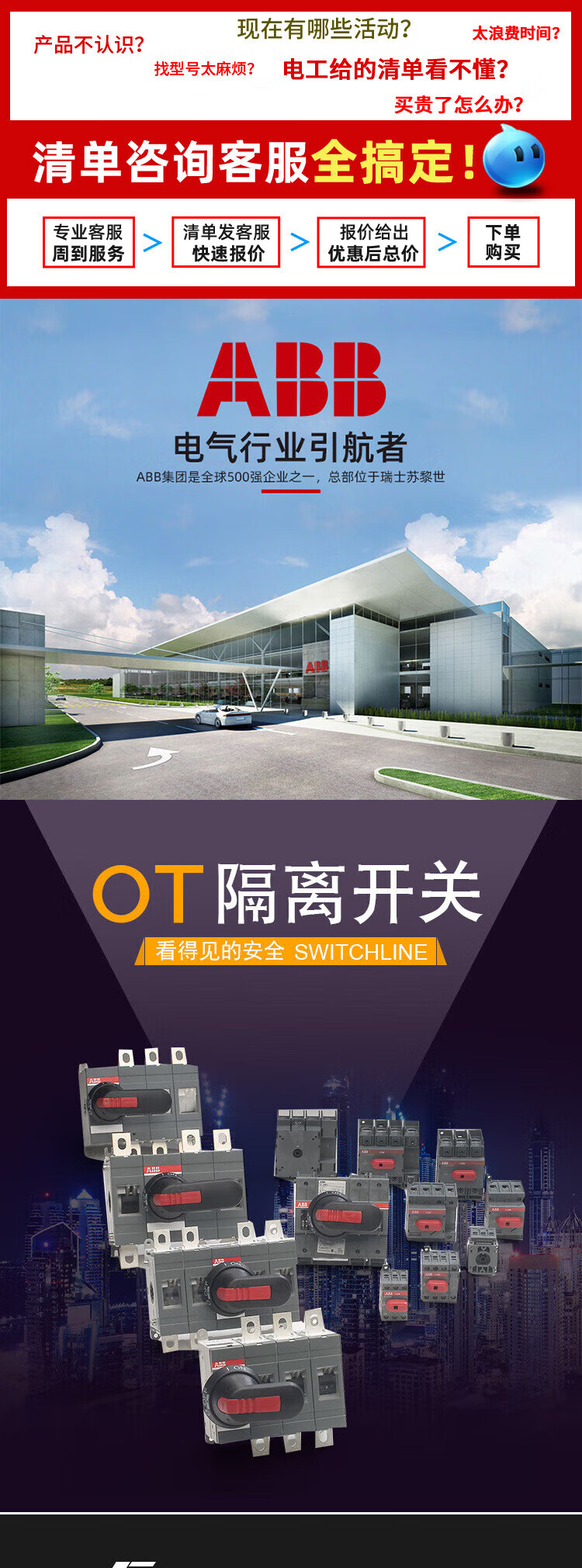 ABB load isolation switch OT63F3 OT400E03 OT2500E04P OT3200E04P OT6 OT400E04P