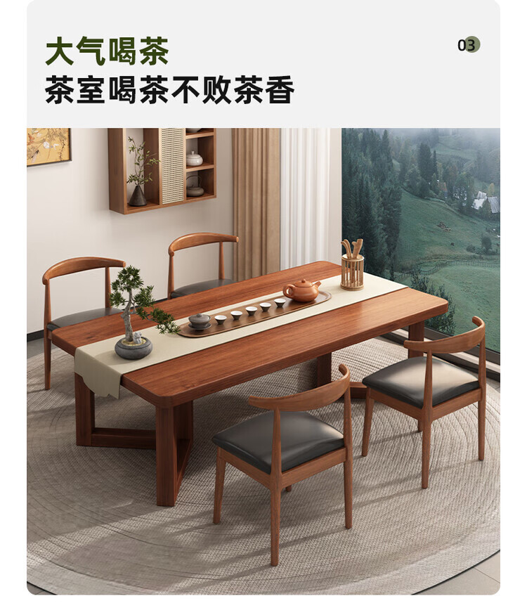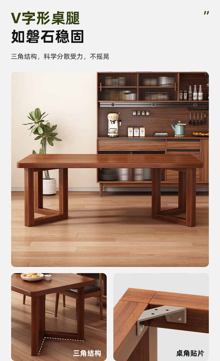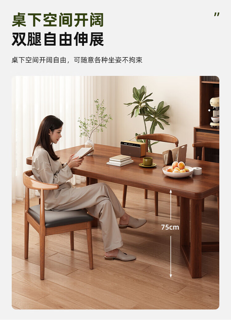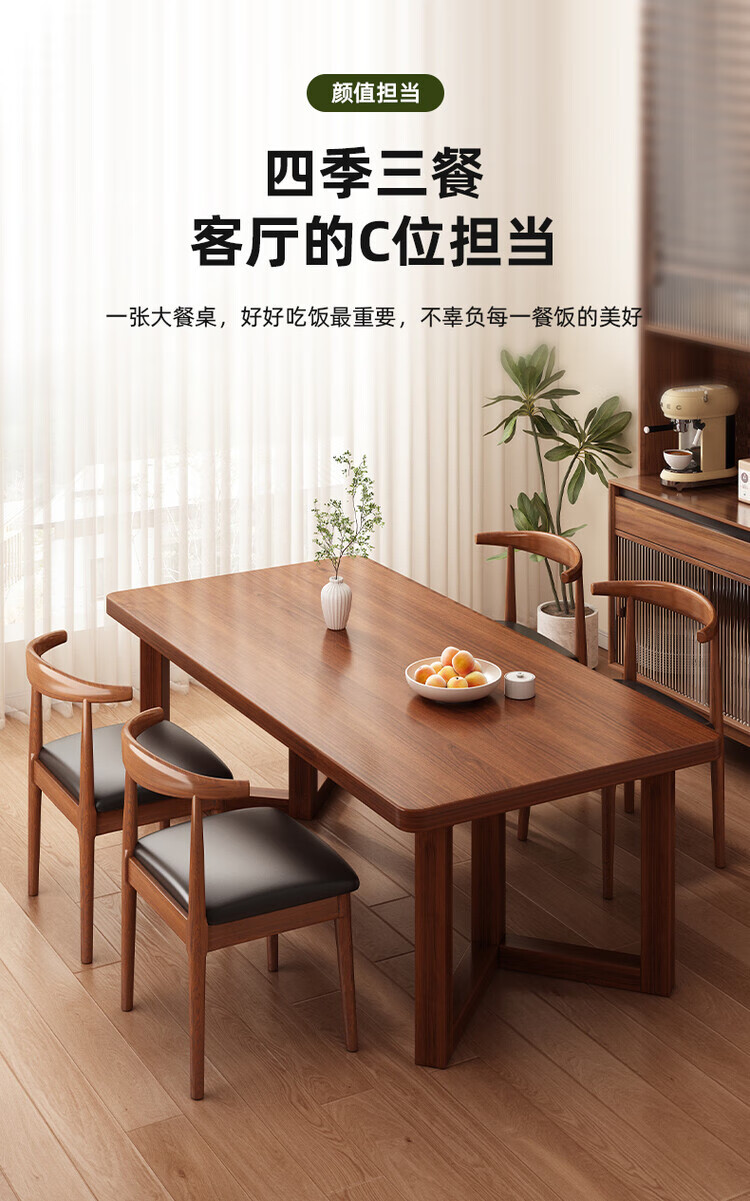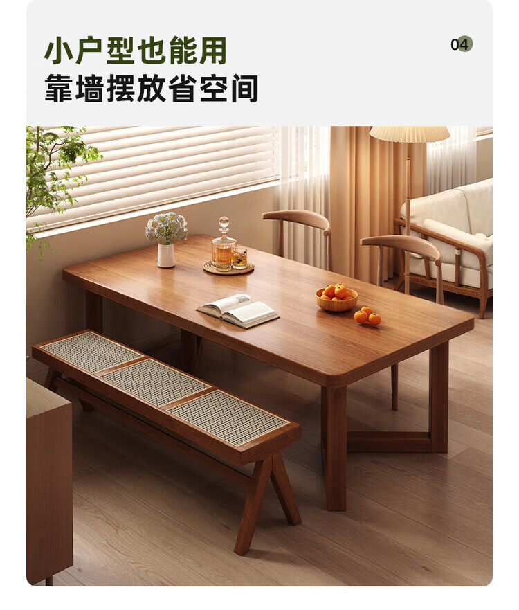 Muga solid wood leg dining table for home small apartment 2025 new style mid-century style living room table rectangular dining table and chair combination single table walnut color 140*60*75CM