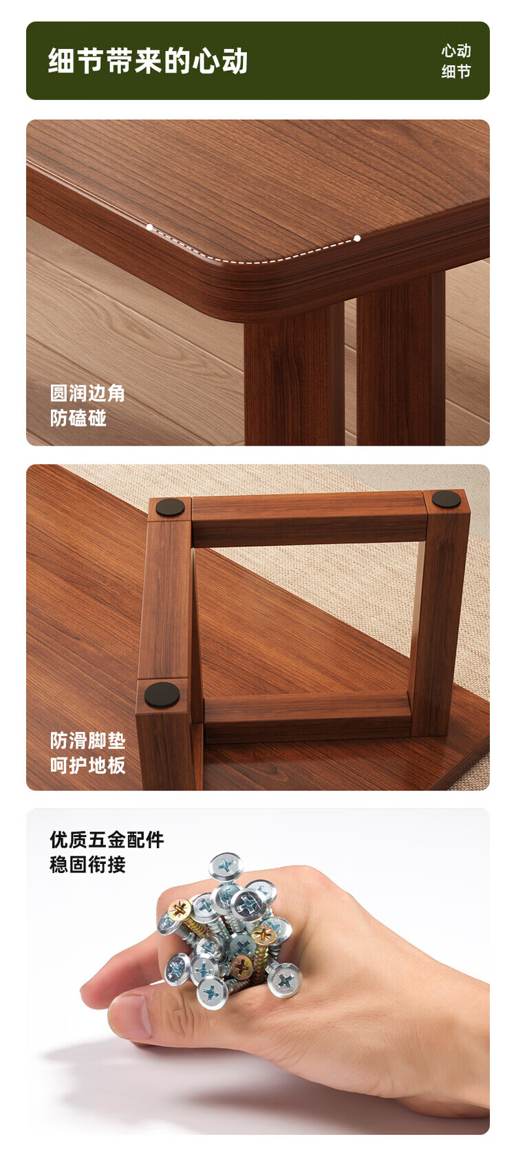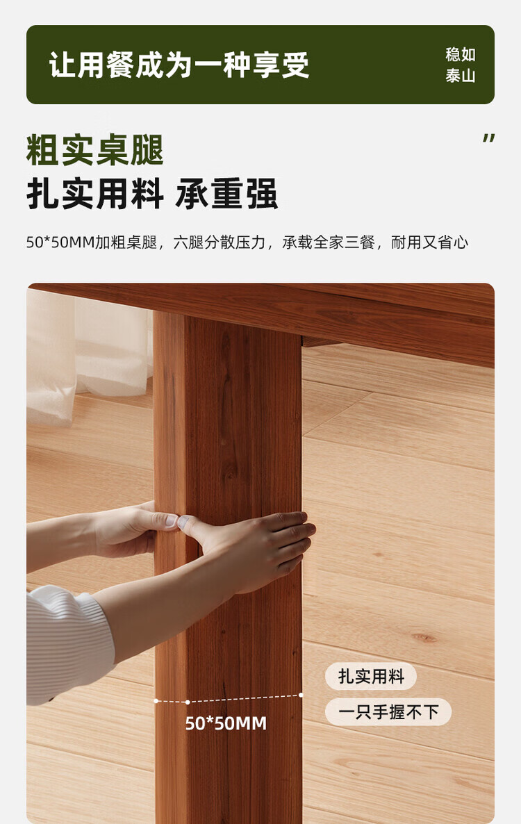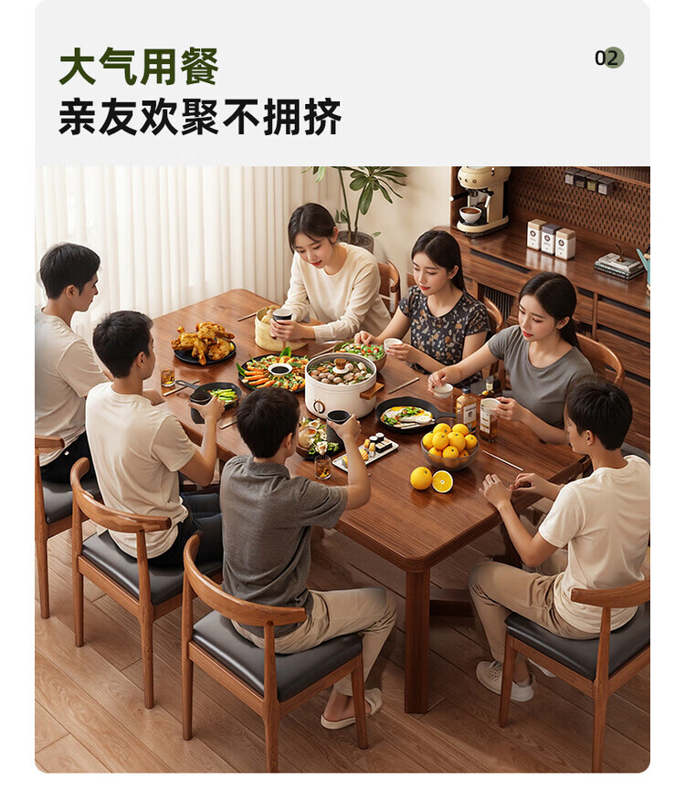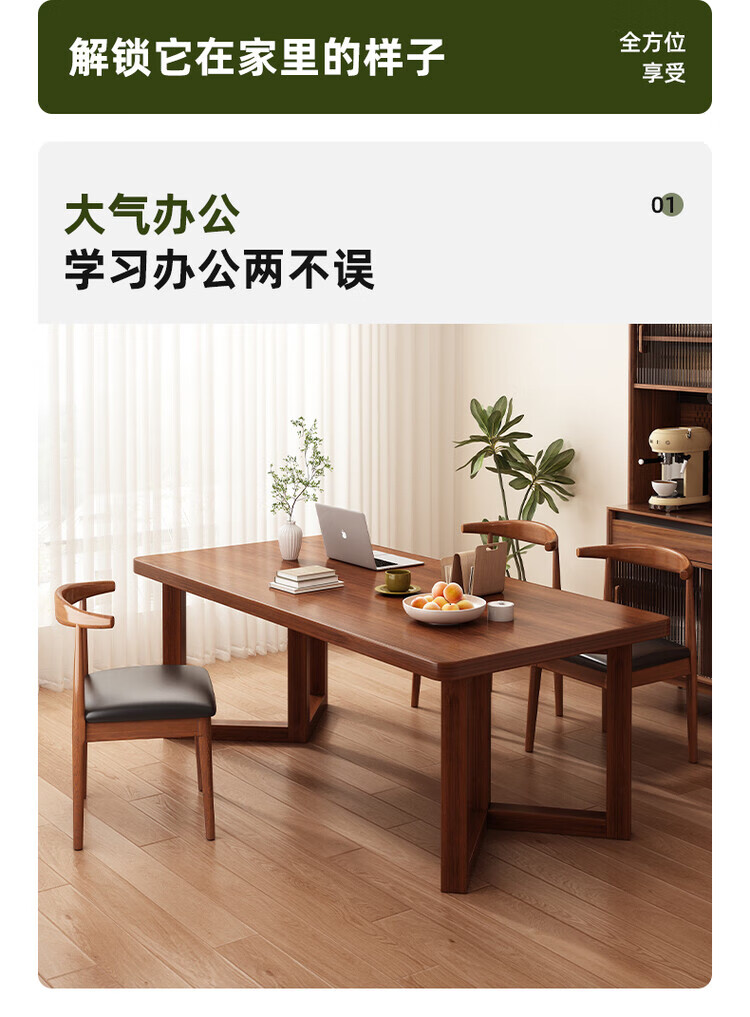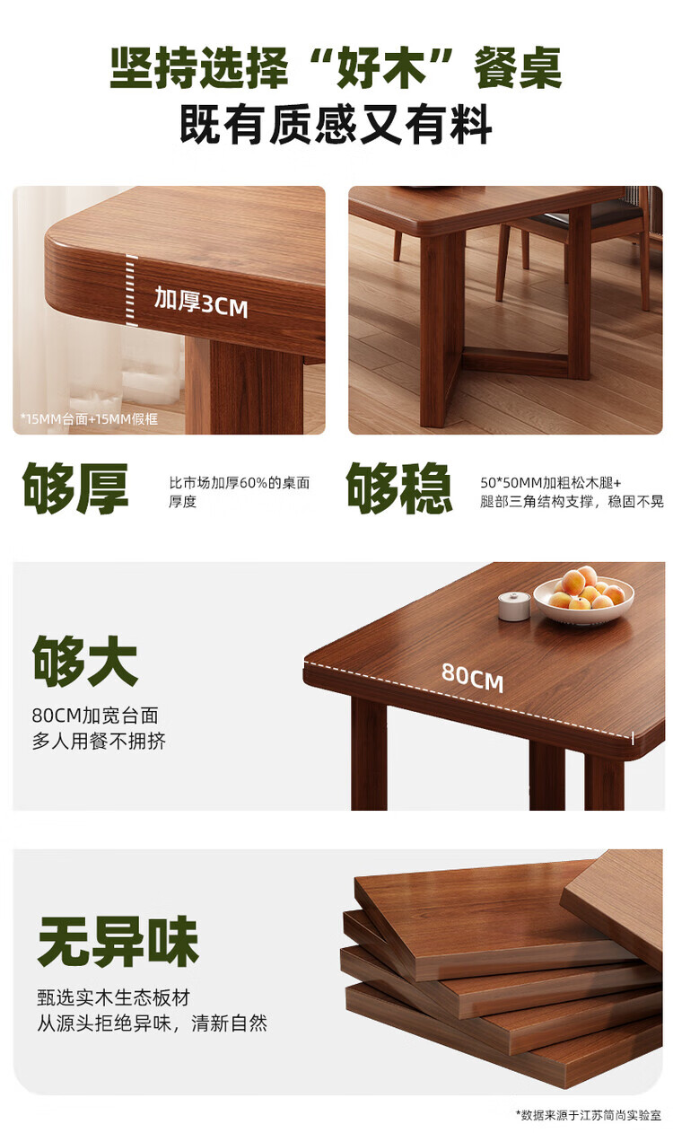 Muga solid wood leg dining table for home small apartment 2025 new style mid-century style living room table rectangular dining table and chair combination single table walnut color 140*60*75CM