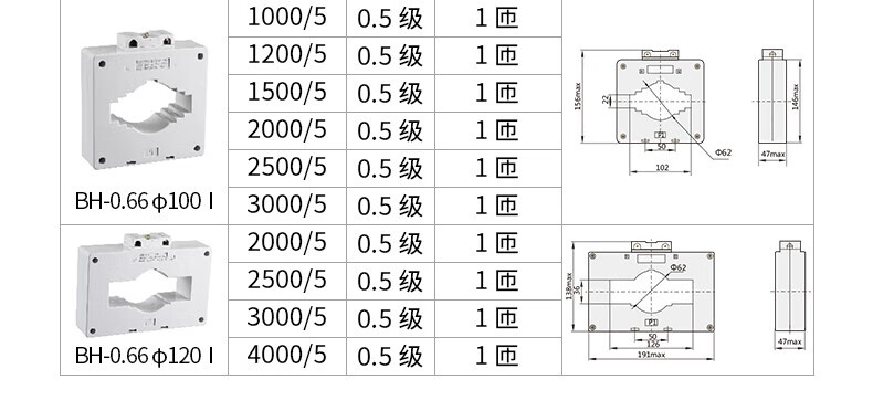 Chint current transformer BH-0.66 30 high precision 0.5 level small three-phase AC 100/5 150/5 150/575KW power below 300.5 level