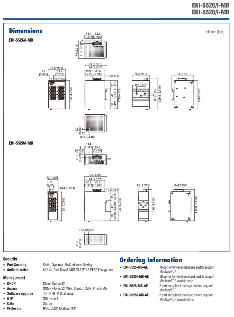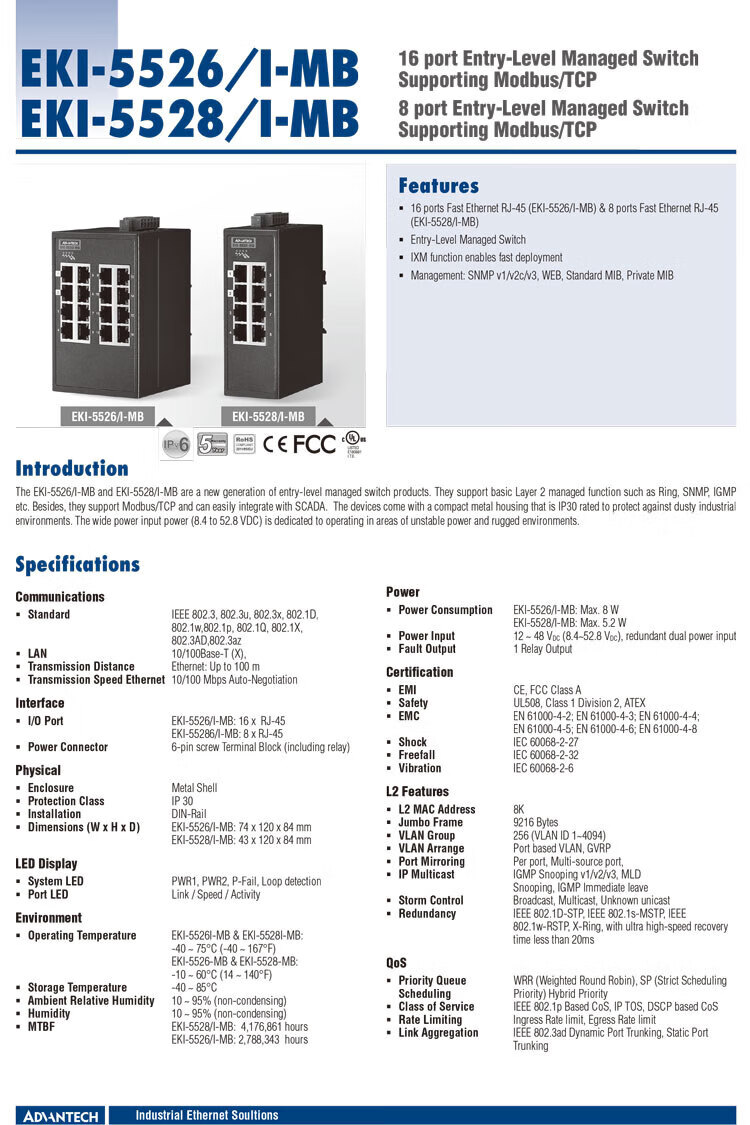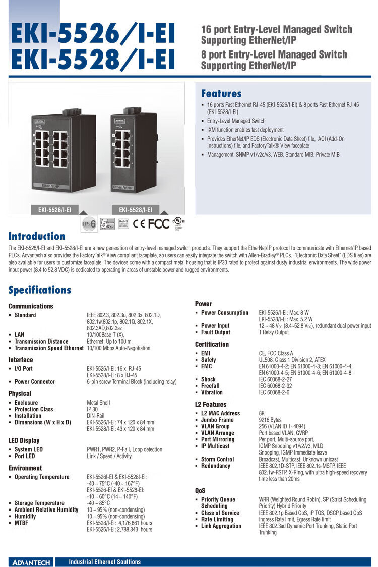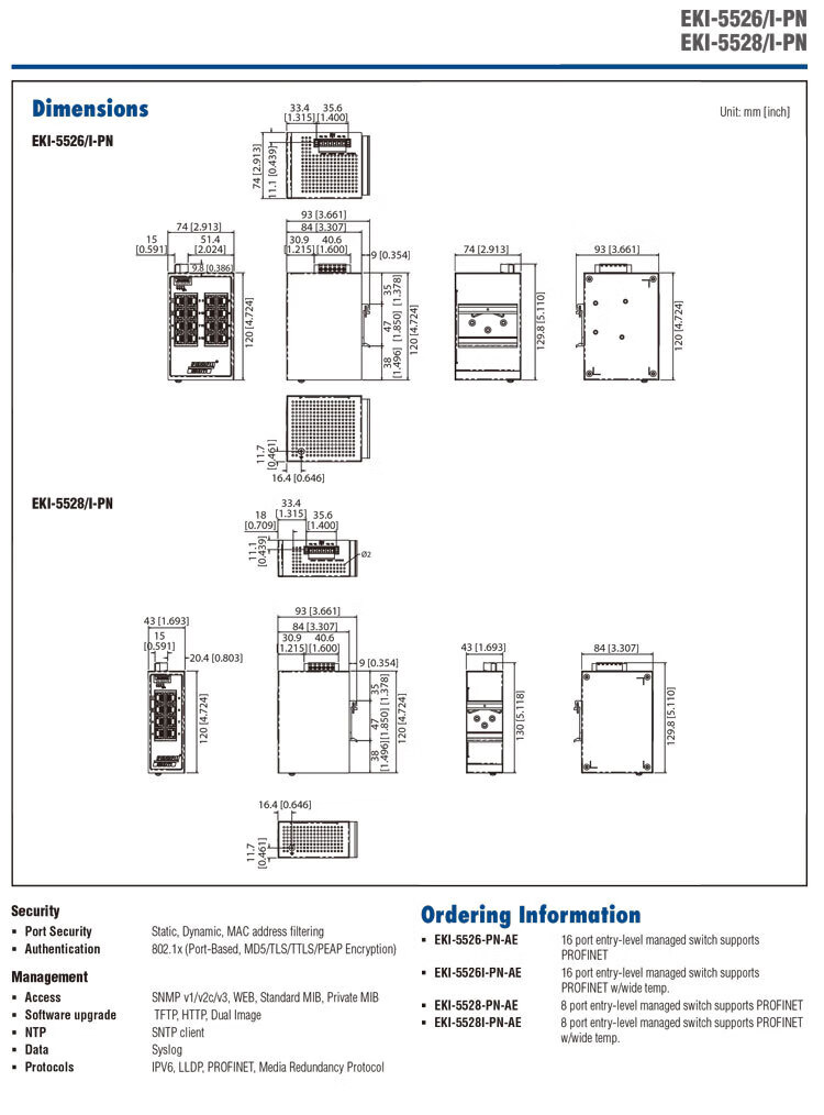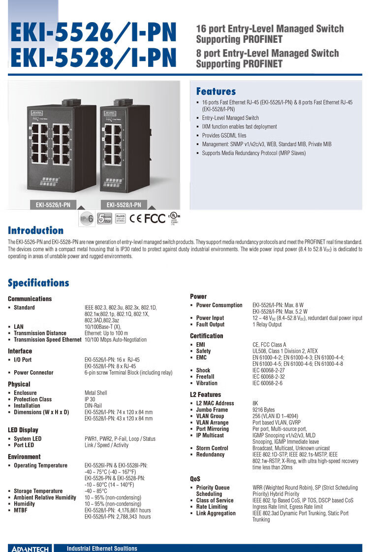 EKI-5528I-PN-AE Advantech Modbus/TCP EtherNet/IP PROFINET Protocol EKI-5528I-AE