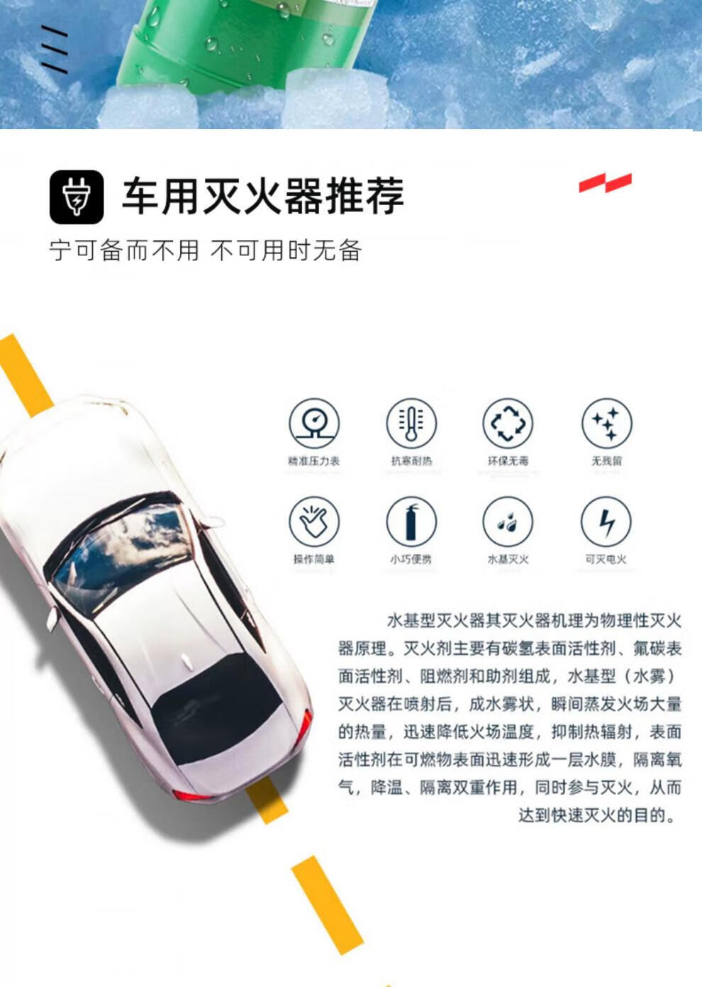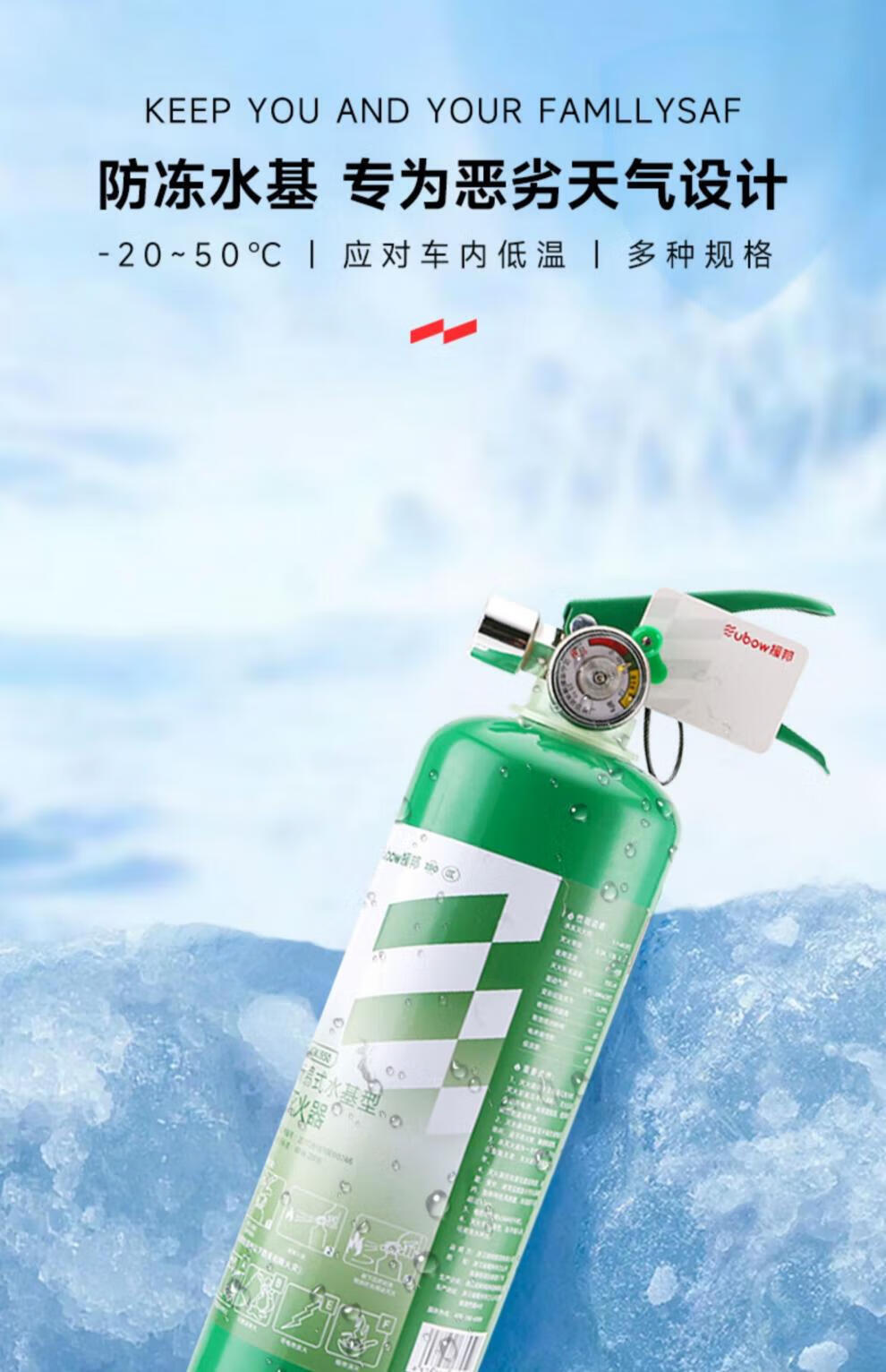 Yuanbang Low Temperature Antifreeze Water-based Fire Extinguisher Small Portable Car Household Water-Based Car Fire Extinguisher 3C Certification -20 Available 980ML
