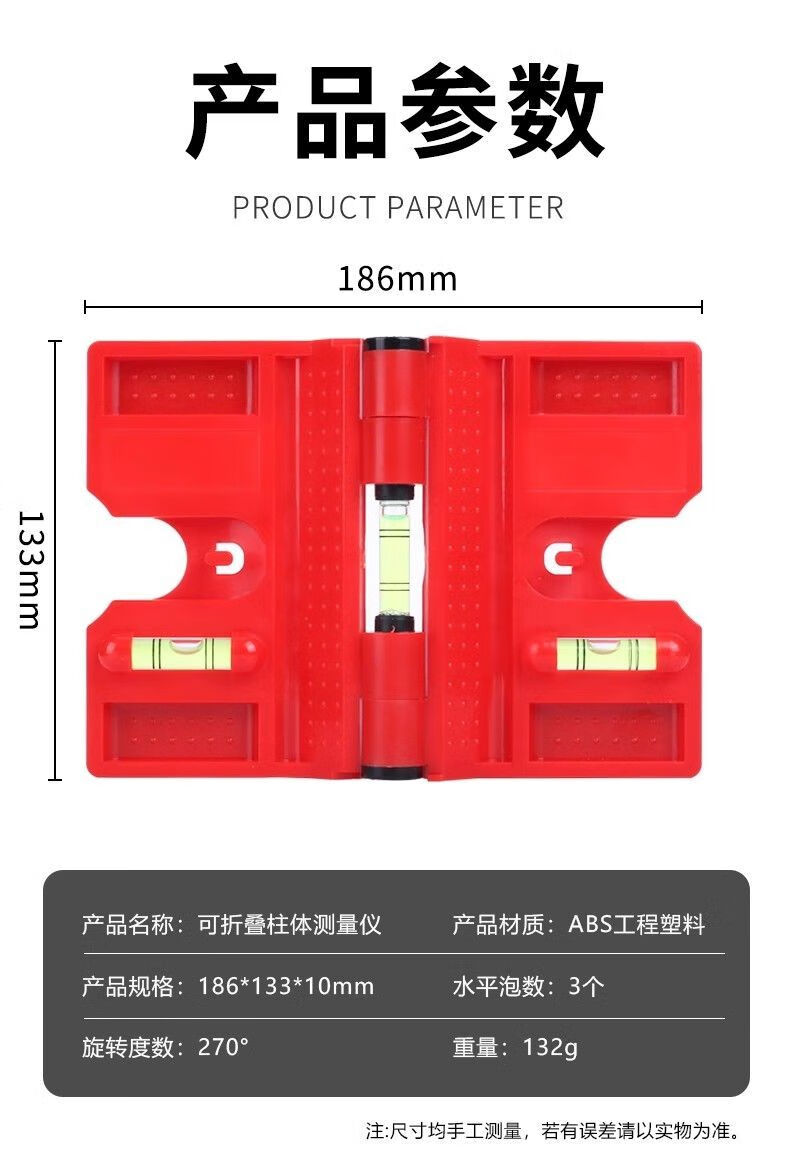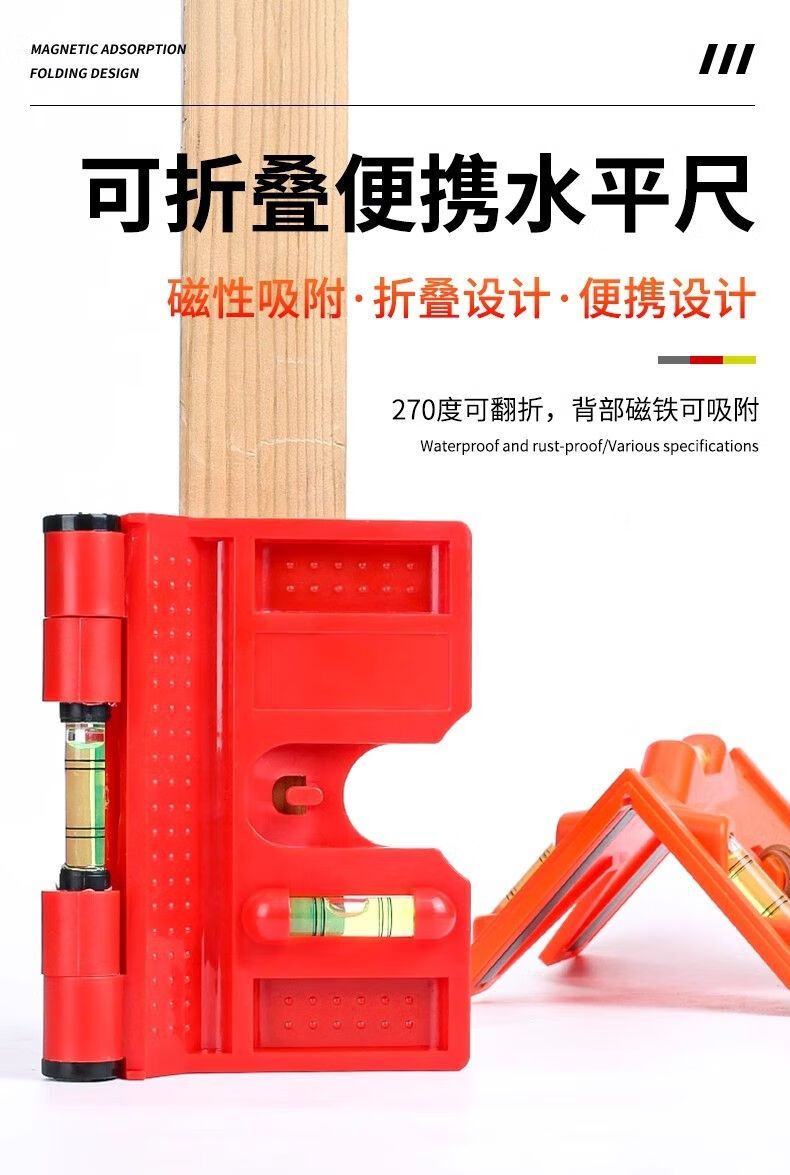 Meikejie foldable column level vertical with soft magnet angle level for woodworking decoration construction steel structure folding level (red)