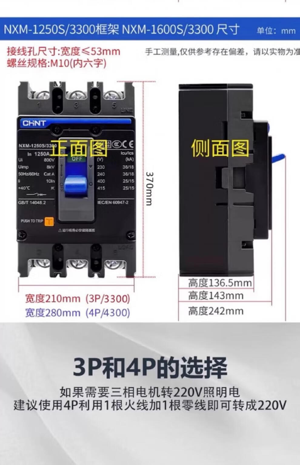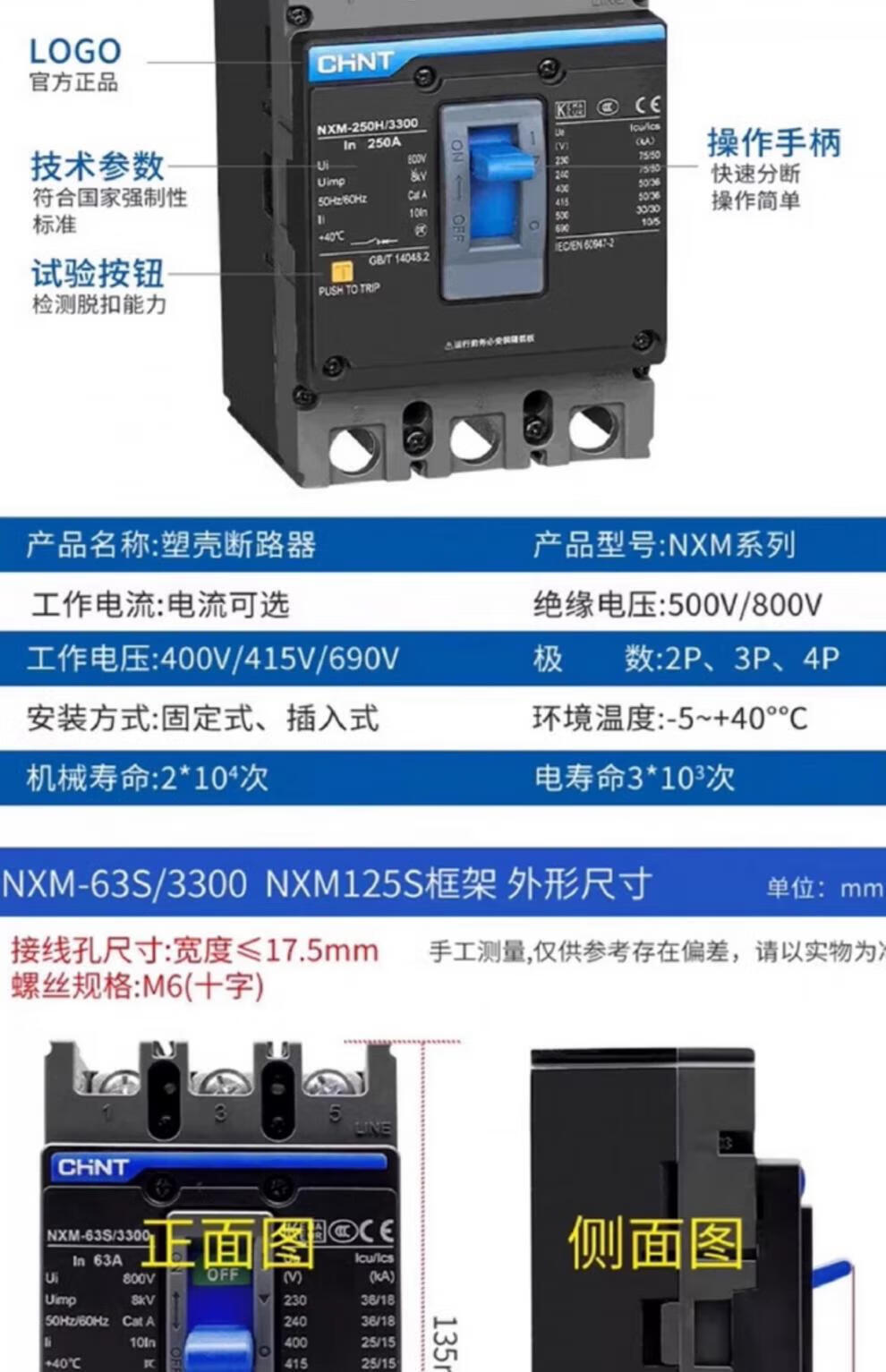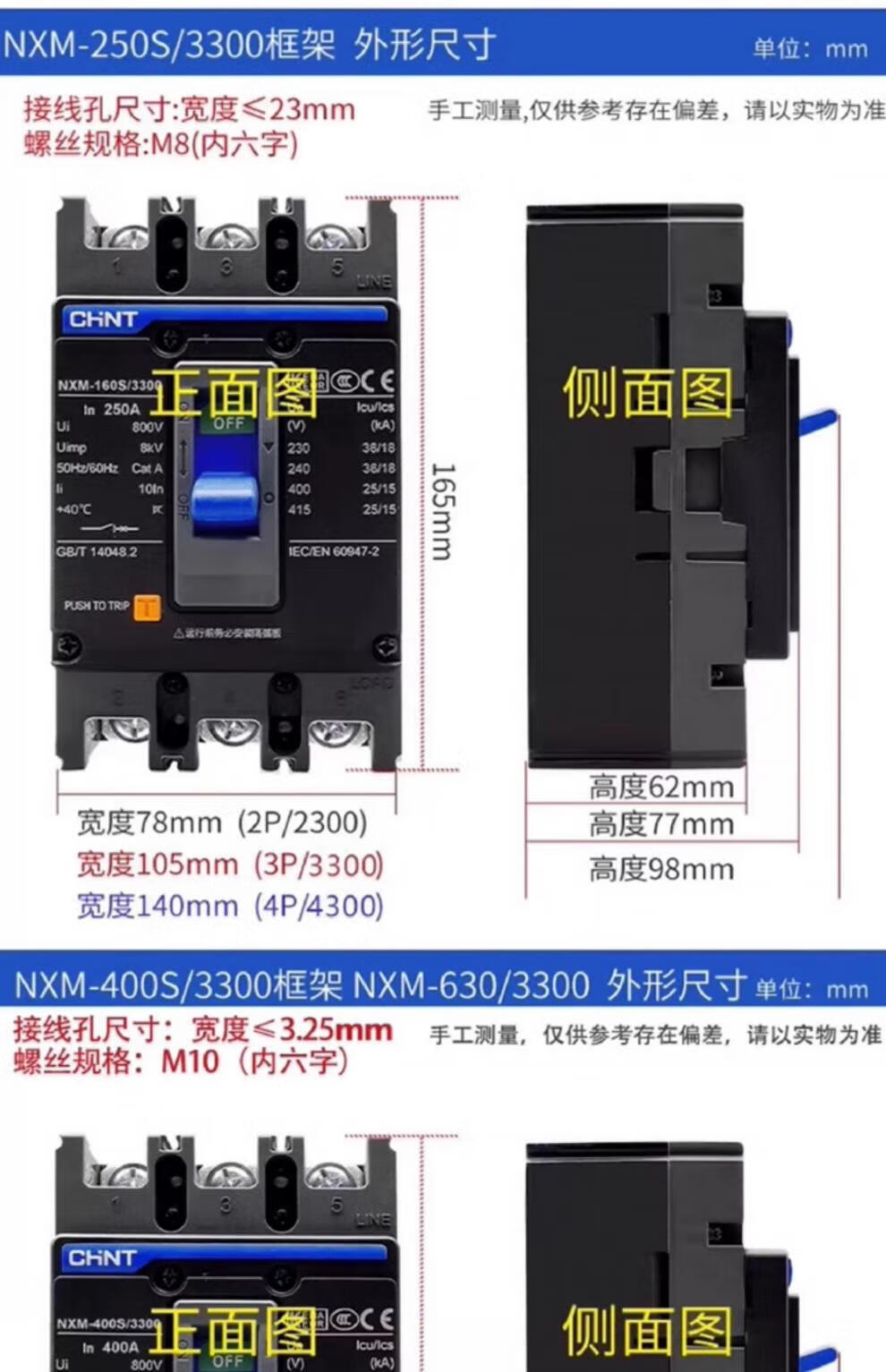 Chint plastic case circuit breaker NXM air switch overload short circuit protection 125A/250A/400A/three-phase four-wire 4p 500A