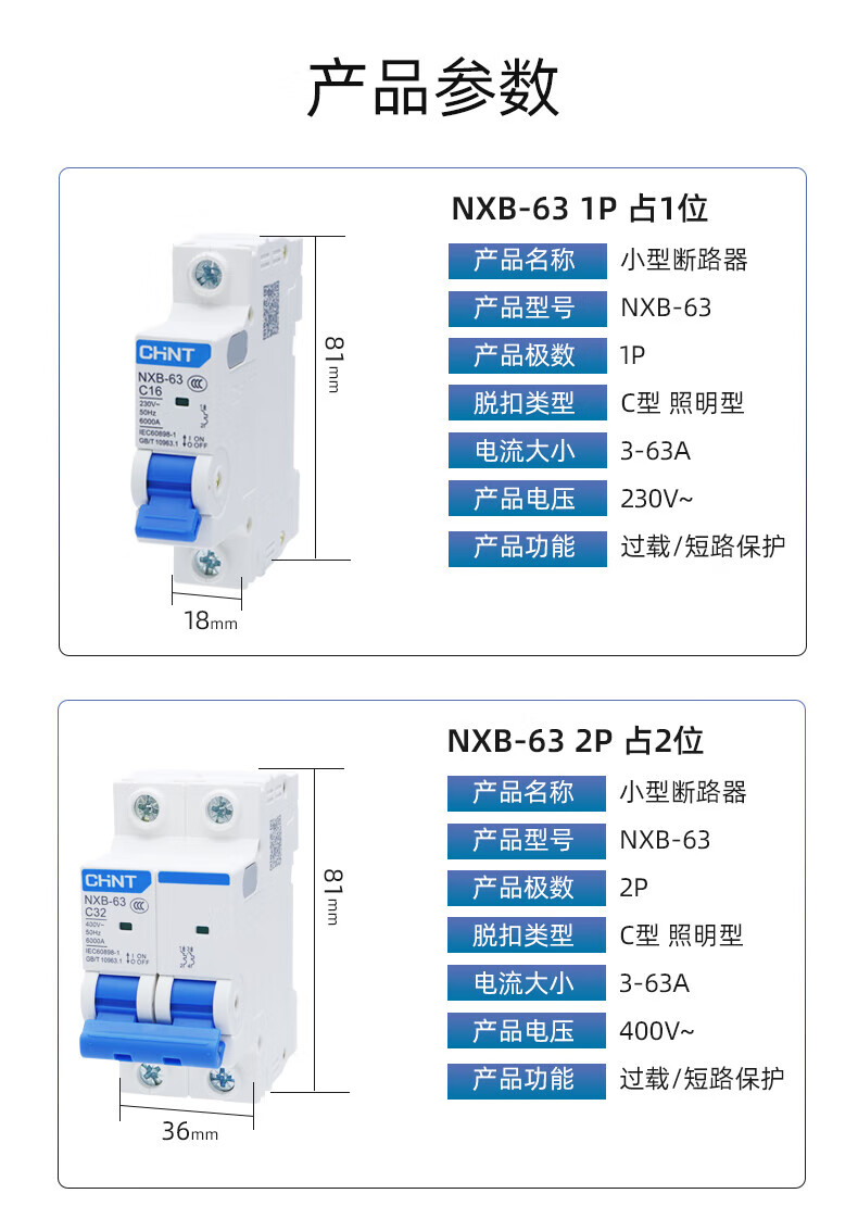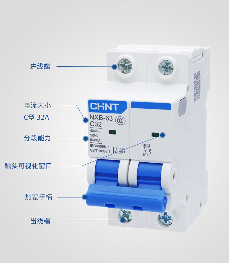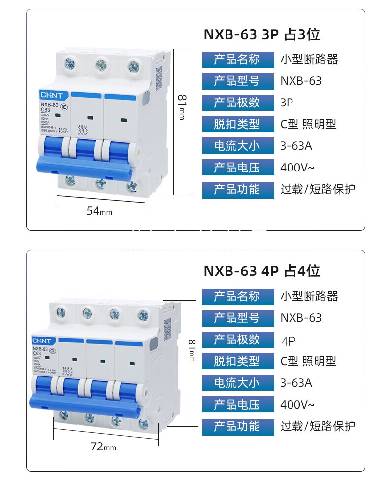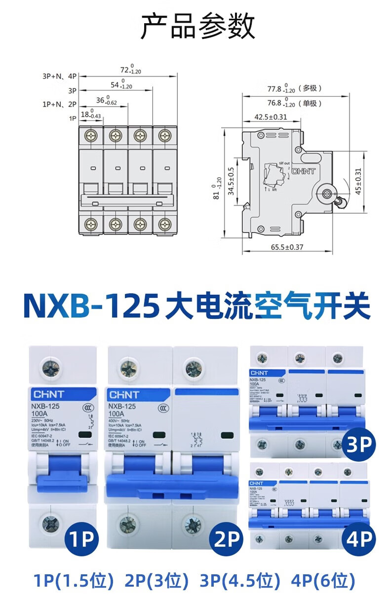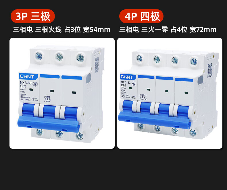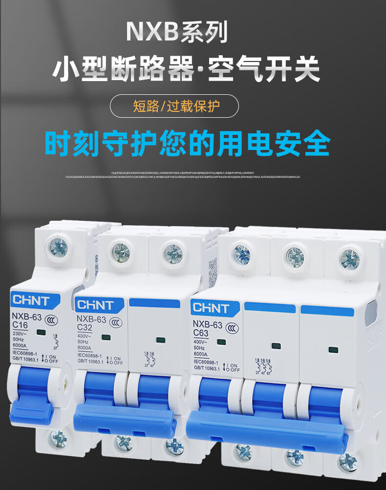 Chint air switch NXB household 63 small circuit breaker 1P2P3P4PC type gate protector air switch DZ47 125A 4p