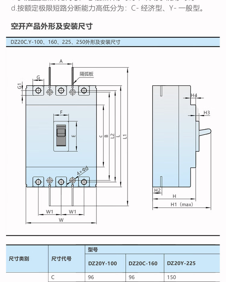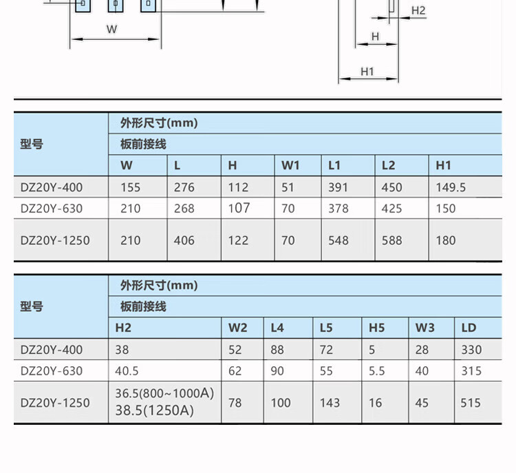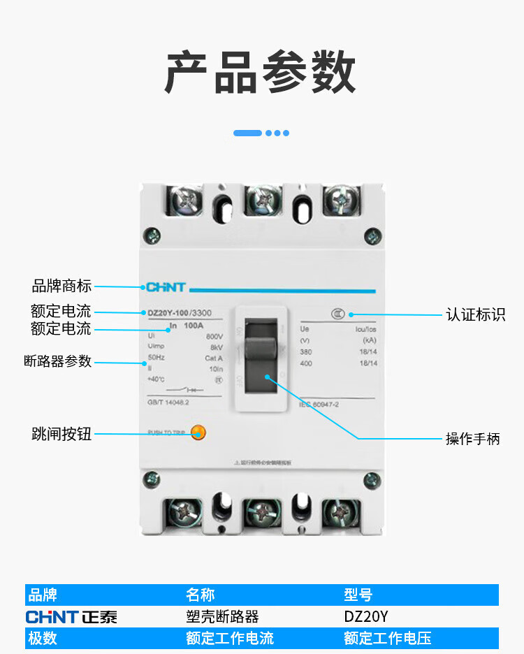 Chint plastic case circuit breaker DZ20Y air switch 100A160A200A225A400A three-phase air switch 380V 3P 800A