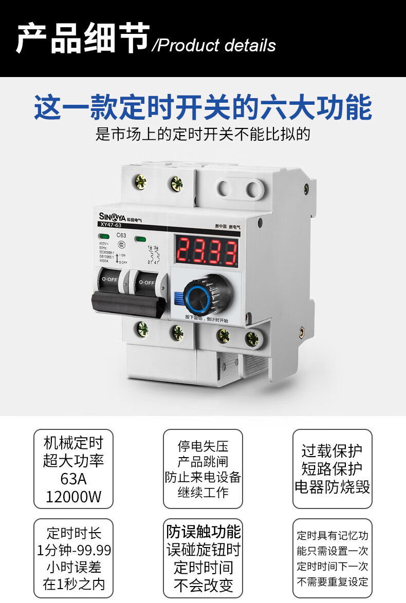 Xiya brand timing switch controller high power timer water pump mechanical timing automatic switch leakage circuit breaker single phase