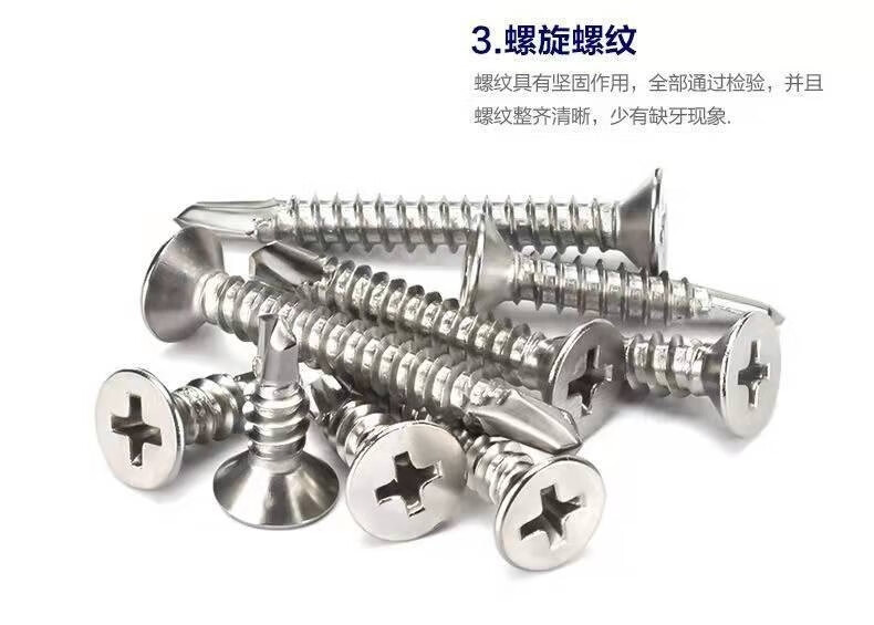 Meikejie 410 stainless steel screw flat head drill tail countersunk head dovetail flat head self-tapping screw door and window aluminum special 4.2/4.8 general model 4.8-70 (boxed 200 pieces)