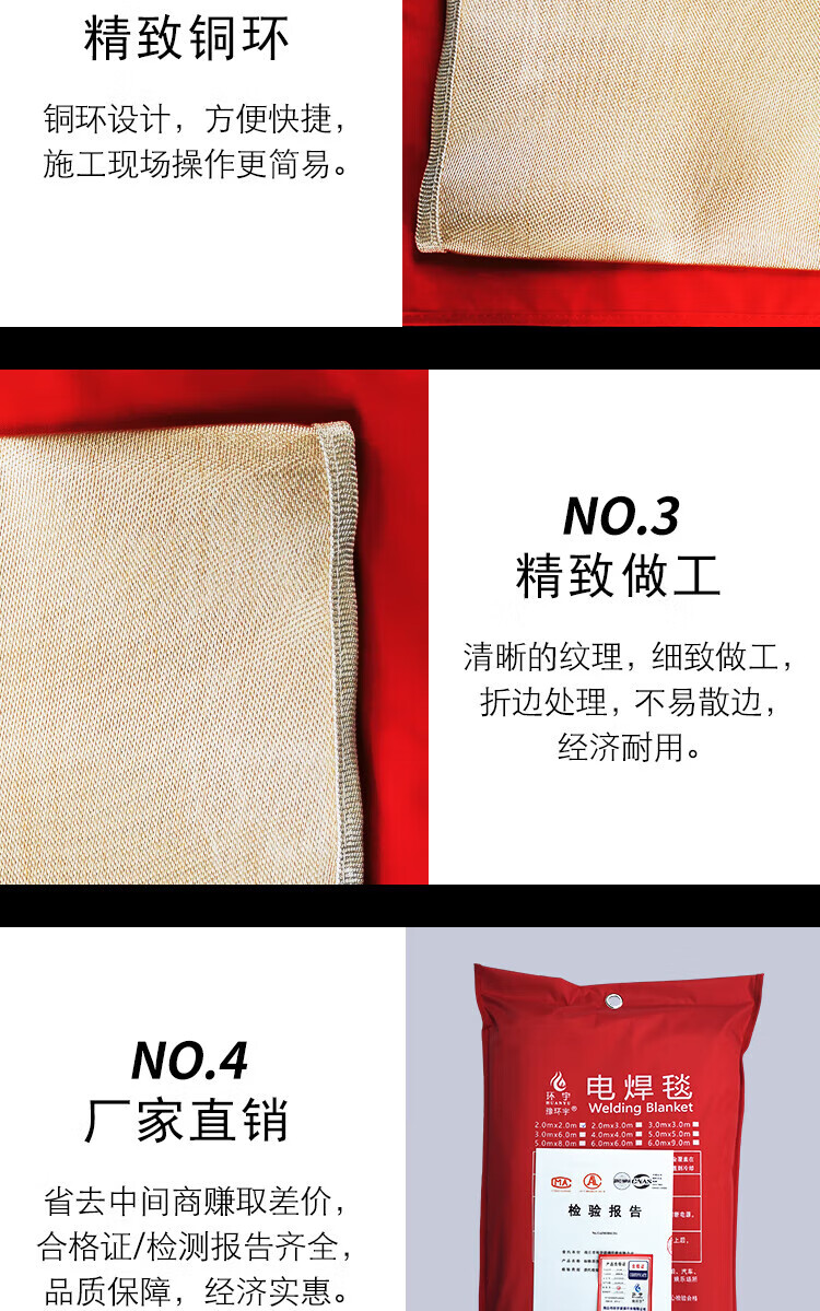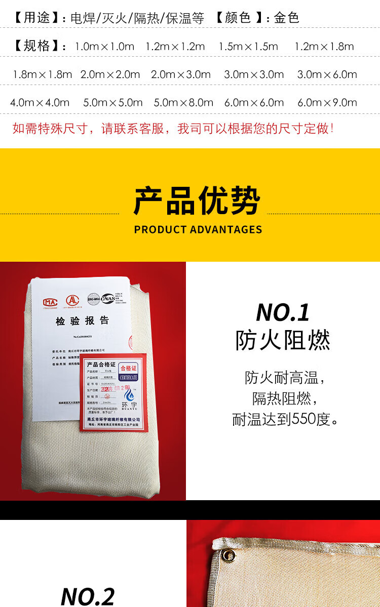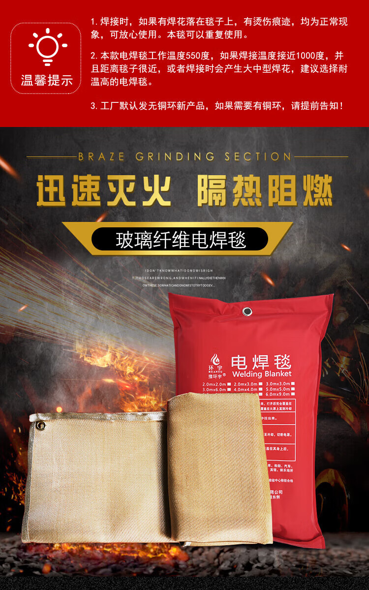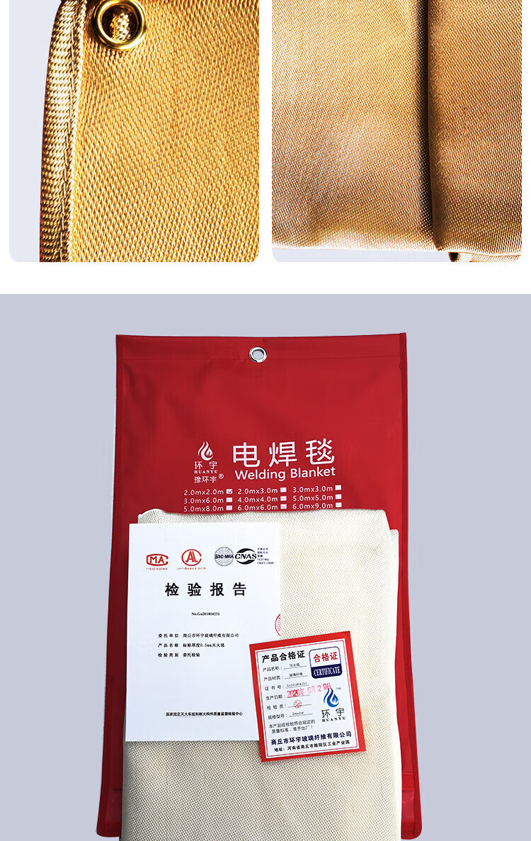 Welding blanket Huanyu welding blanket fire certified glass fiber safety and high temperature resistance for whole family fire extinguishing gold thickened 1mm*1.2*2.0 meters