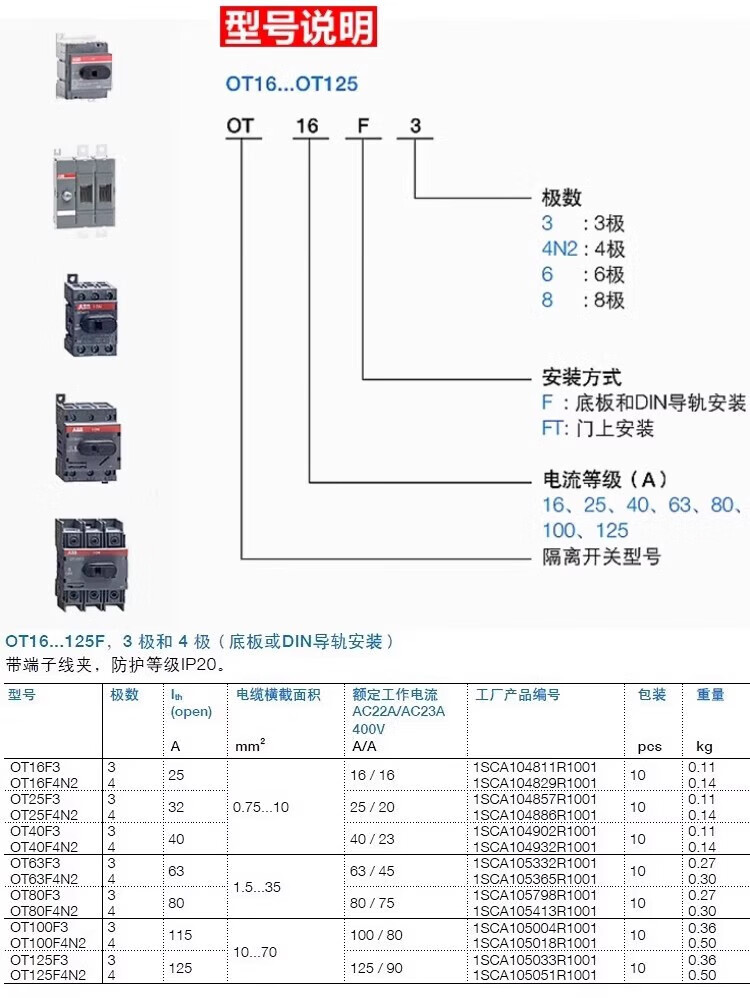 ABB isolation switch OT40F4N1/OT80F4N1/OT16/OT63/OT100/OT125F4N1 OT125F4N1