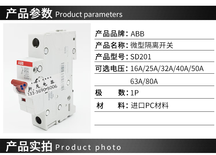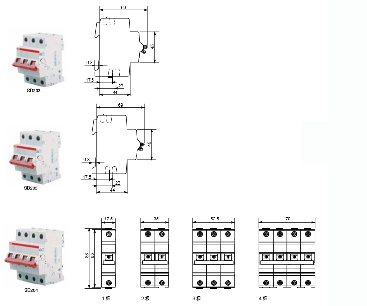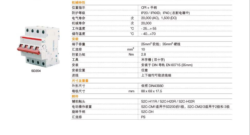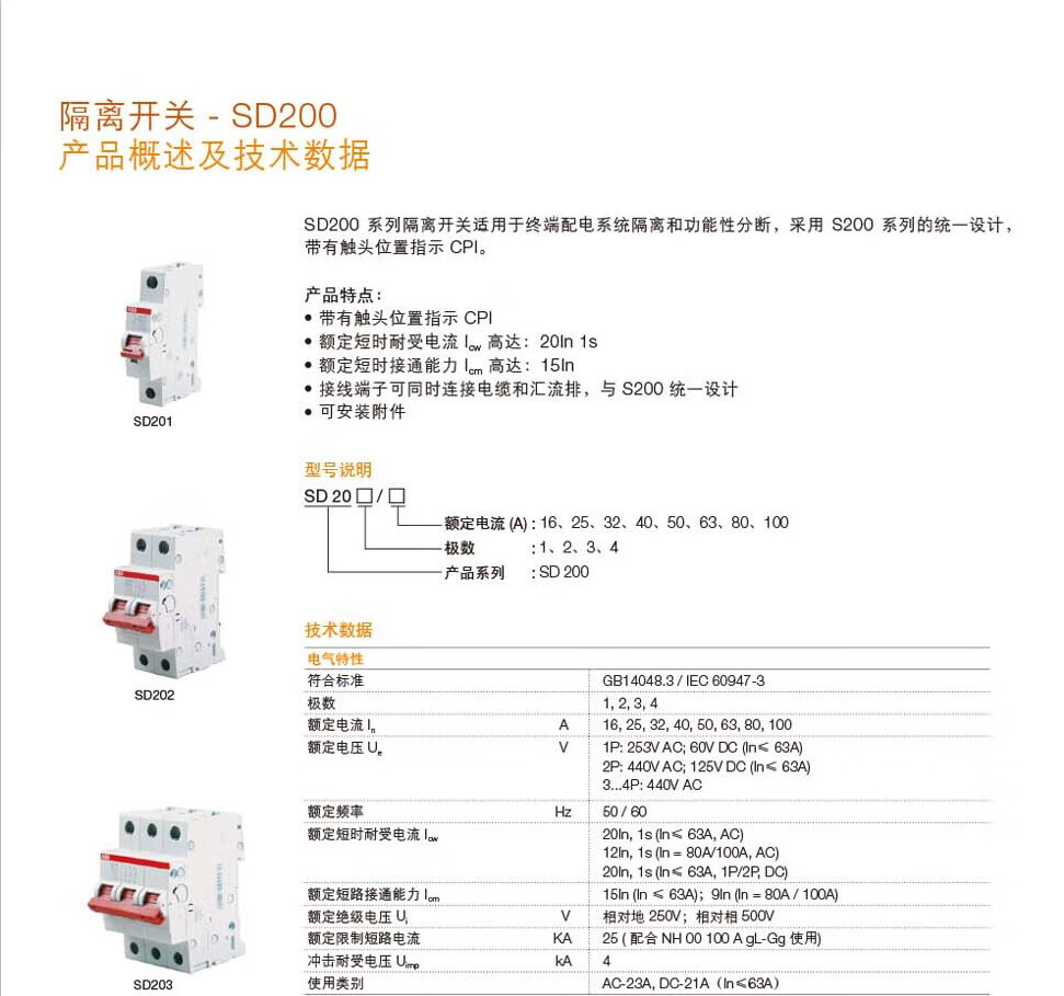 ABB circuit breaker isolation switch 1P2P3P4P SD201/202/203-16-25-32-40-63-10 4P(SD204) 100A