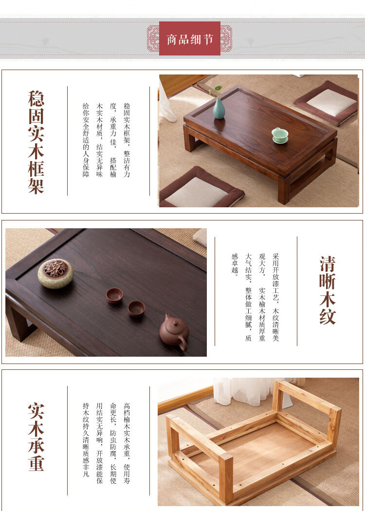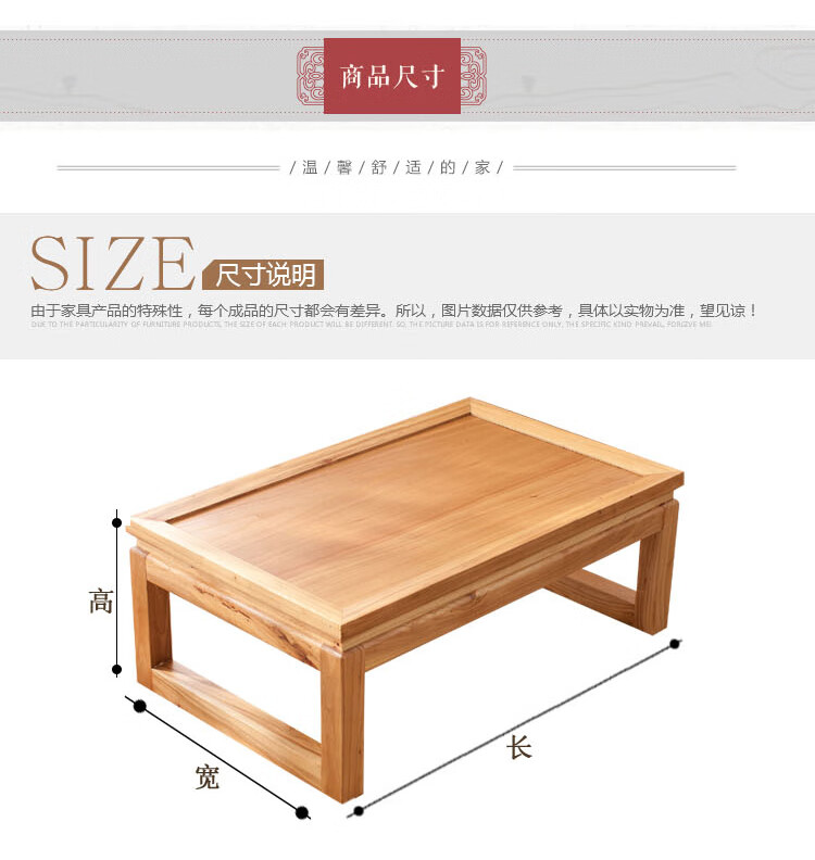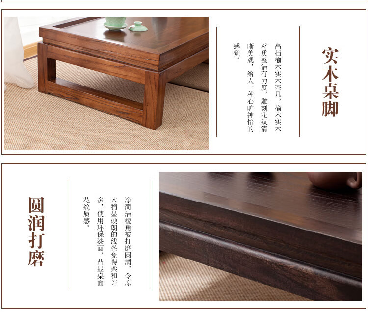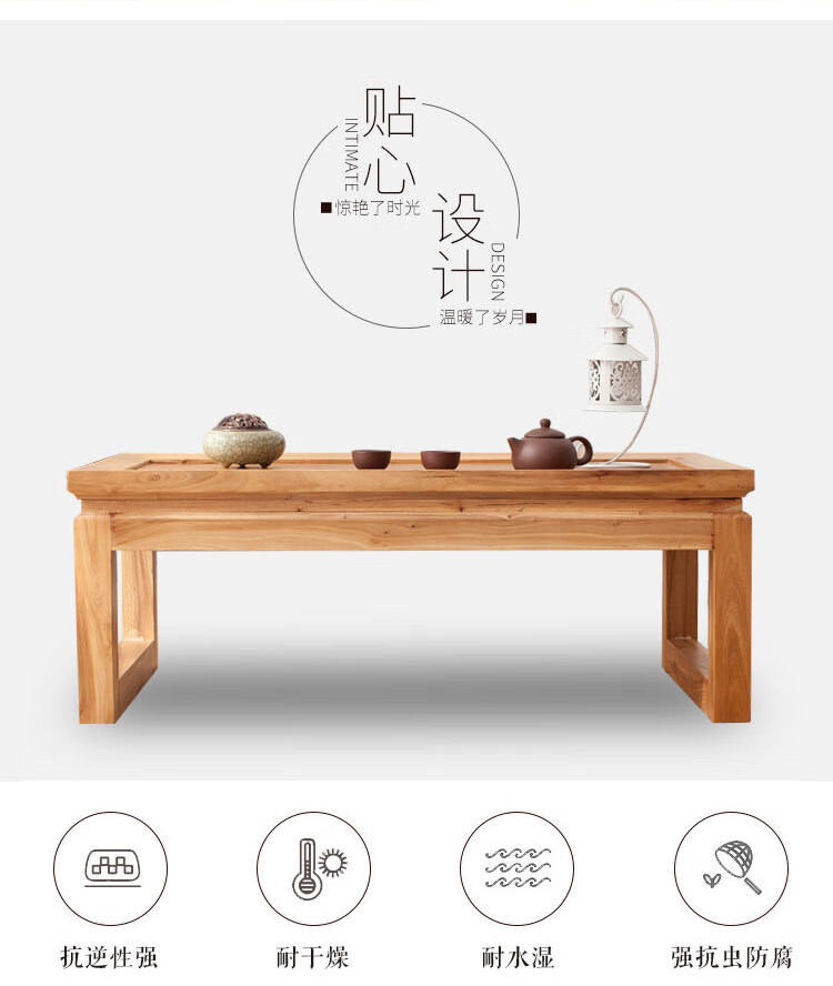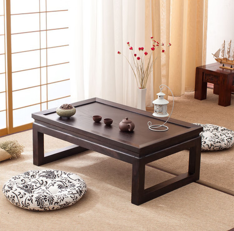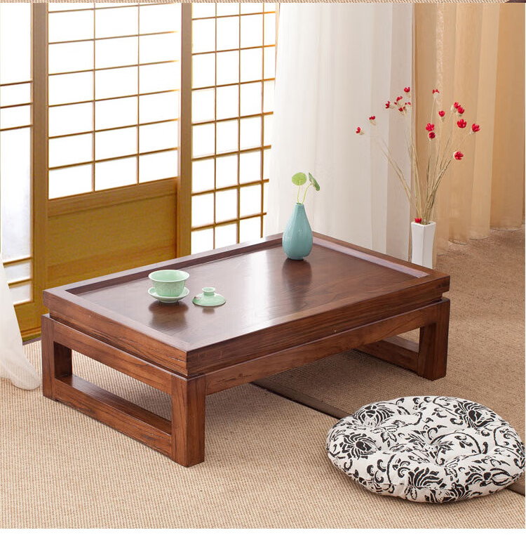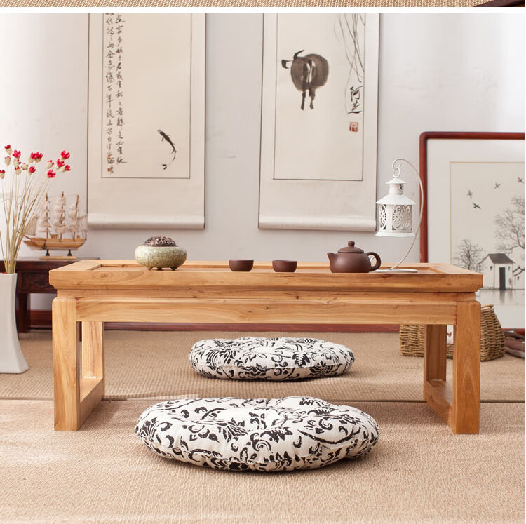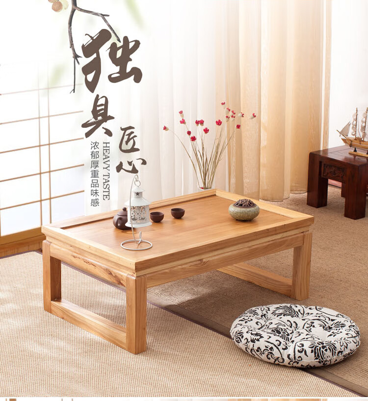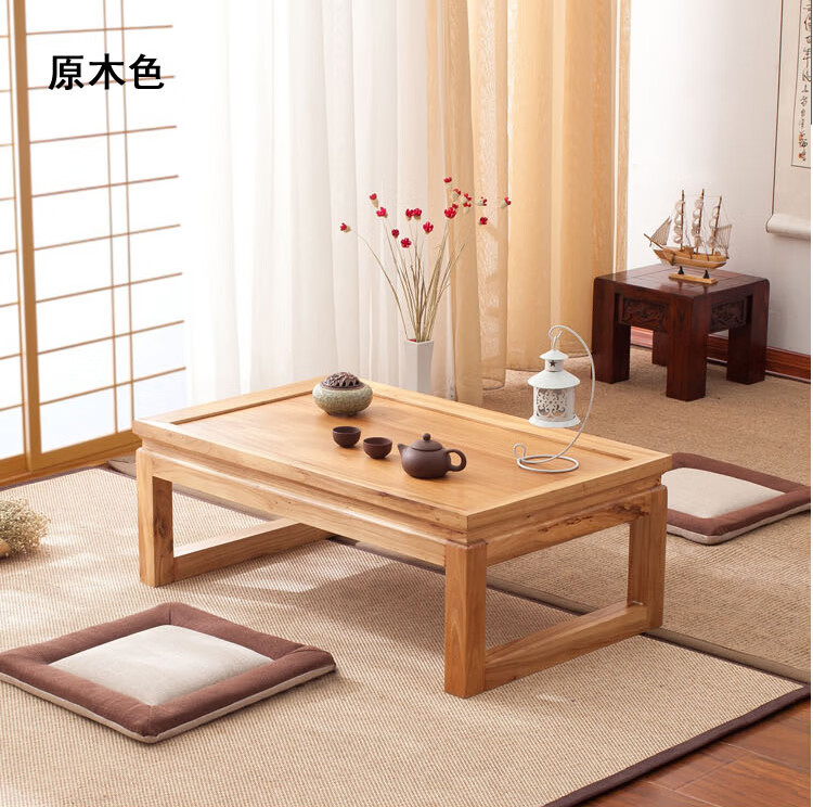Shantou Lincun Japanese-style small tea table, Zen modern and simple solid wood kang table, bay window table, window sill low table, customized size, complete decoration