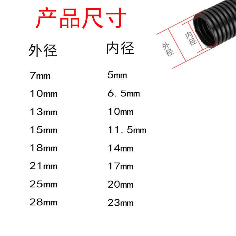 Vinoa PE corrugated pipe air conditioning outlet protective sleeve engine ultra-fine casing automotive threaded pipe protective pipe opening 7mm 1 meter