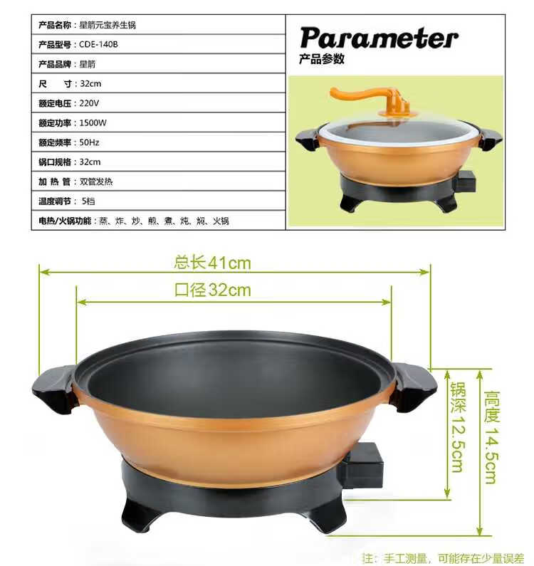 Star Arrow LXH multifunctional electric hot pot rice porridge pot non-stick pot smokeless pot round electric wok steaming integrated pot 32 32 inches