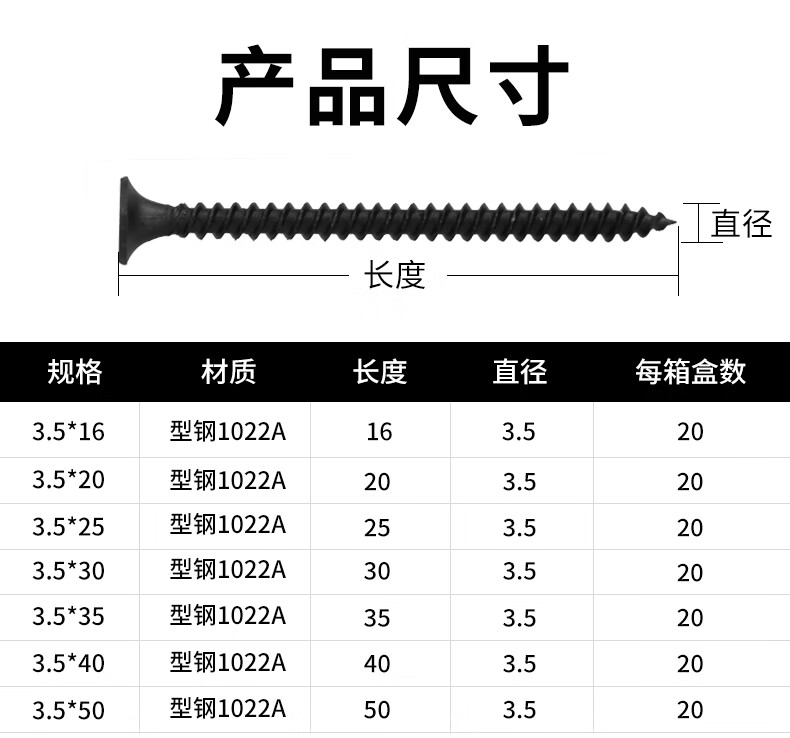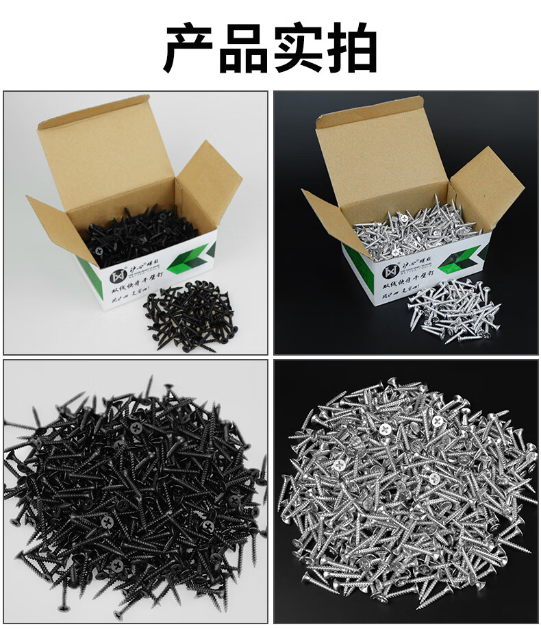 Bingyu full box high-strength black dry wall screws self-tapping screws cross flat head woodworking gypsum board screws M3.5 M3.5*16 (20 boxes/box)
