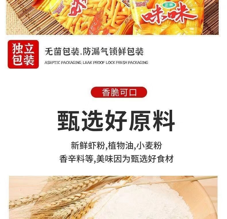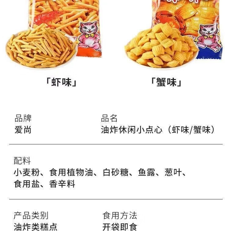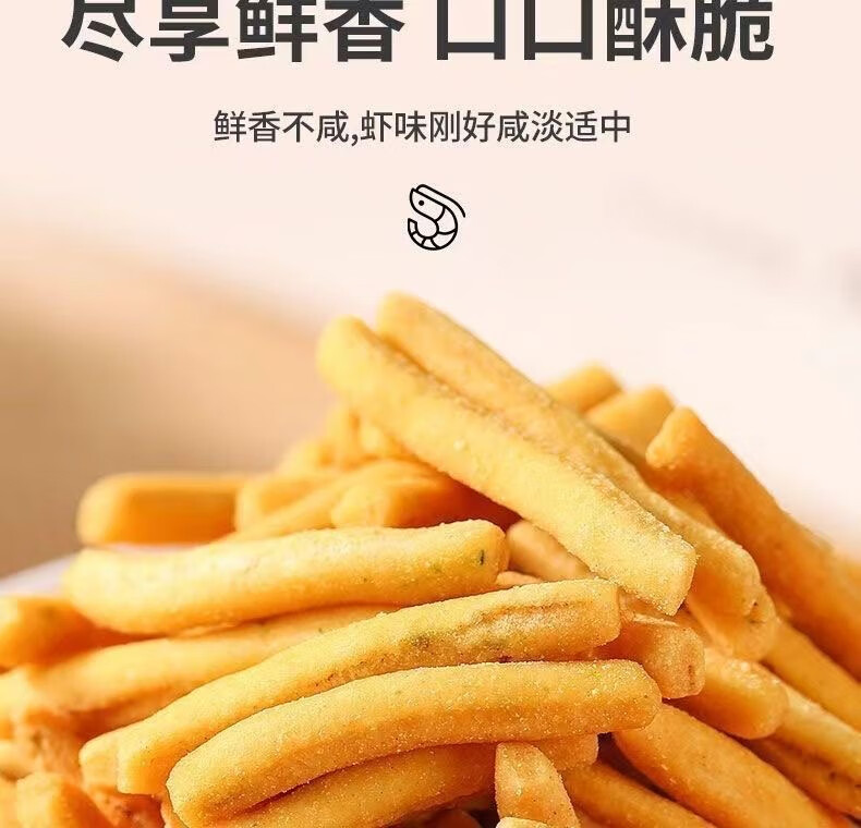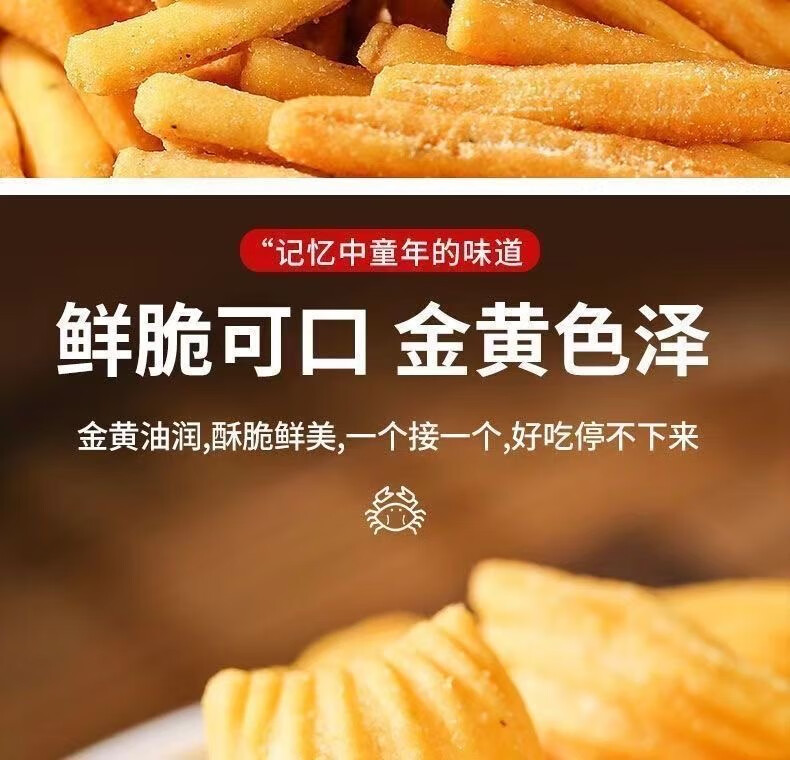 JD Logistics Mimi Shrimp Crackers, Crab Flavored Puffed French Fries, Snacks for Children, 20 Packs, Easy to Carry