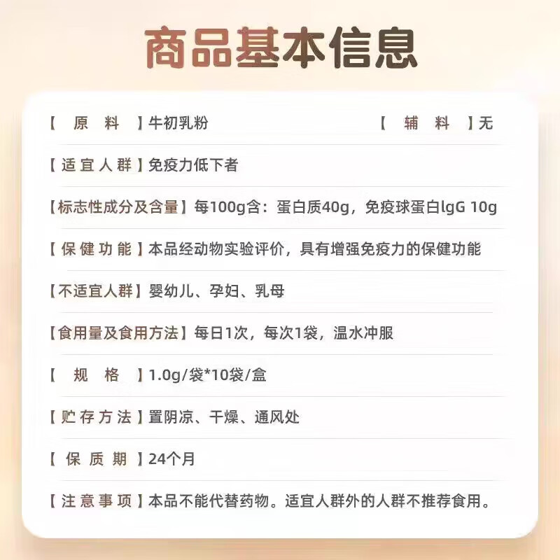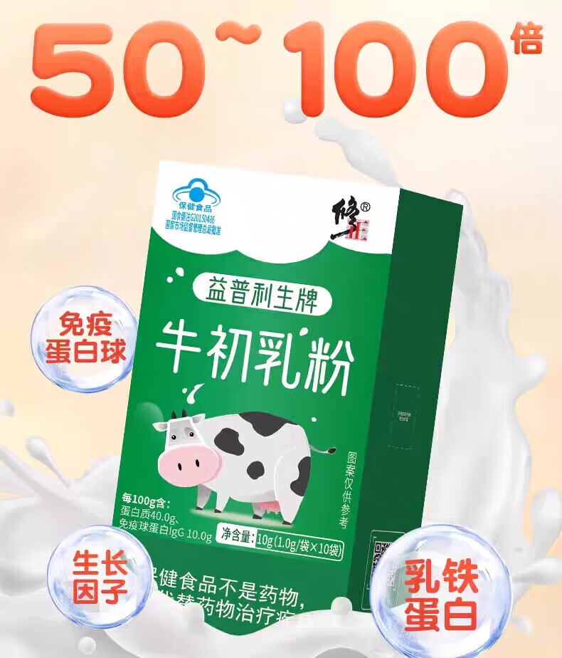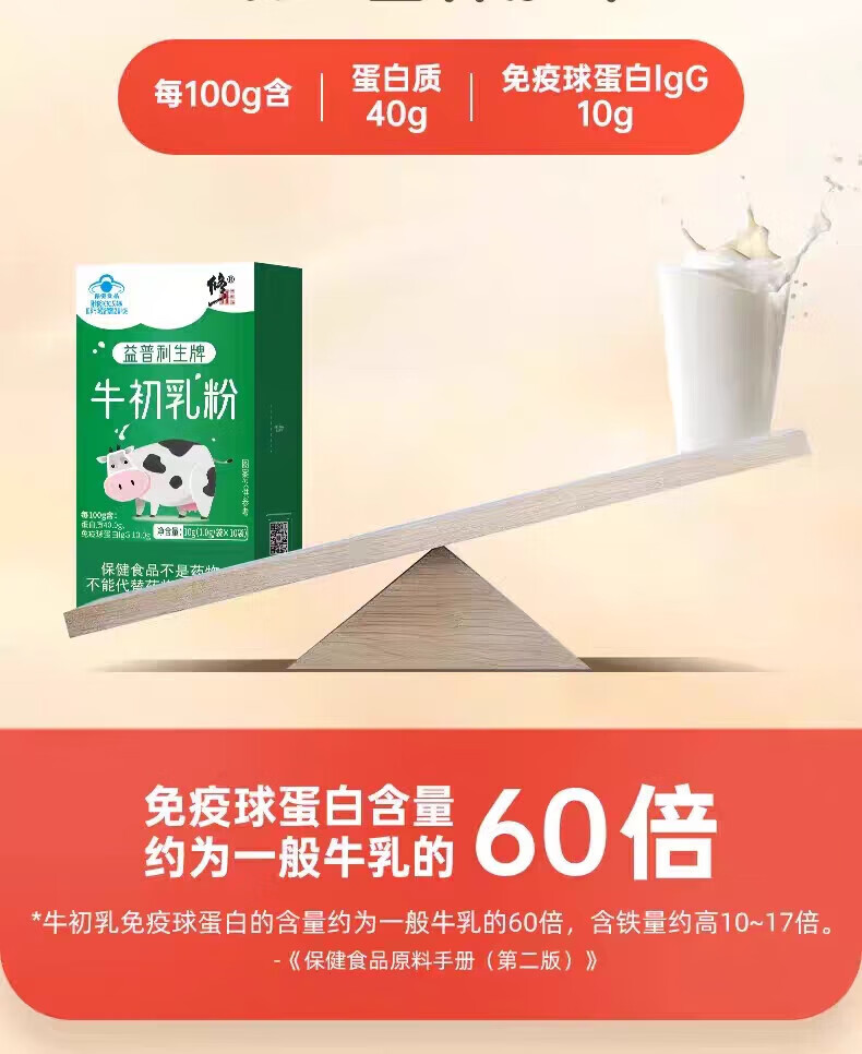 Corrected bovine colostrum powder with high content of immunoglobulin, blue hat certified quality, enhanced immunity, 1 box