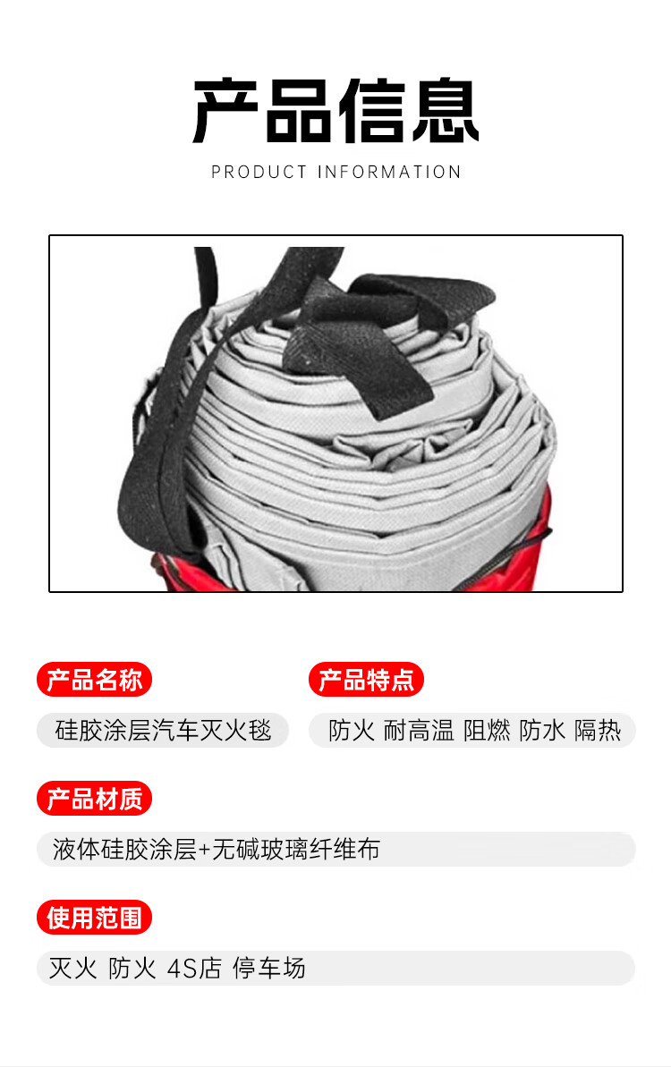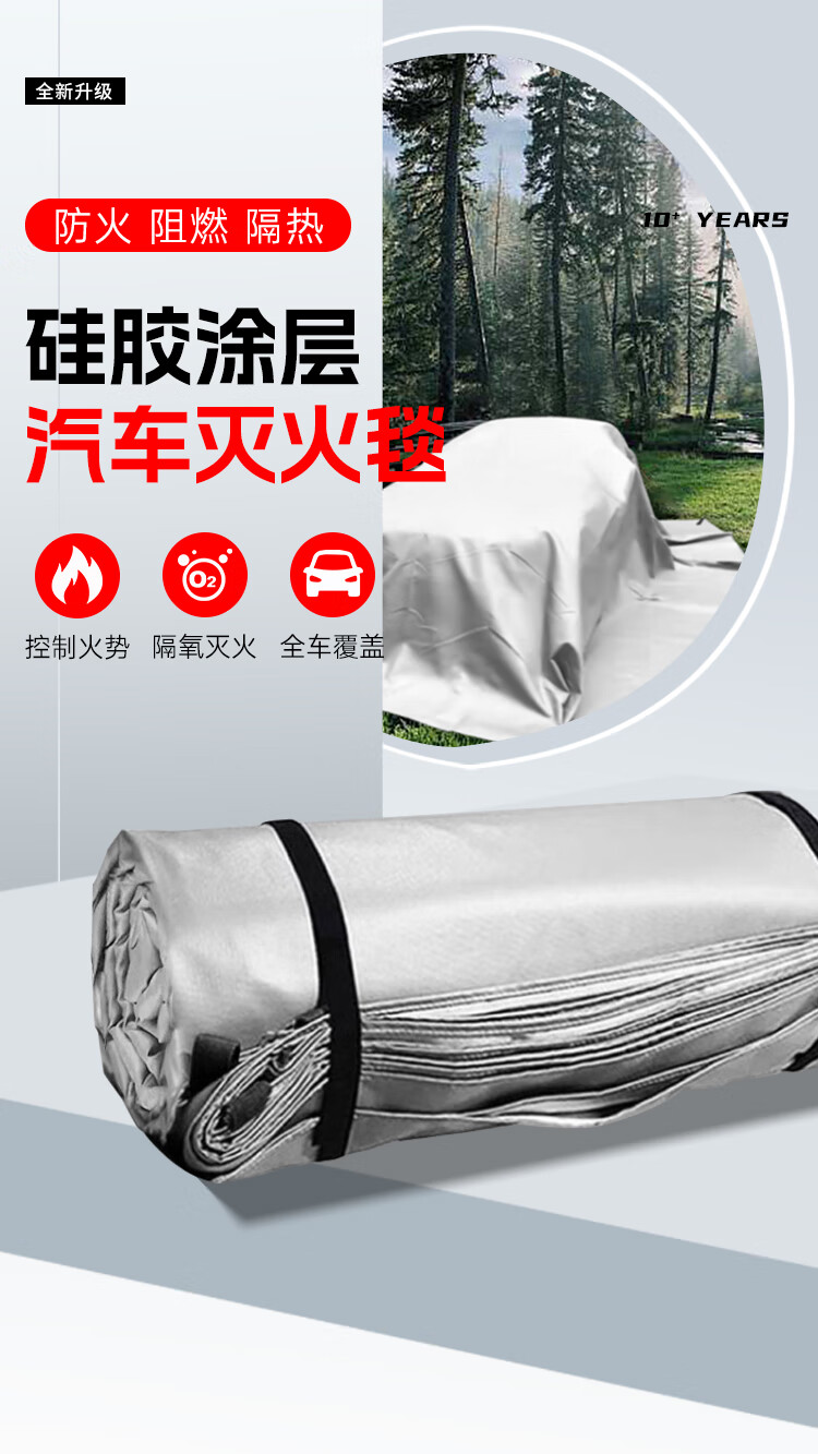 New energy fire-extinguishing blanket, fire-fighting fire-retardant cloth, silicone glass fiber, high temperature resistance, rechargeable EMU fire blanket, 6m*6m, tricycle fire-extinguishing blanket, double-sided silicone-no thorns