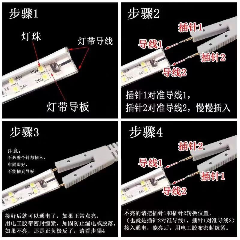 LED two-pin lamp strip plug connector 220V high-power transformer solderless connector driver light strip accessories high-power single package not limited by pin distance universal plug lamp strip 1011
