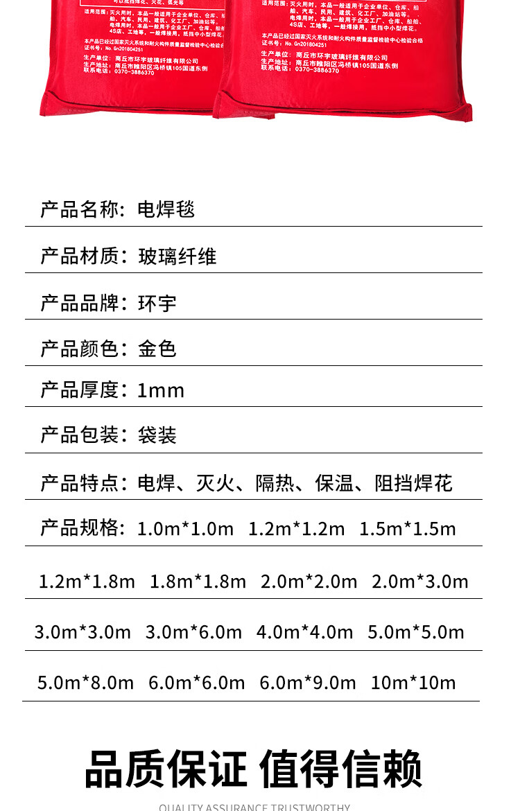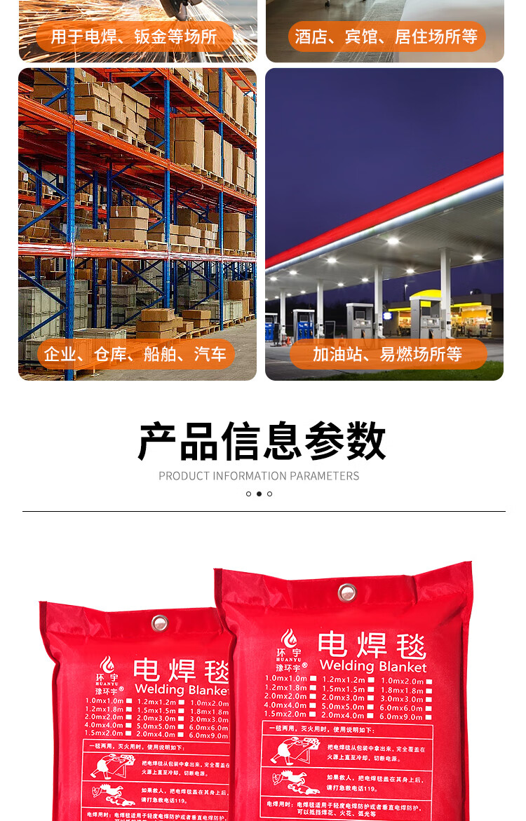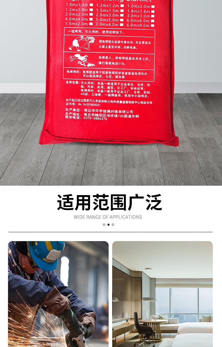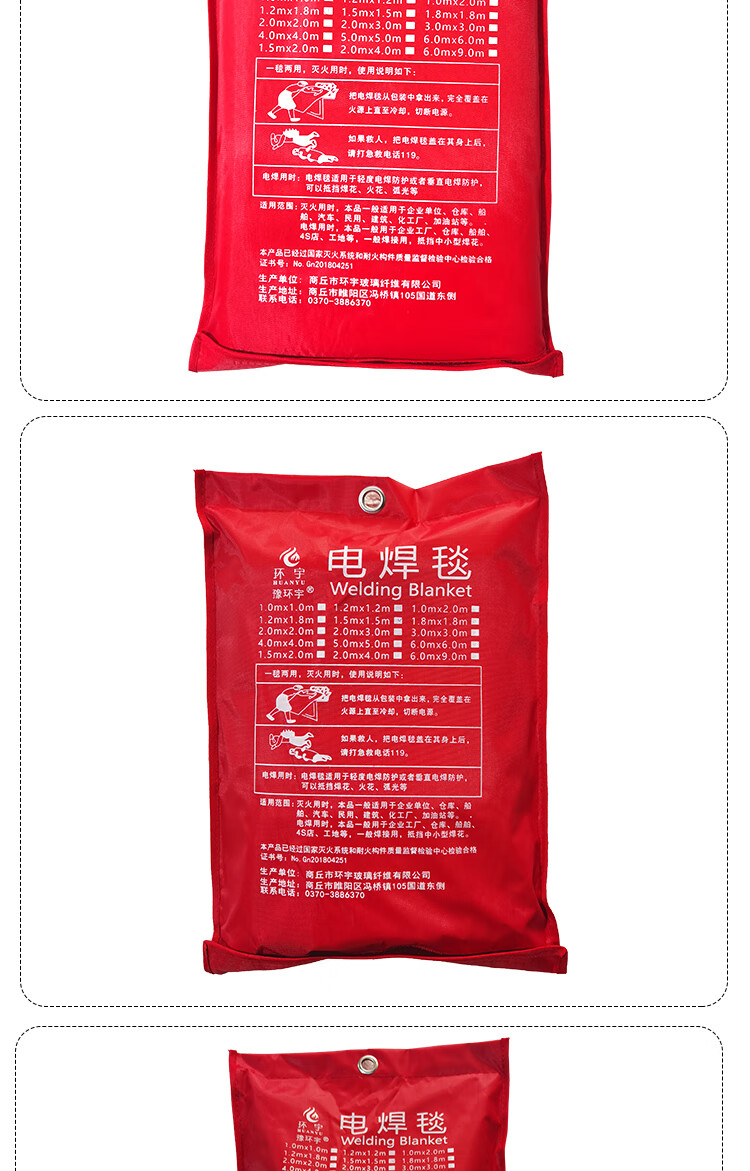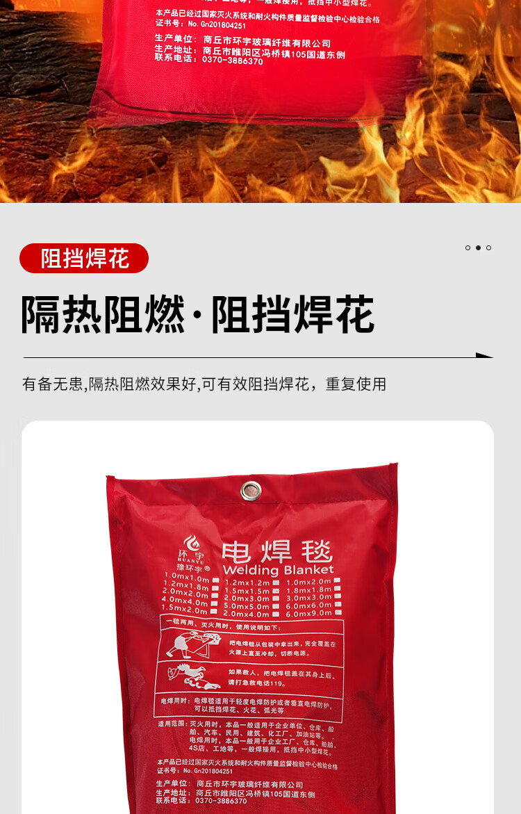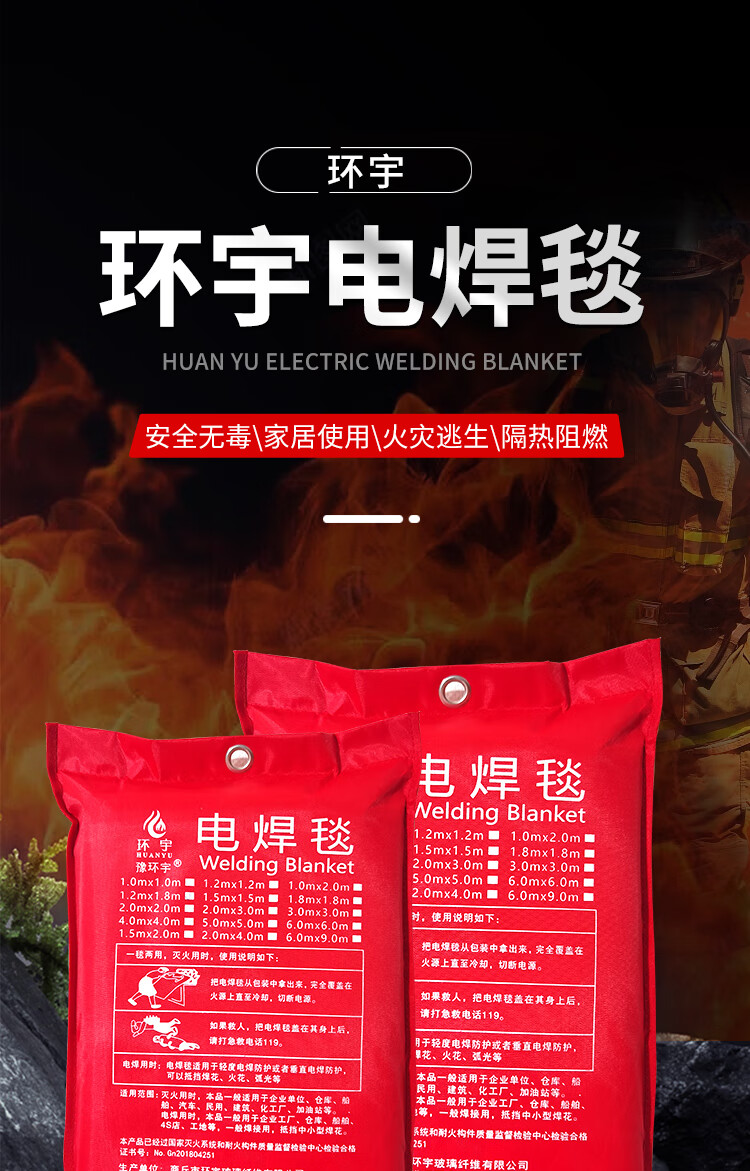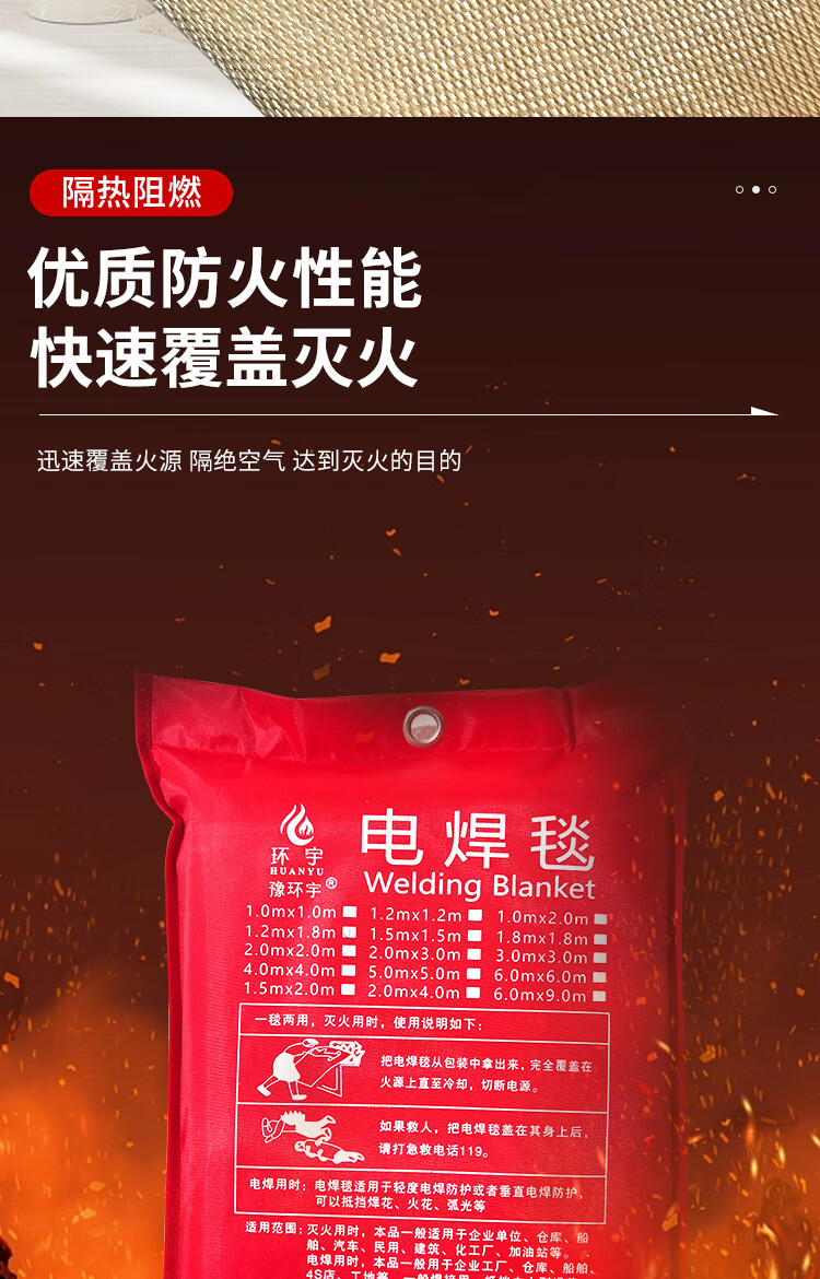 Welding blanket, fire blanket for welding to block welding sparks, extinguish fire, flame retardant fire certification, shopping mall, factory warehouse 1m*2m_bag