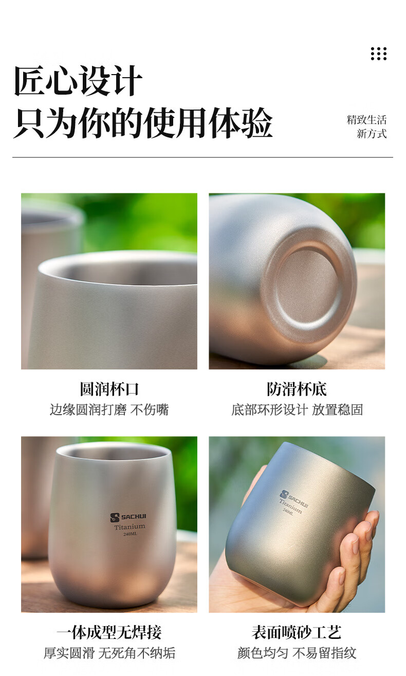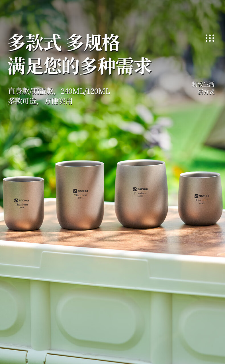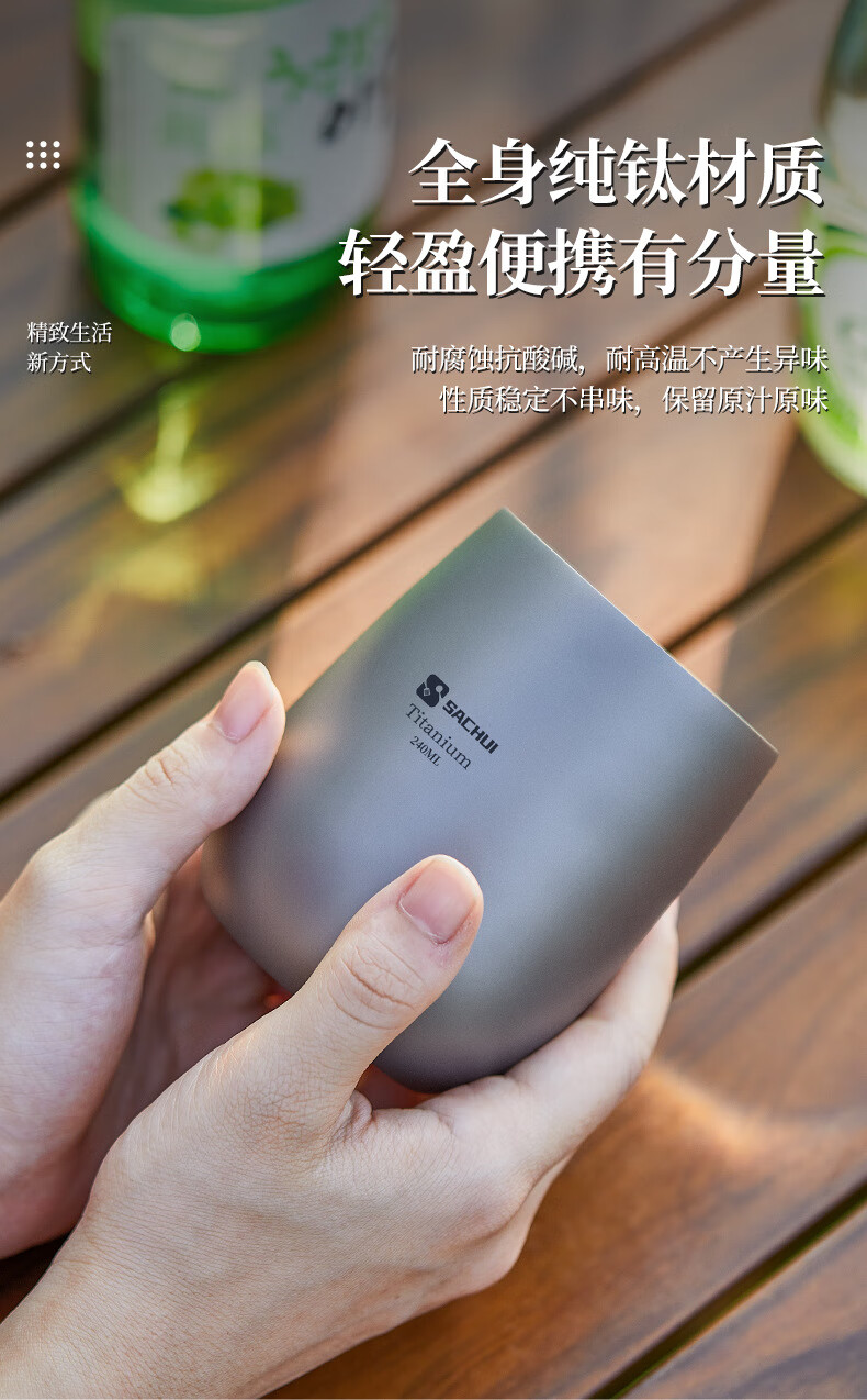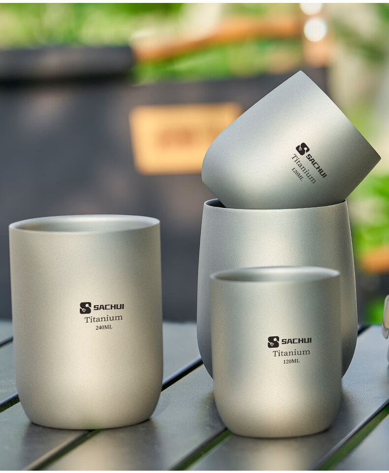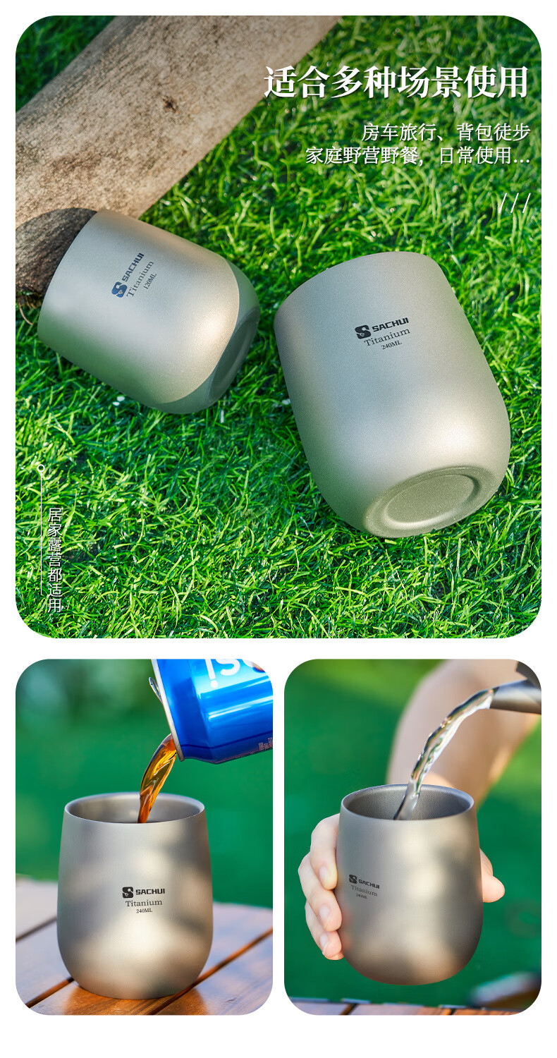 SACHUI double-layer titanium cup outdoor picnic tableware handleless portable camping light pure titanium tea cup water cup office coffee cup 240ML pure titanium double-layer straight cup