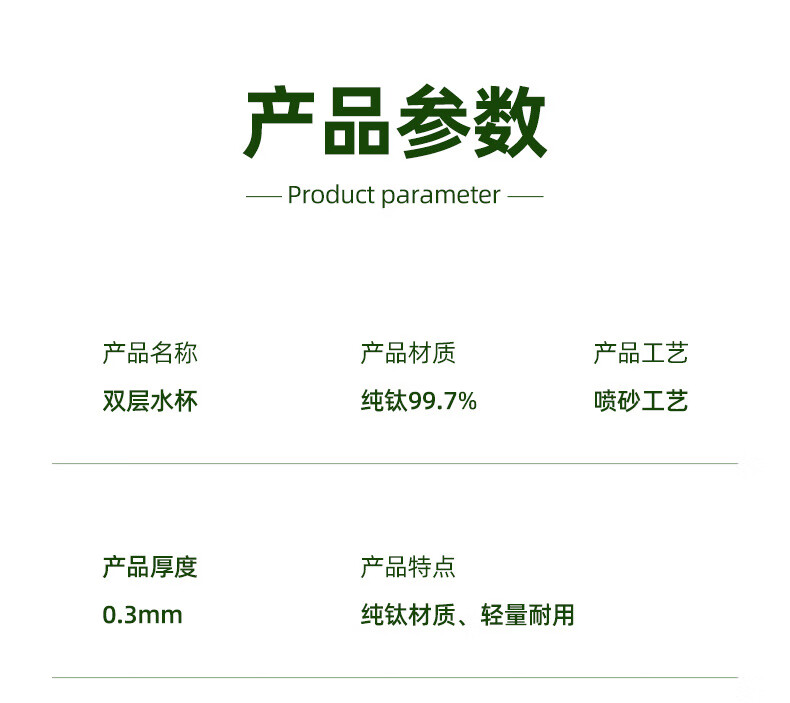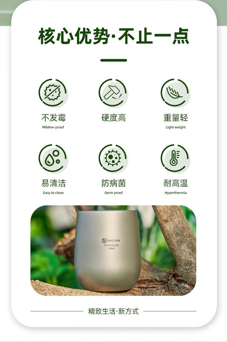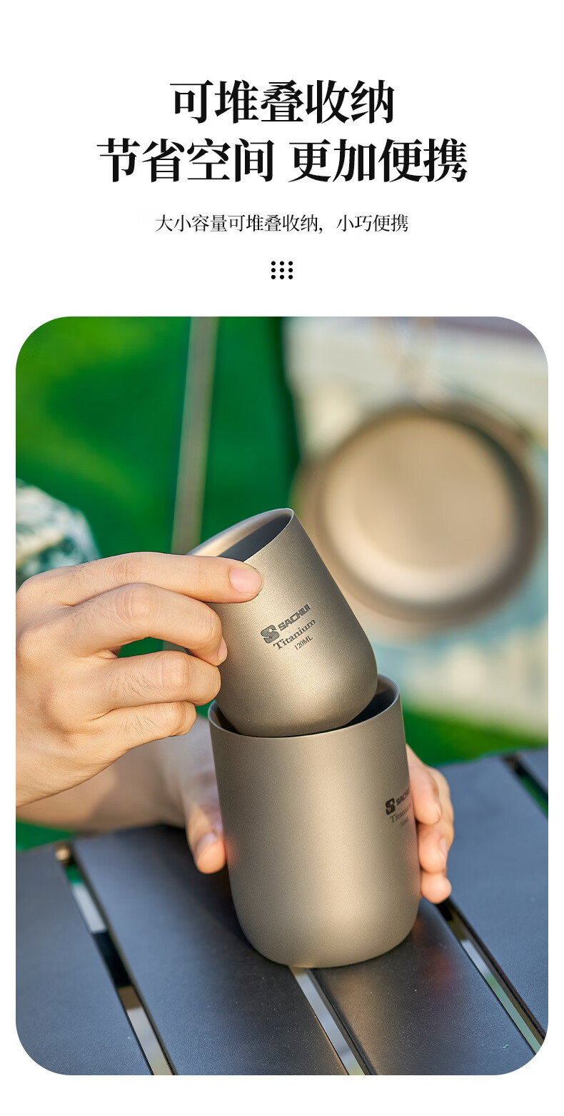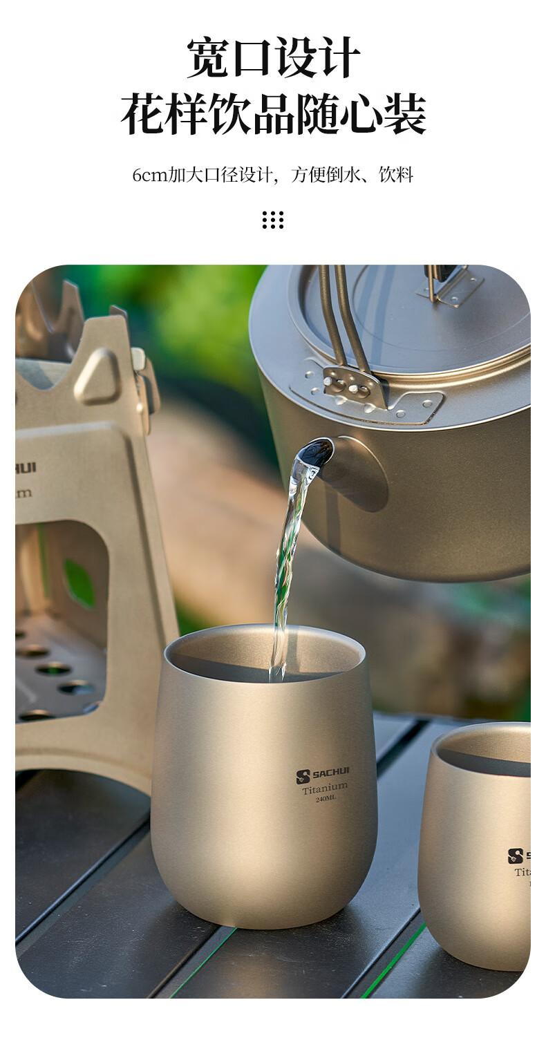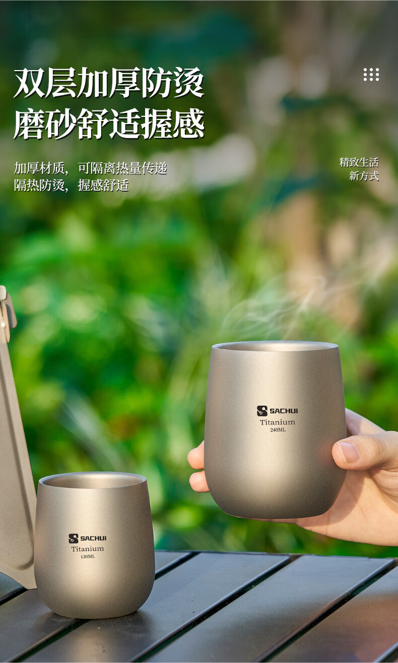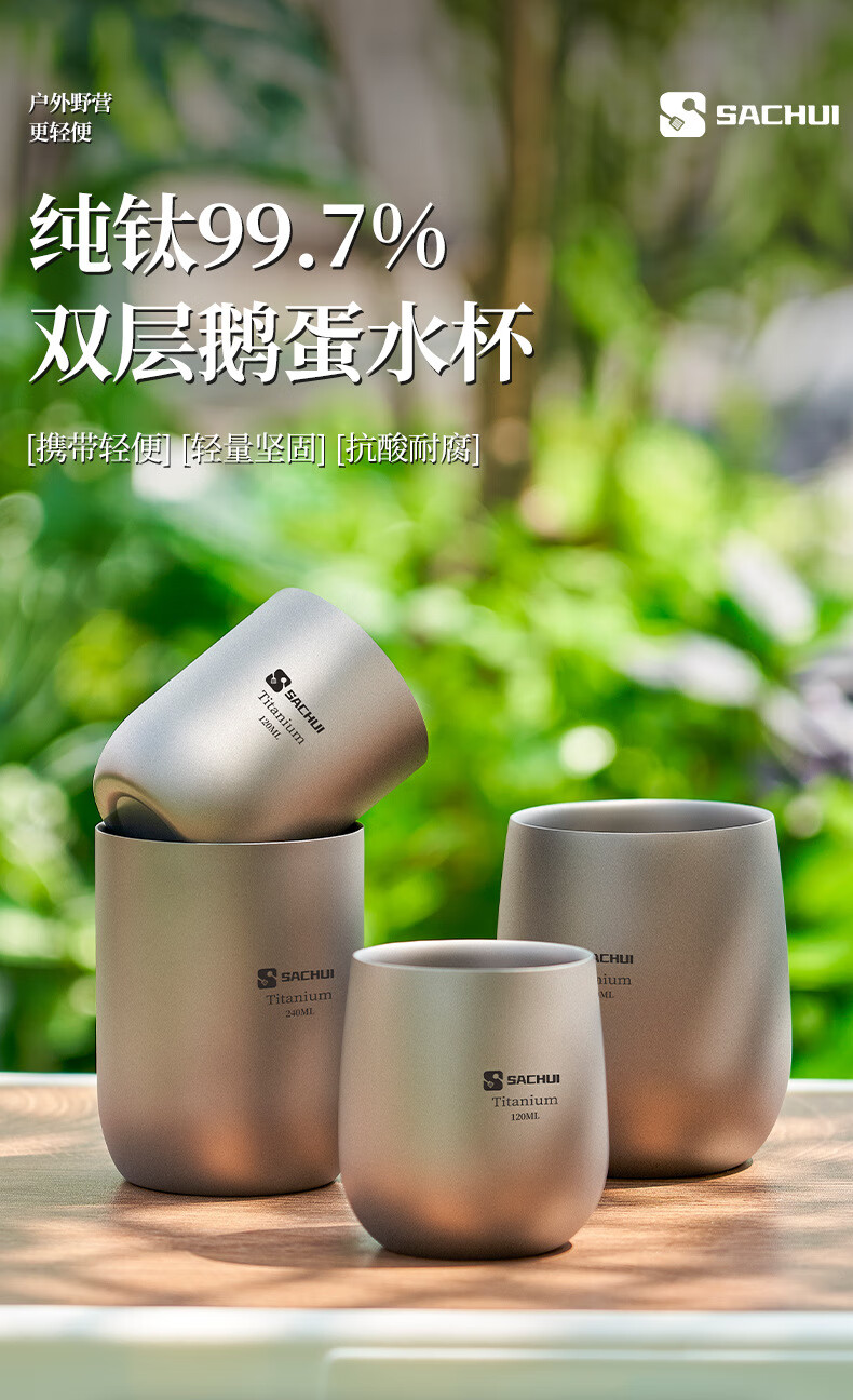 SACHUI double-layer titanium cup outdoor picnic tableware handleless portable camping light pure titanium tea cup water cup office coffee cup 240ML pure titanium double-layer straight cup