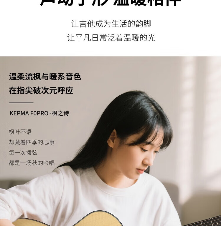 KEPMA (KEPMA) KEPMA F0PRO Maple Poetry guitar Kama surface veneer beginner advanced folk guitar with vibration F0pro-Maple Poetry wood color 41-inch acoustic