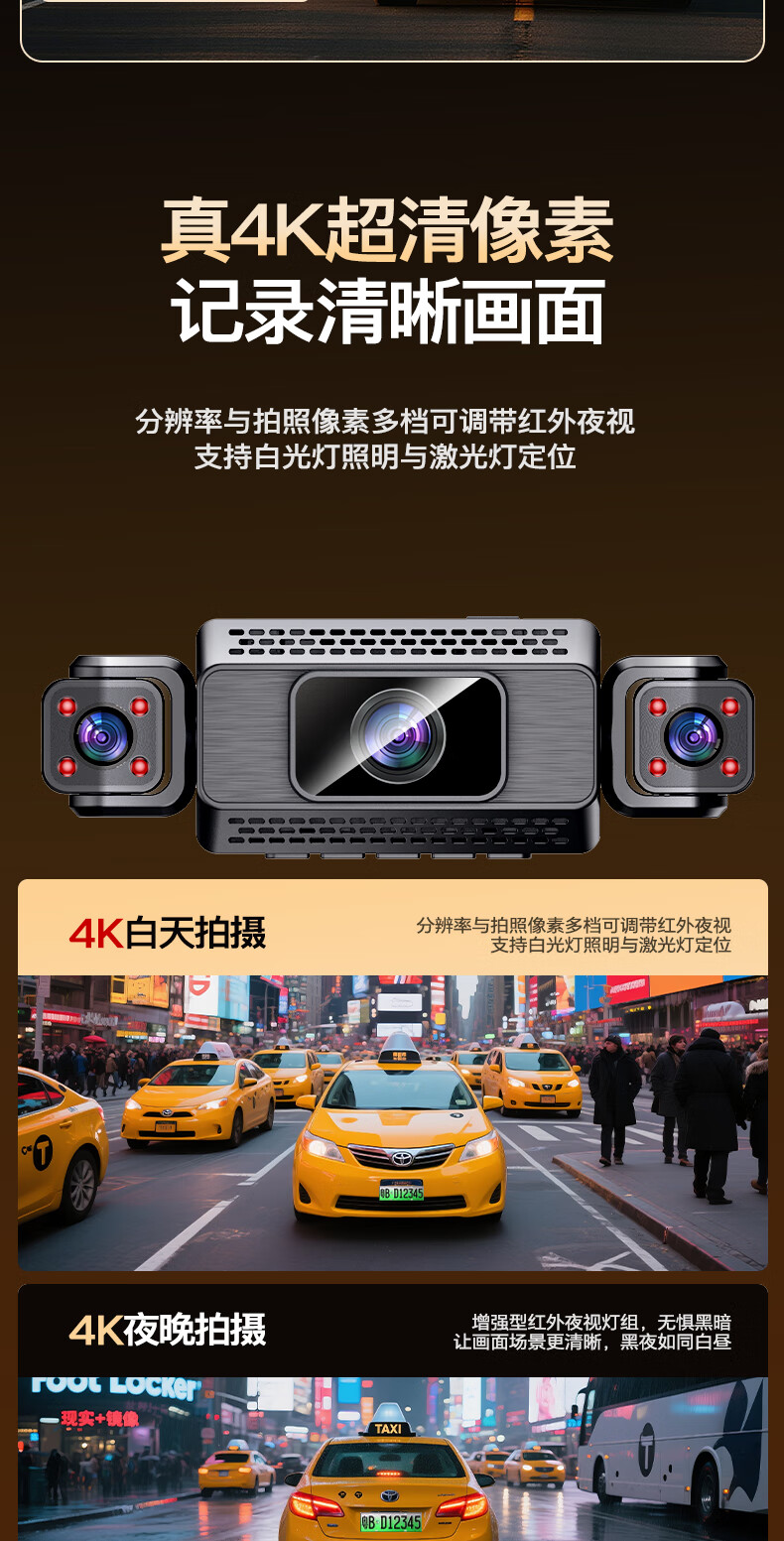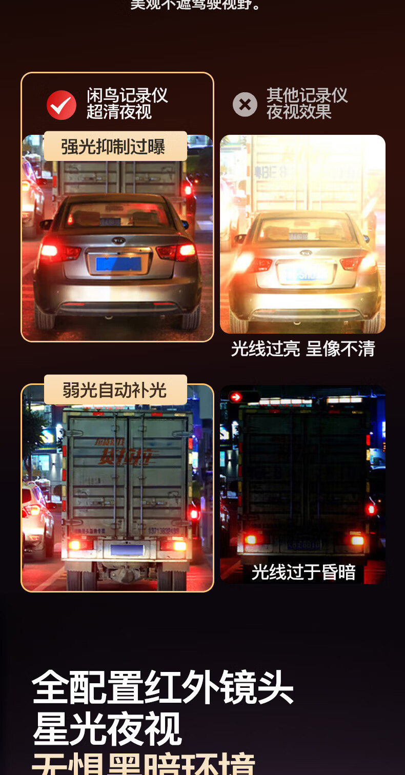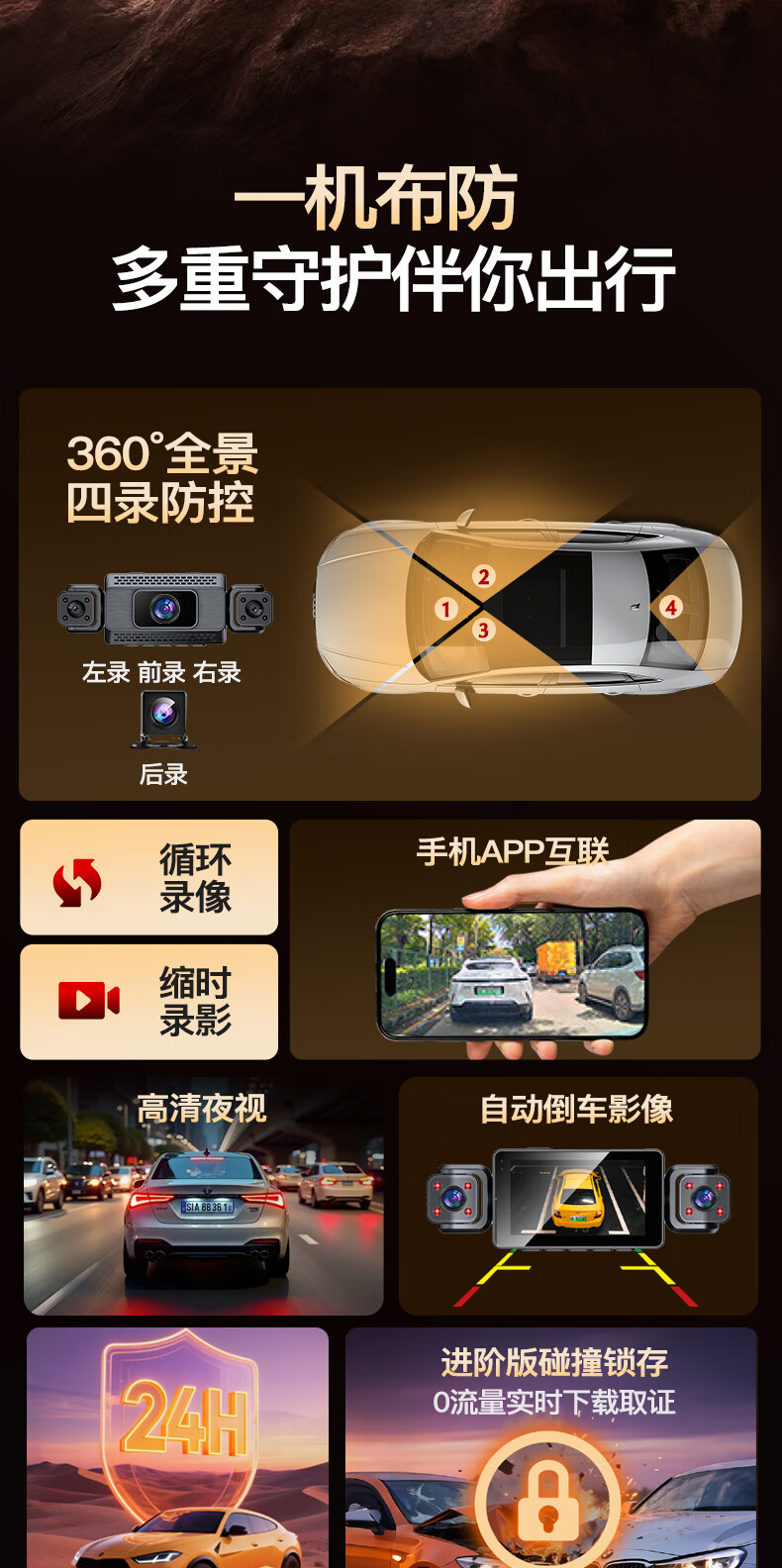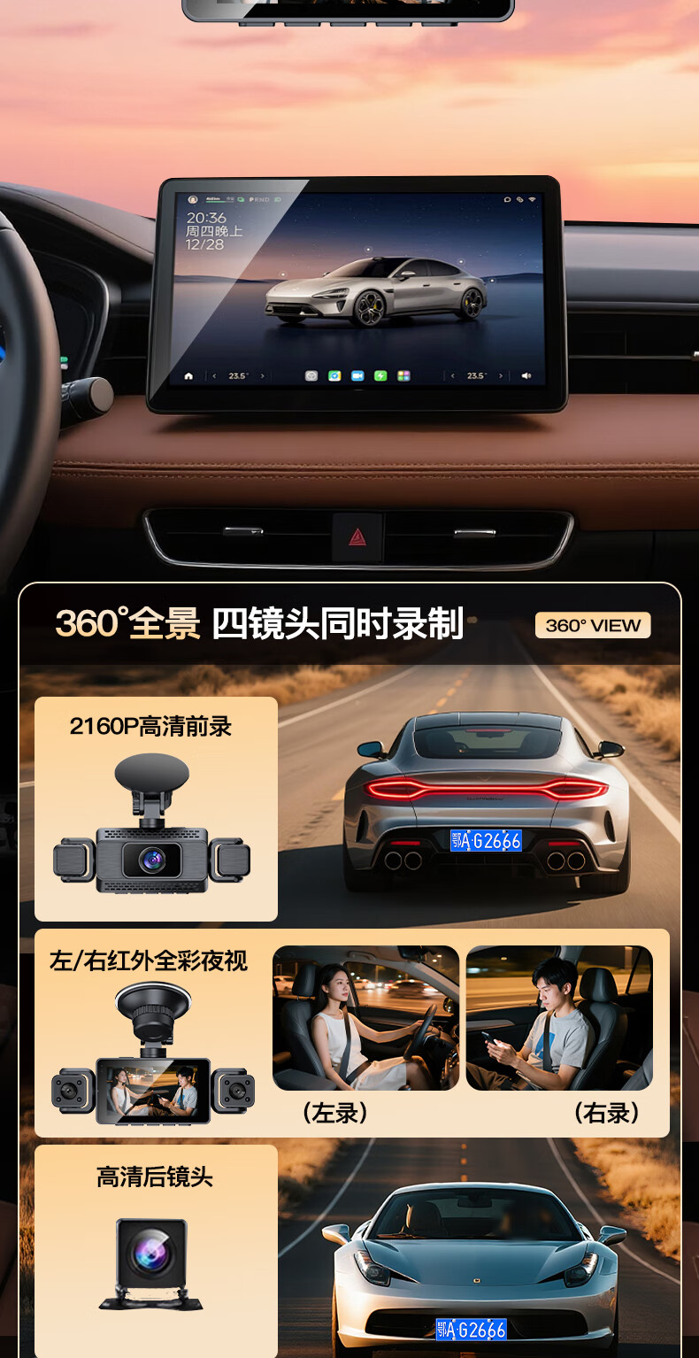XIANNIAO driving recorder ultra-high-definition 360-degree panoramic view without blind spots 24 hours 4k wire-free front and rear dual recording parking monitoring front and rear panoramic three lenses + WiFi interconnection + 64G card car-mounted sentry mode camera full vehicle coverage anti-collision and anti-scratch starlight night vision