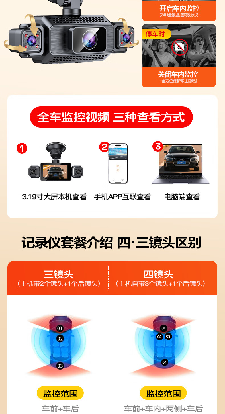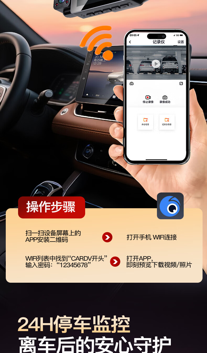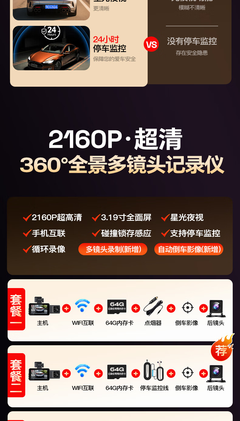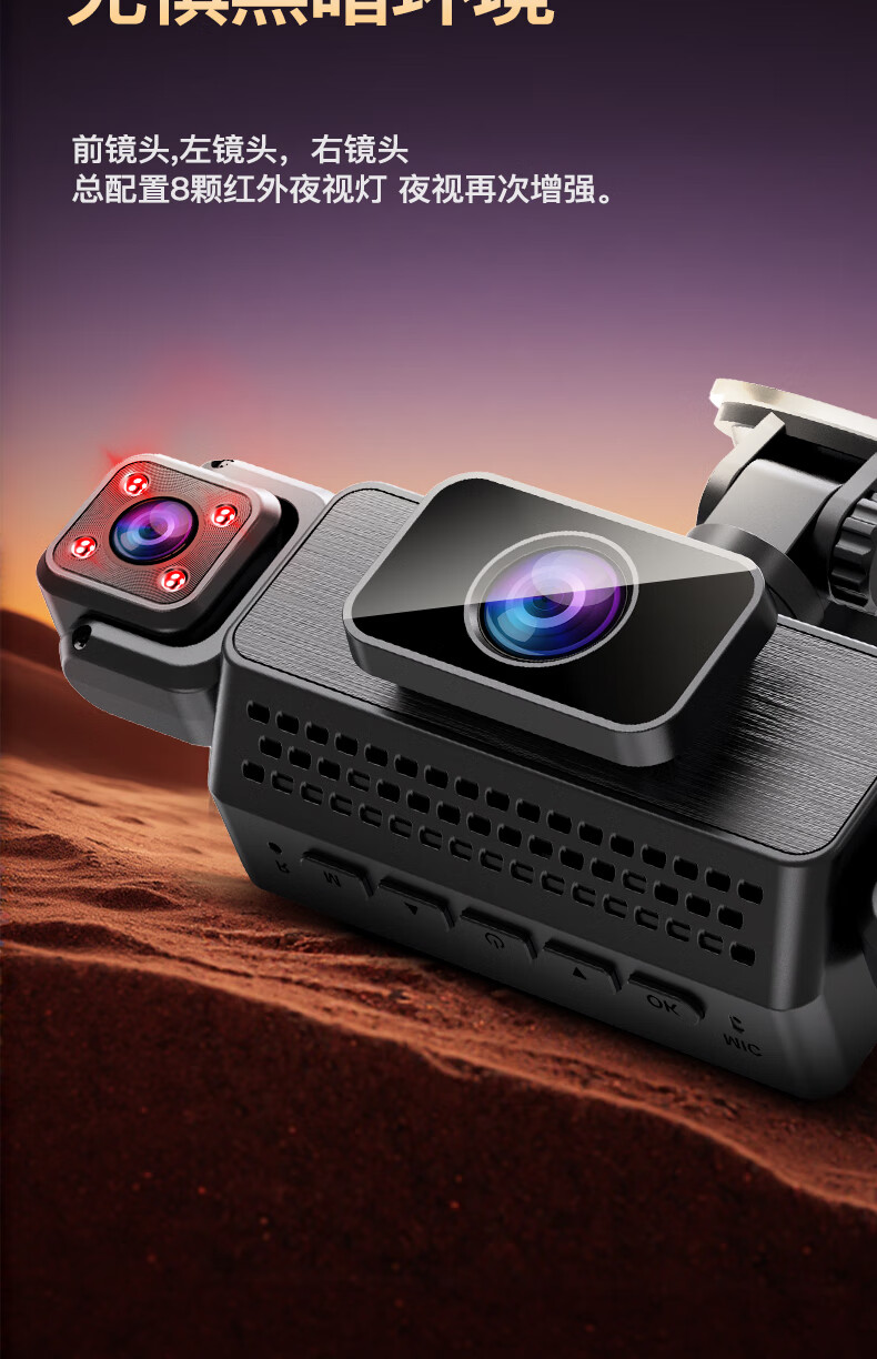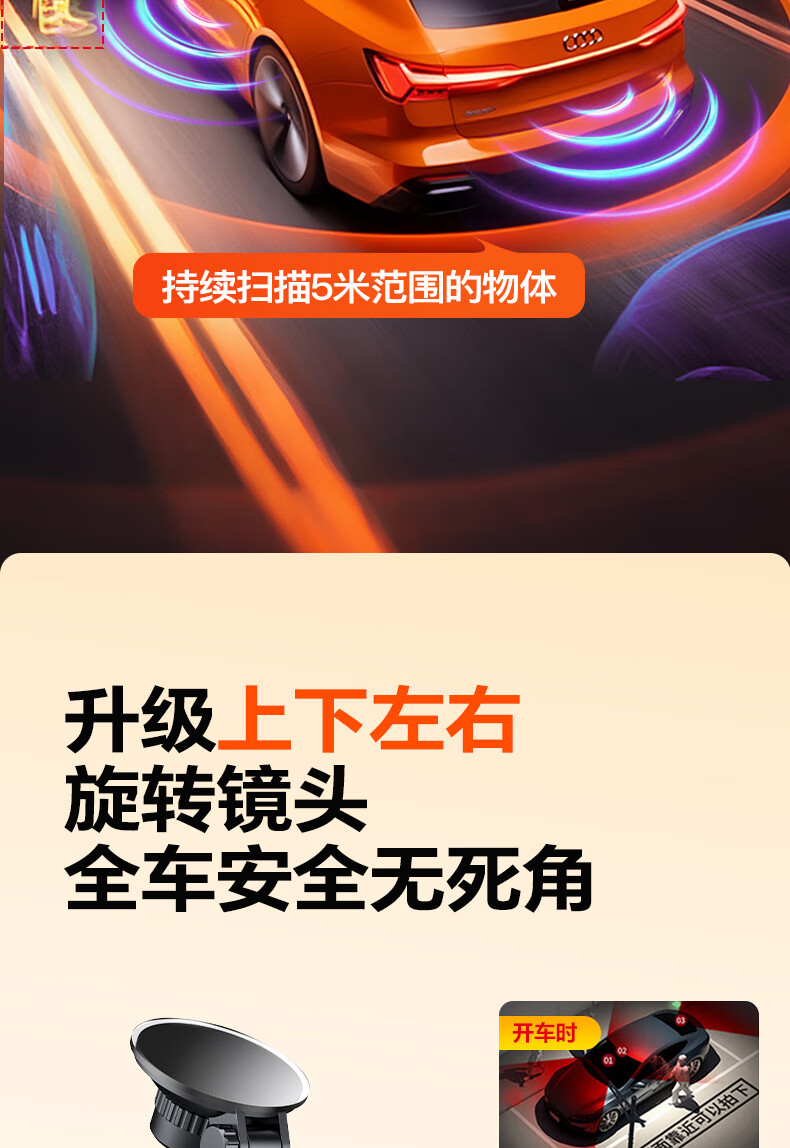 XIANNIAO driving recorder ultra-high-definition 360-degree panoramic view without blind spots 24 hours 4k wire-free front and rear dual recording parking monitoring front and rear panoramic three lenses + WiFi interconnection + 64G card car-mounted sentry mode camera full vehicle coverage anti-collision and anti-scratch starlight night vision