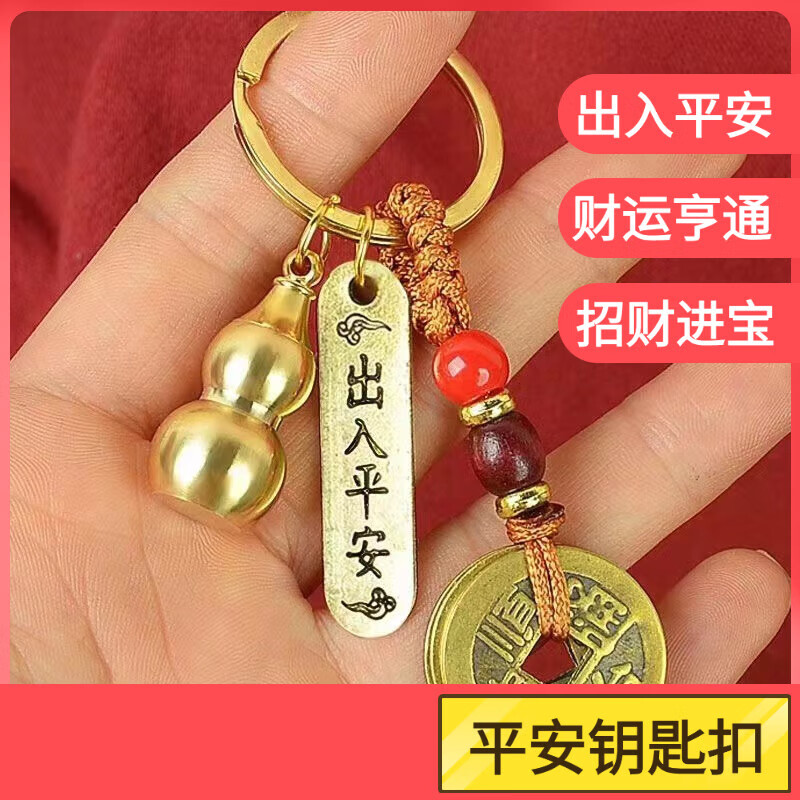 Imitation Brass Xiangyun Ping An Key Chain Pendant Jewelry Five Emperors Money + Ping An Brand + Gourd 1 set