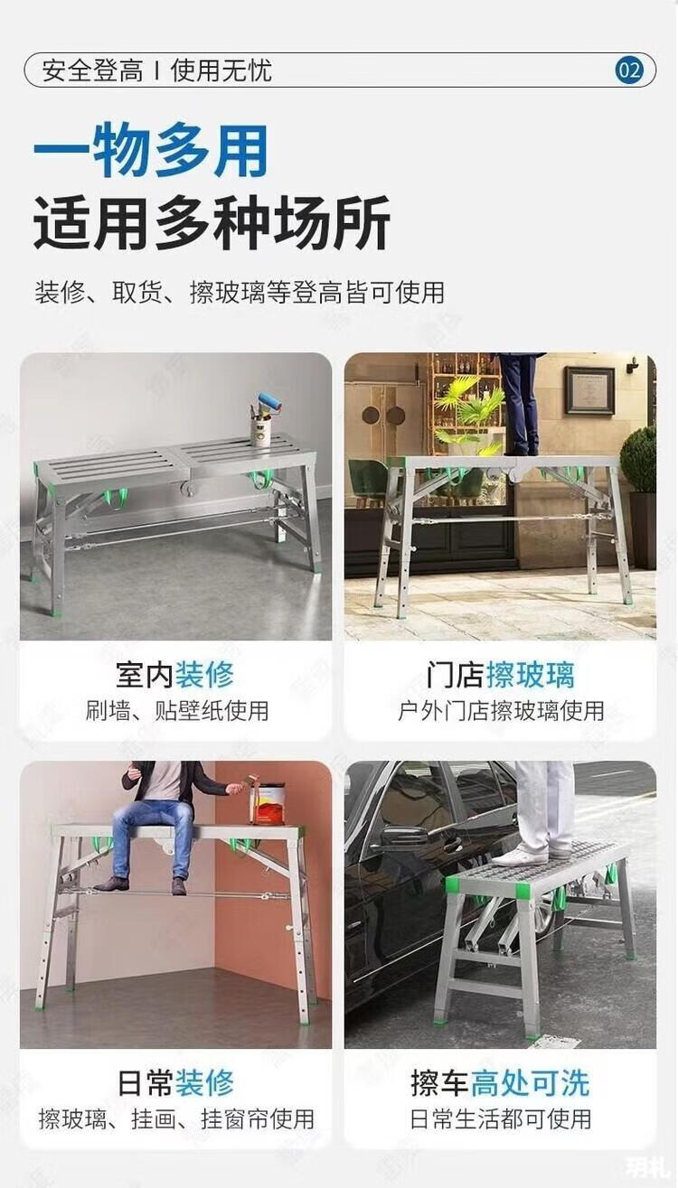 Horse stool aluminum alloy thickened scaffolding folding decoration lift indoor putty stool multifunctional portable engineering ladder thickened single support 40*160+ accessories