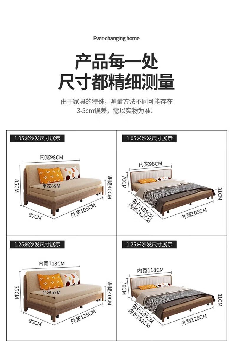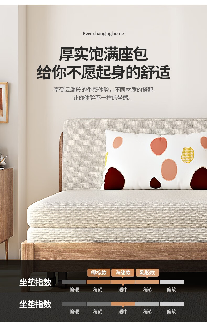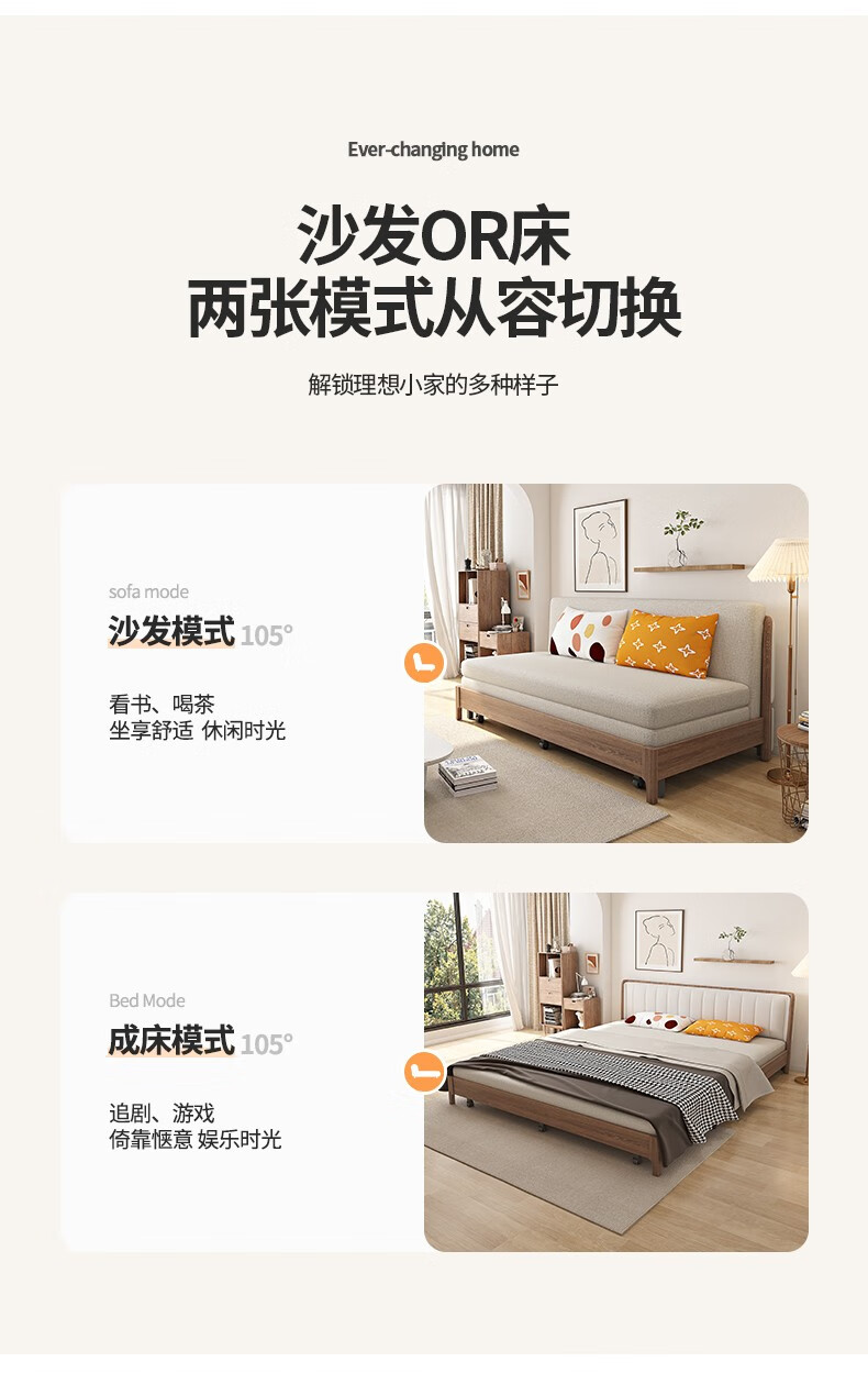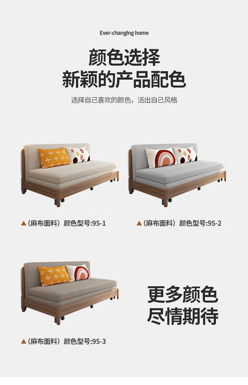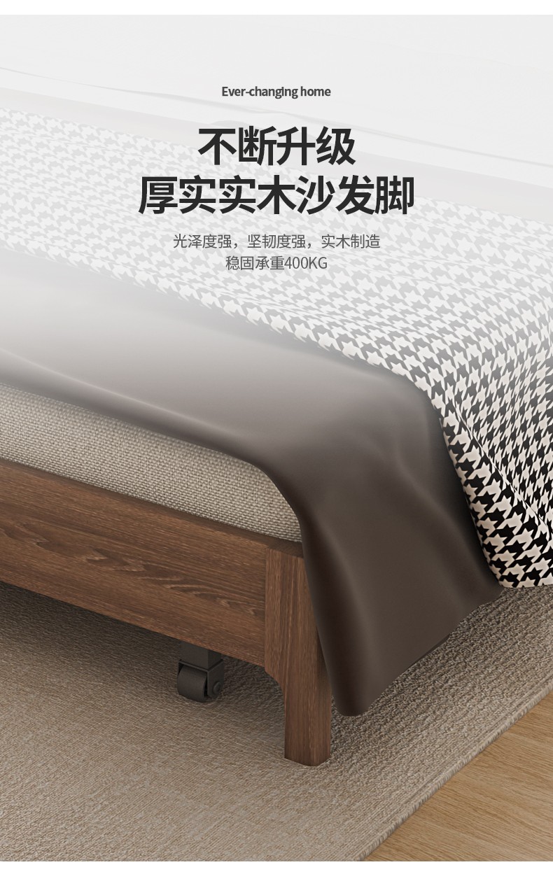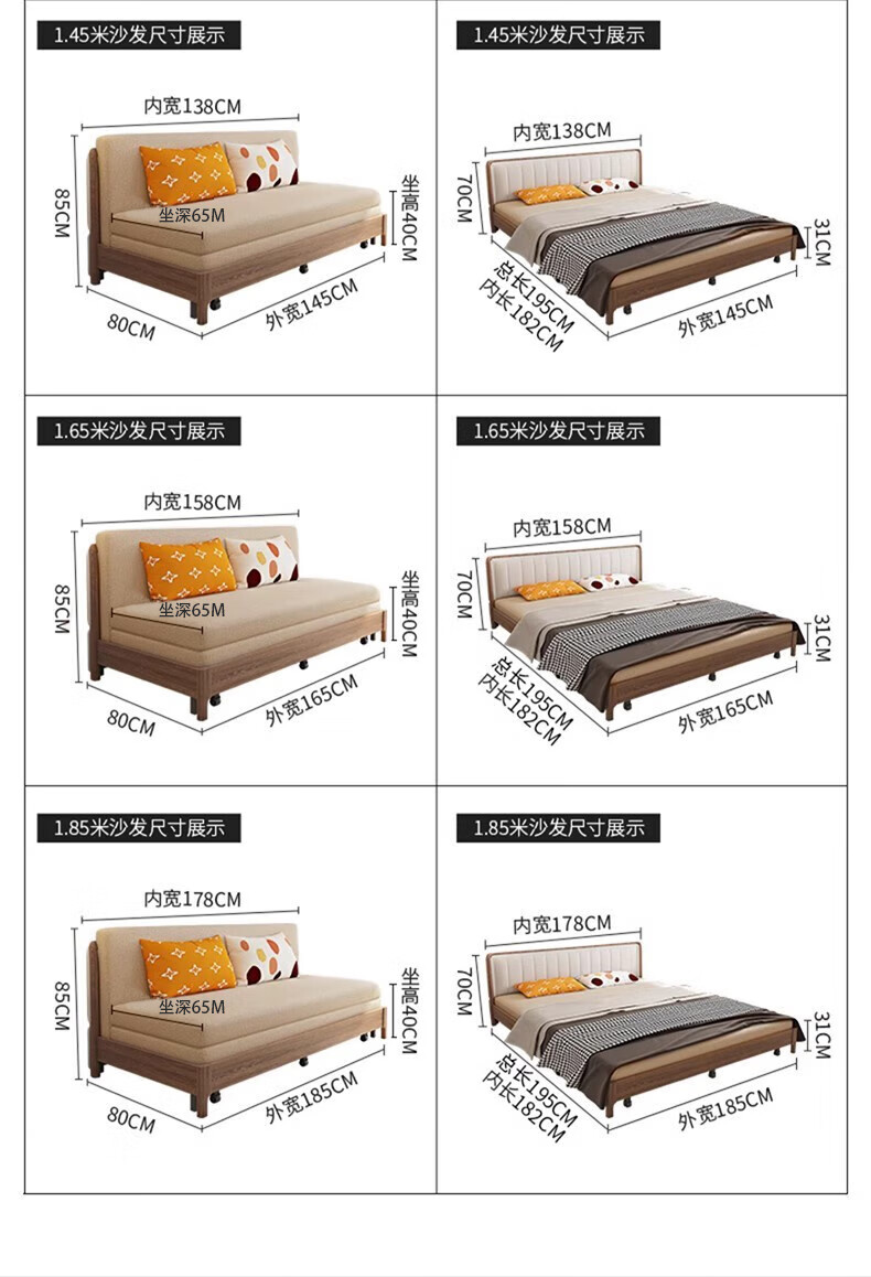 Yisheng solid wood sofa bed dual-purpose foldable multi-functional small apartment living room modern simple all-in-one dual-purpose 2025 new style 1.85m environmentally friendly coconut palm type storage